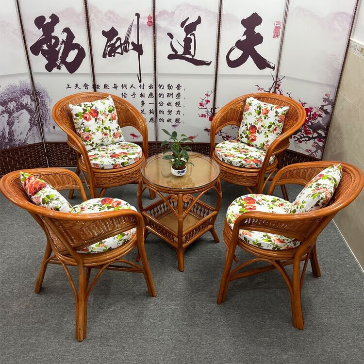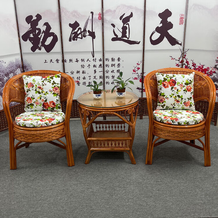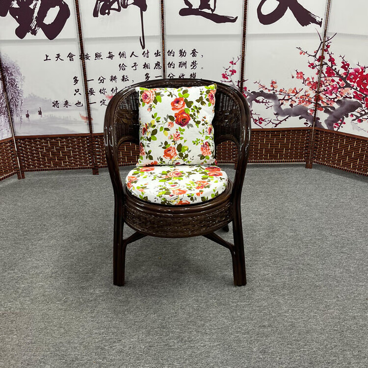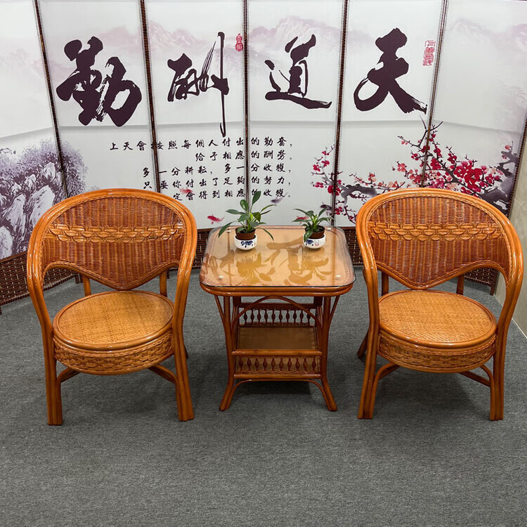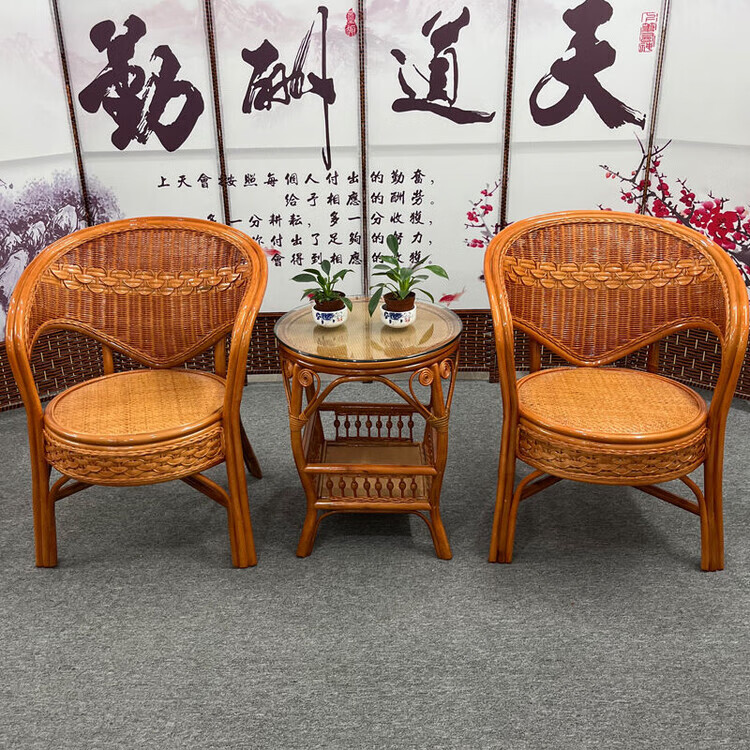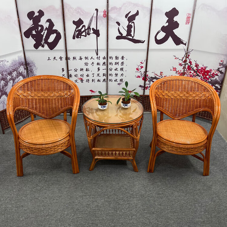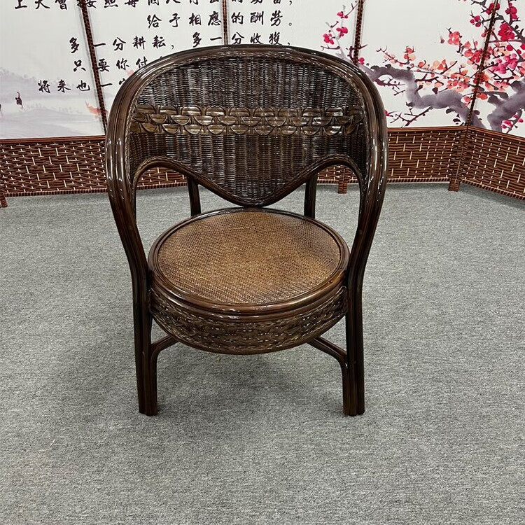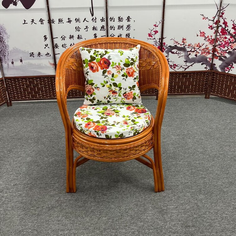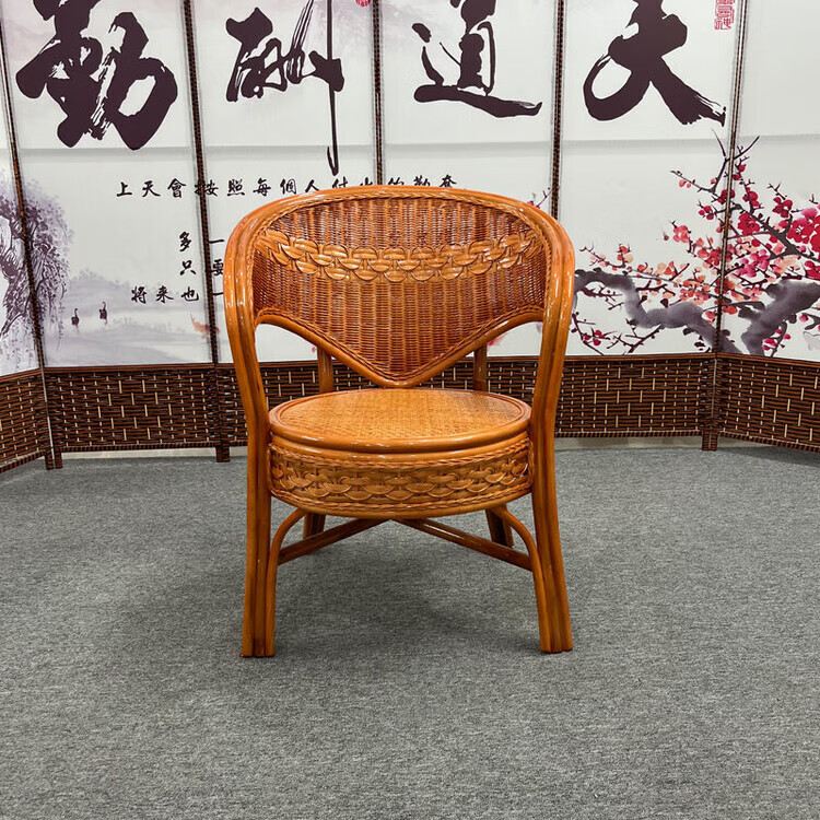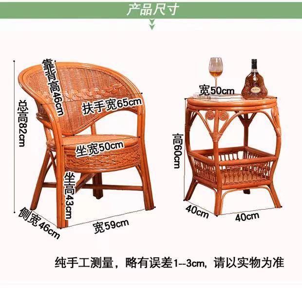 欣慕雅阳台真藤编桌椅庭院老式休闲藤椅豪华椅子客厅高档藤椅茶几三件套 蜜糖色单椅