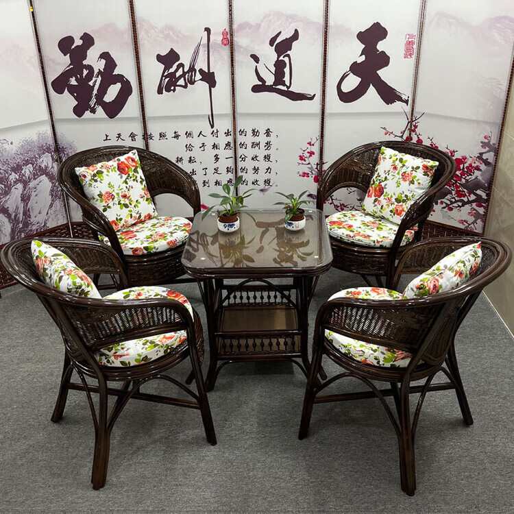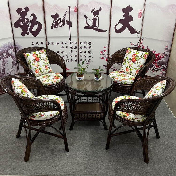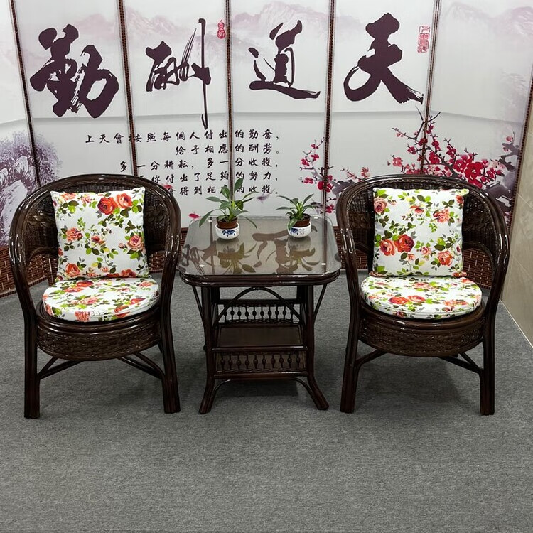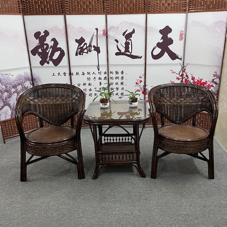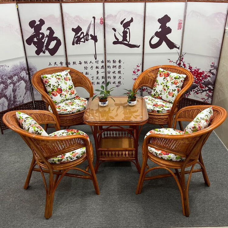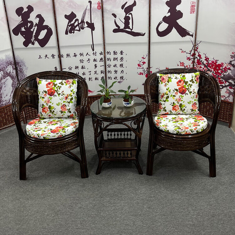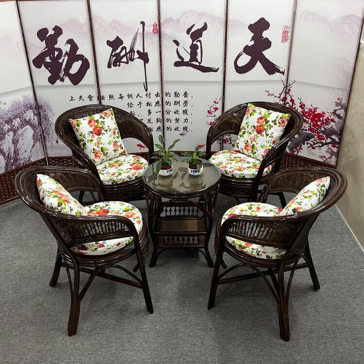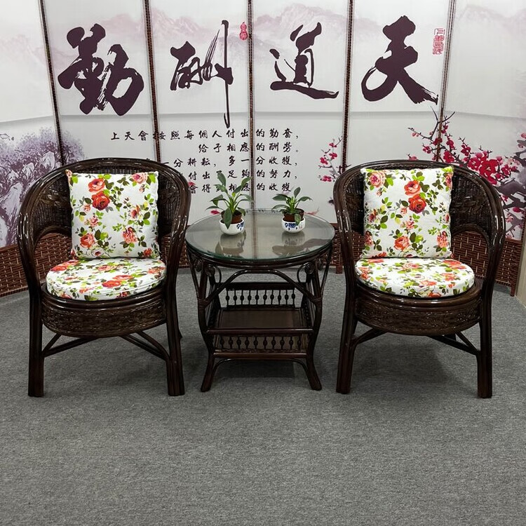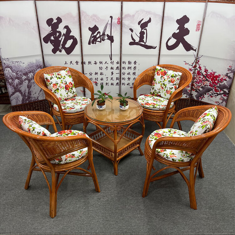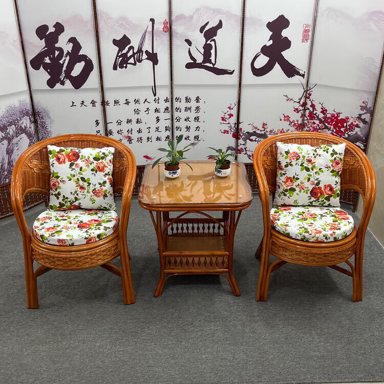 欣慕雅阳台真藤编桌椅庭院老式休闲藤椅豪华椅子客厅高档藤椅茶几三件套 蜜糖色单椅