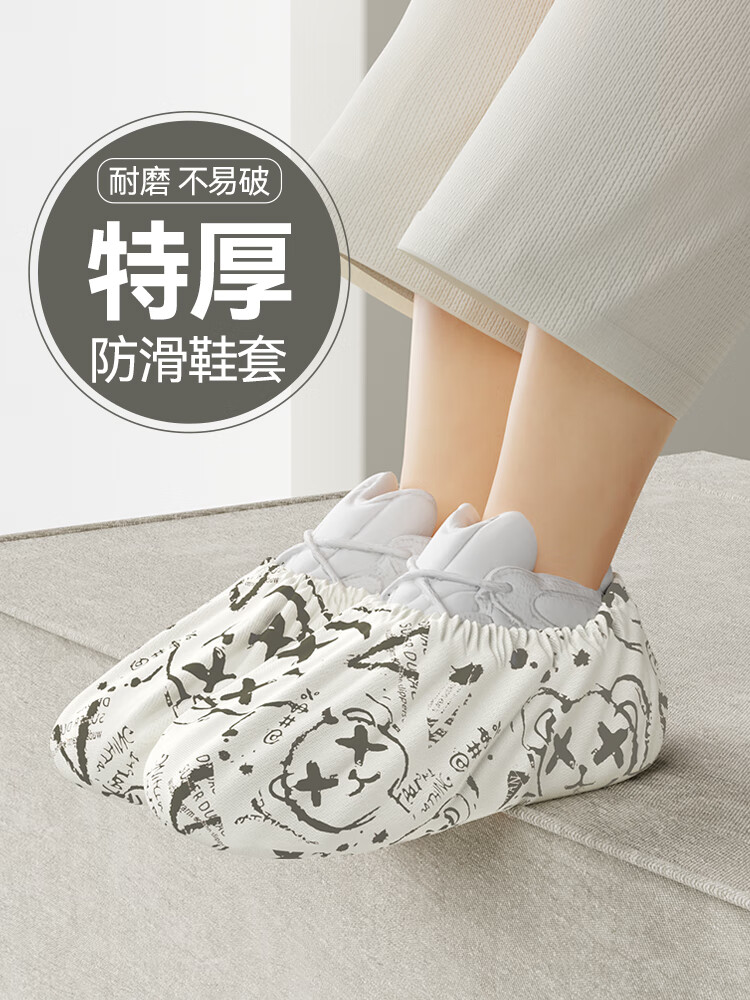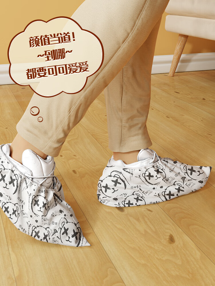 TYZAYR日本鞋套家用加厚耐磨不织布室内一次性机房专用学生客人套脚反覆 通用款【暴力熊 100只】 均码