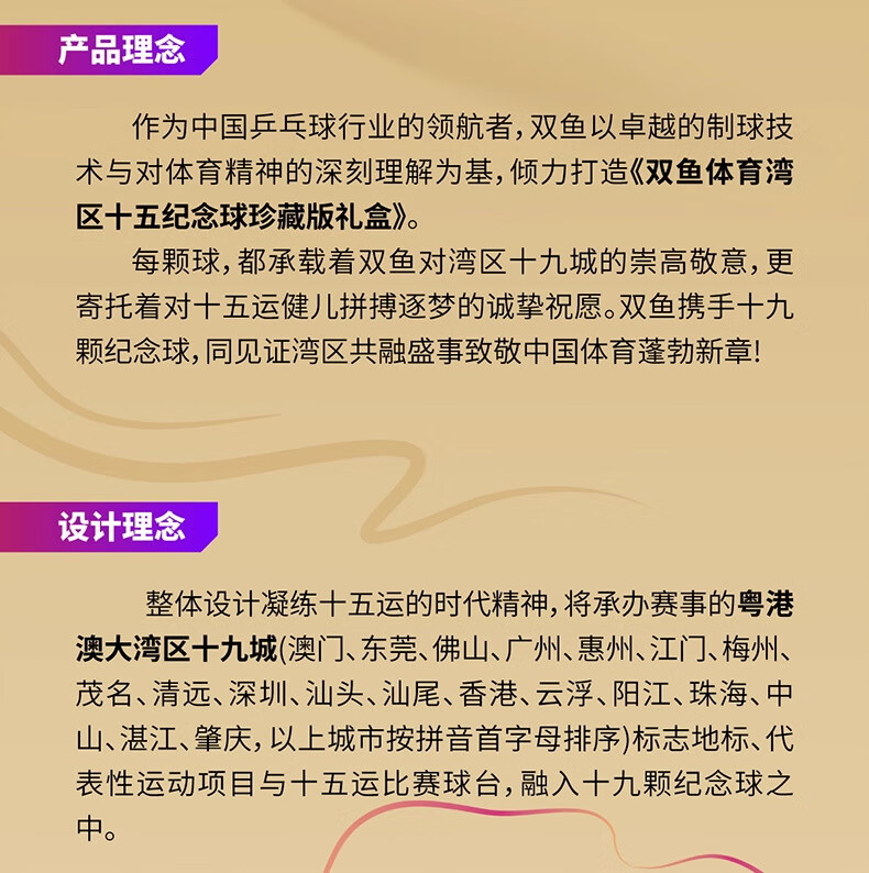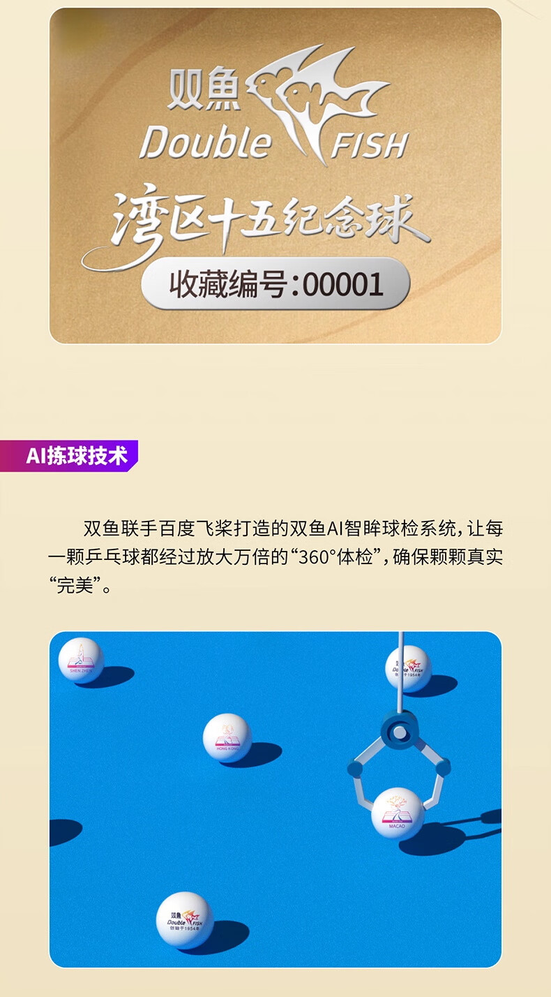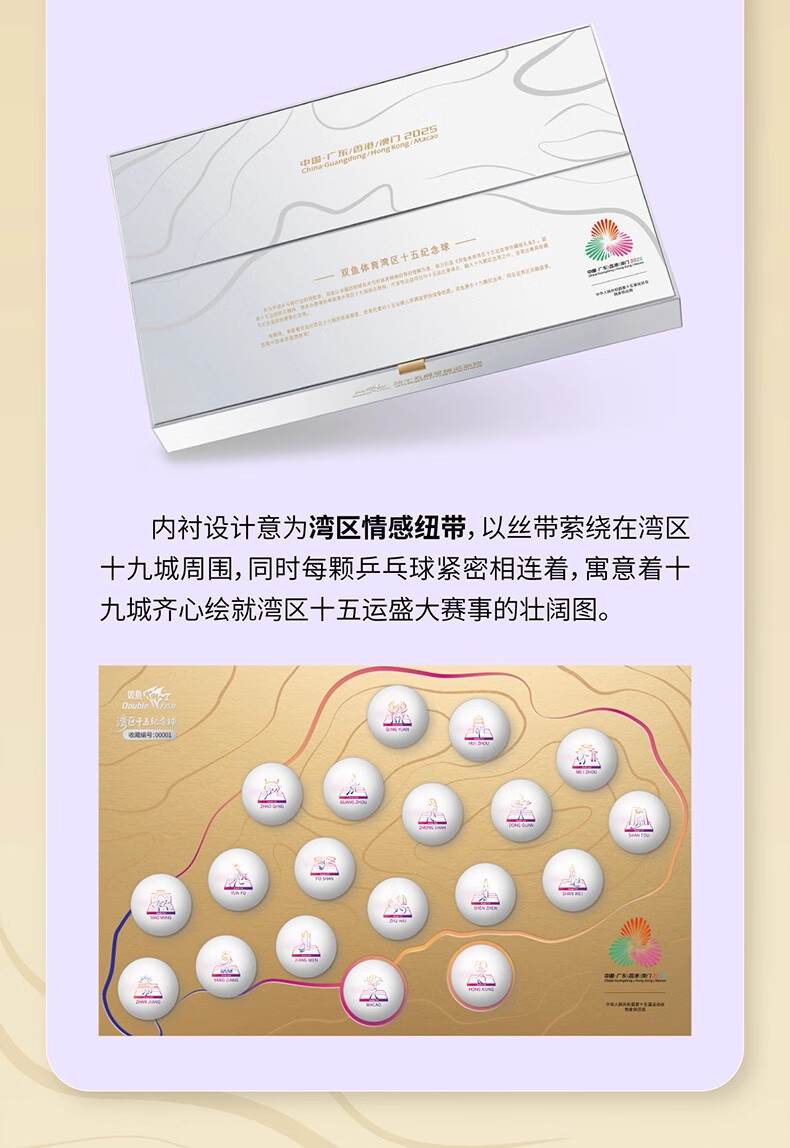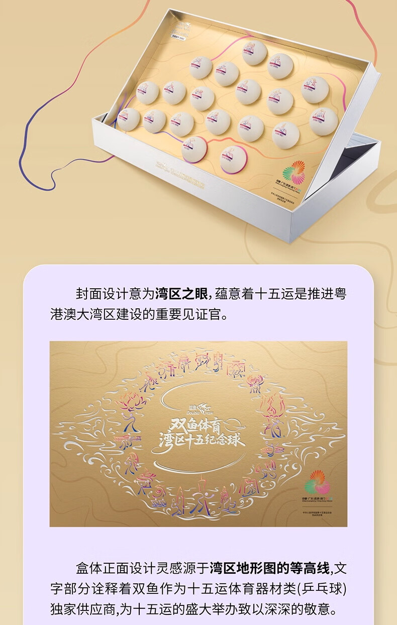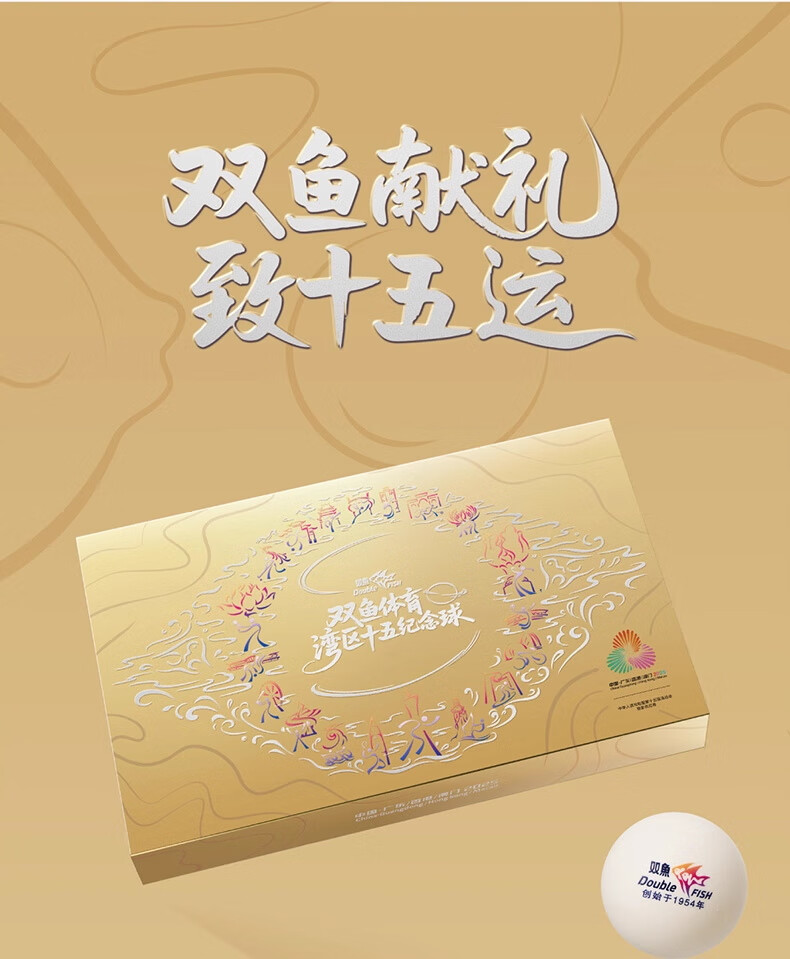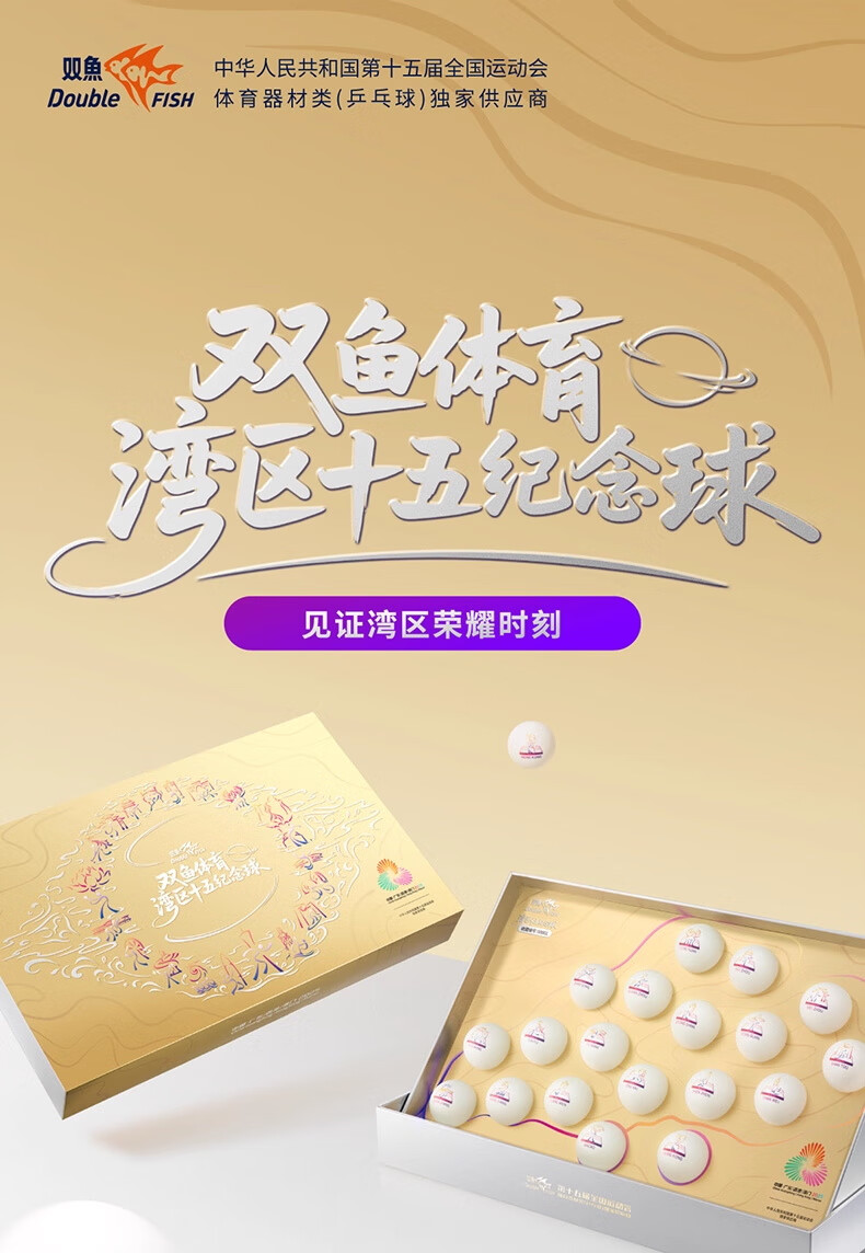 双鱼(DOUBLE FISH)乒乓球十五届全运会湾区臻藏限量版纪念乒乓球收藏纪念送礼套装 19只 全运乒乓球