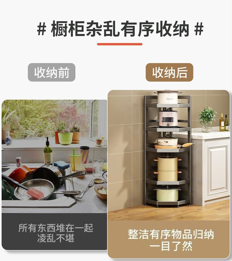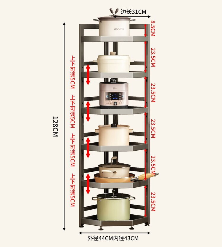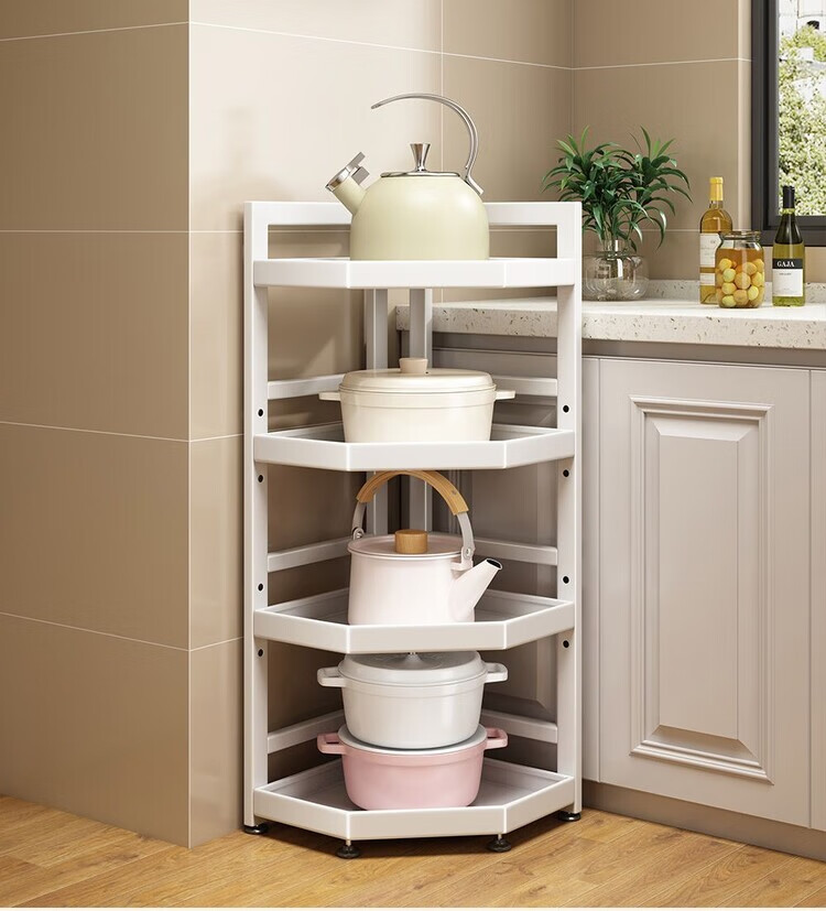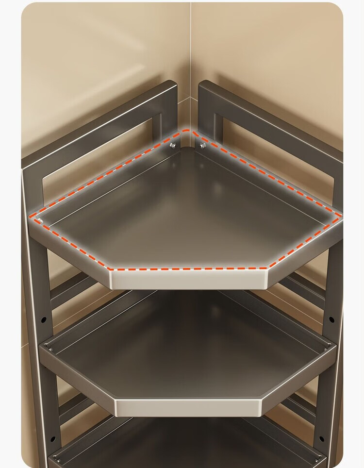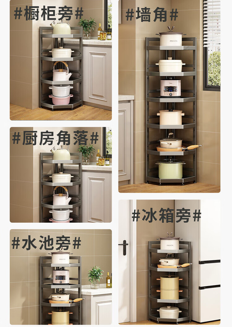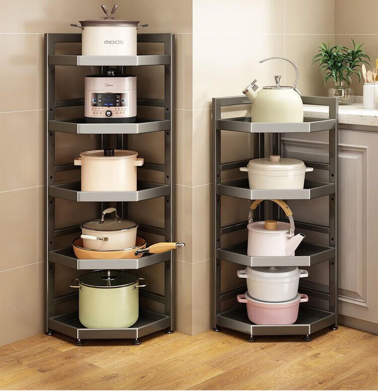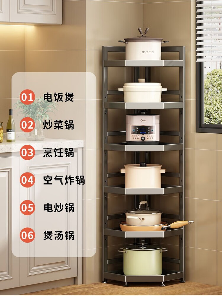 简漾新款厨房转角架多层落地三脚锅架墙角放锅小家电收纳储物架多功能 枪灰色六层高128长31