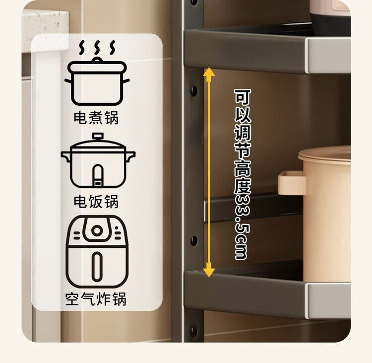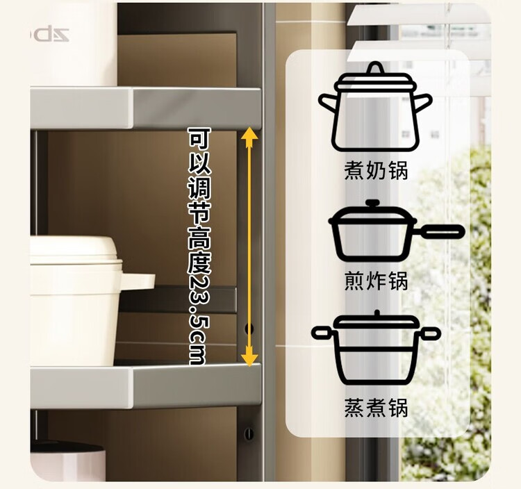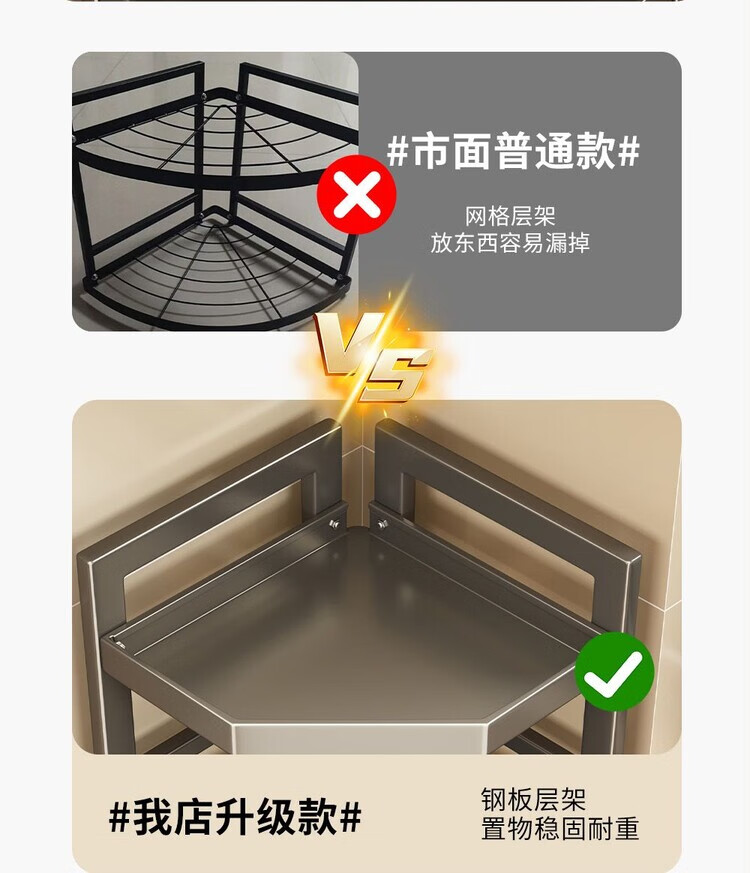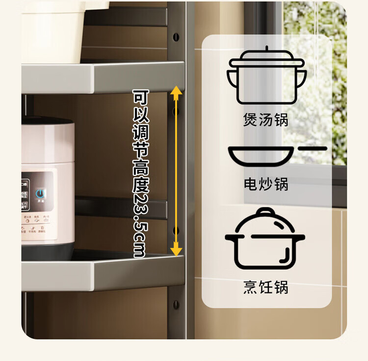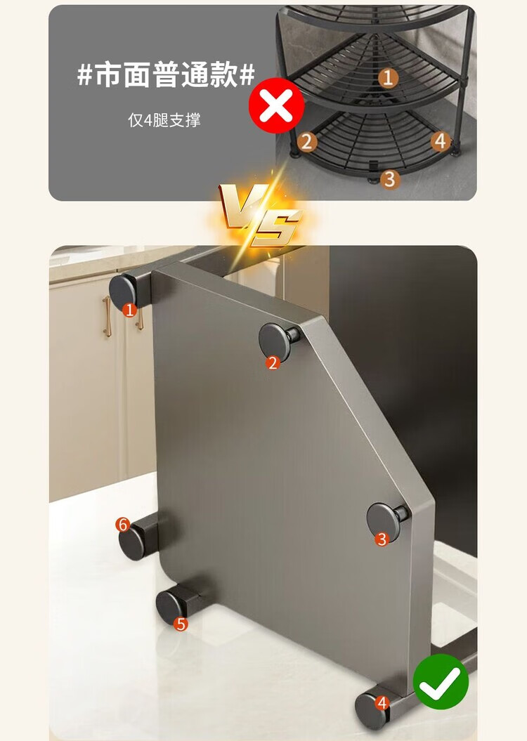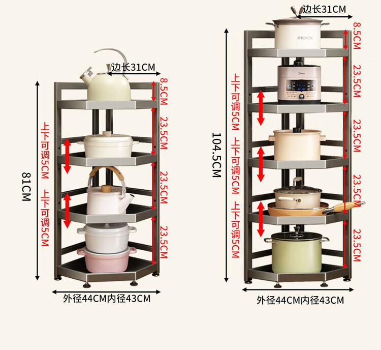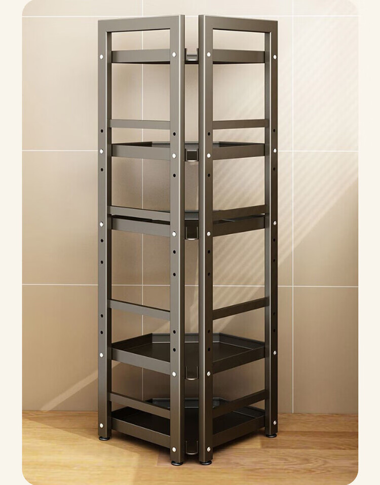 简漾新款厨房转角架多层落地三脚锅架墙角放锅小家电收纳储物架多功能 枪灰色六层高128长31
