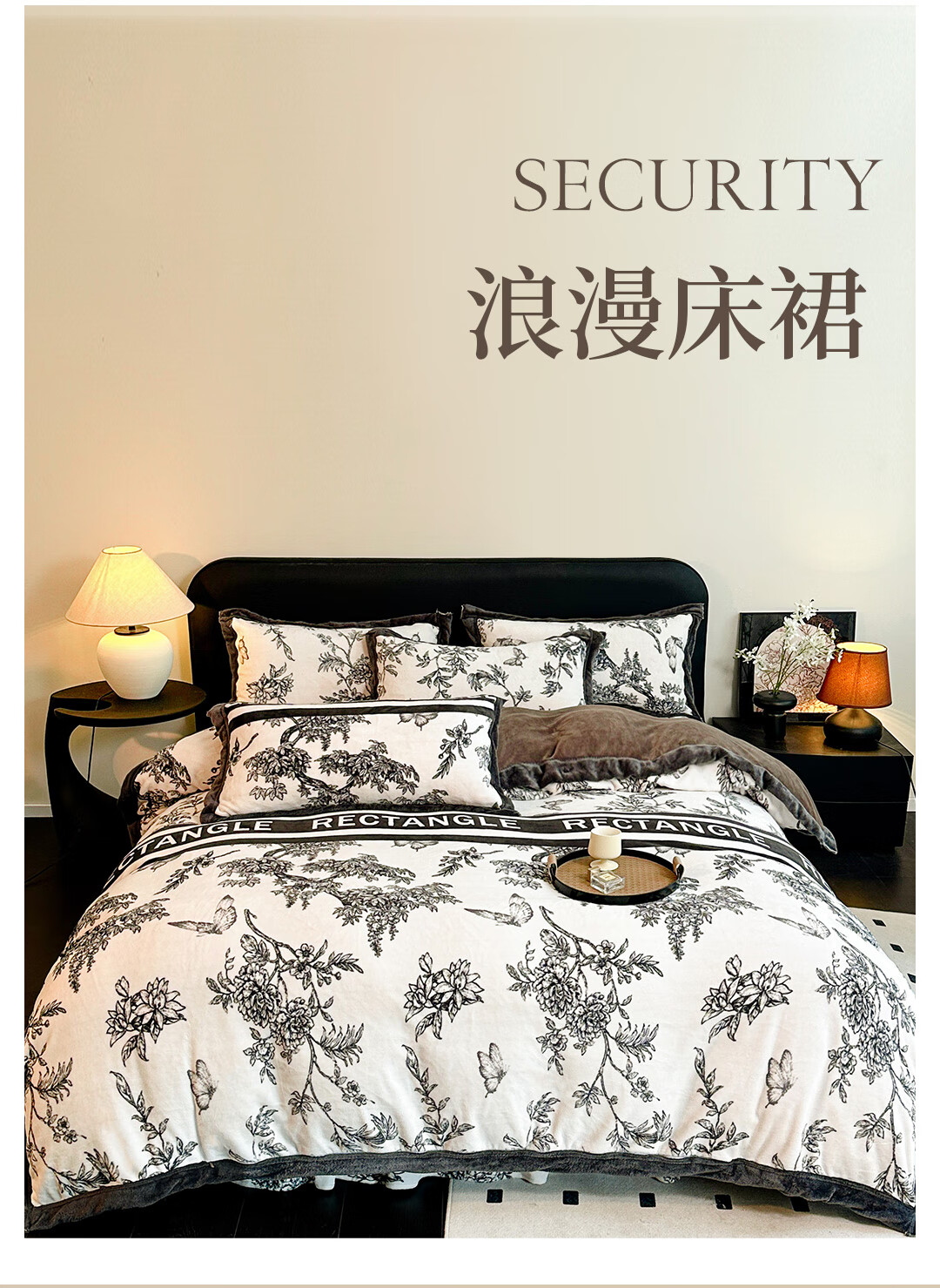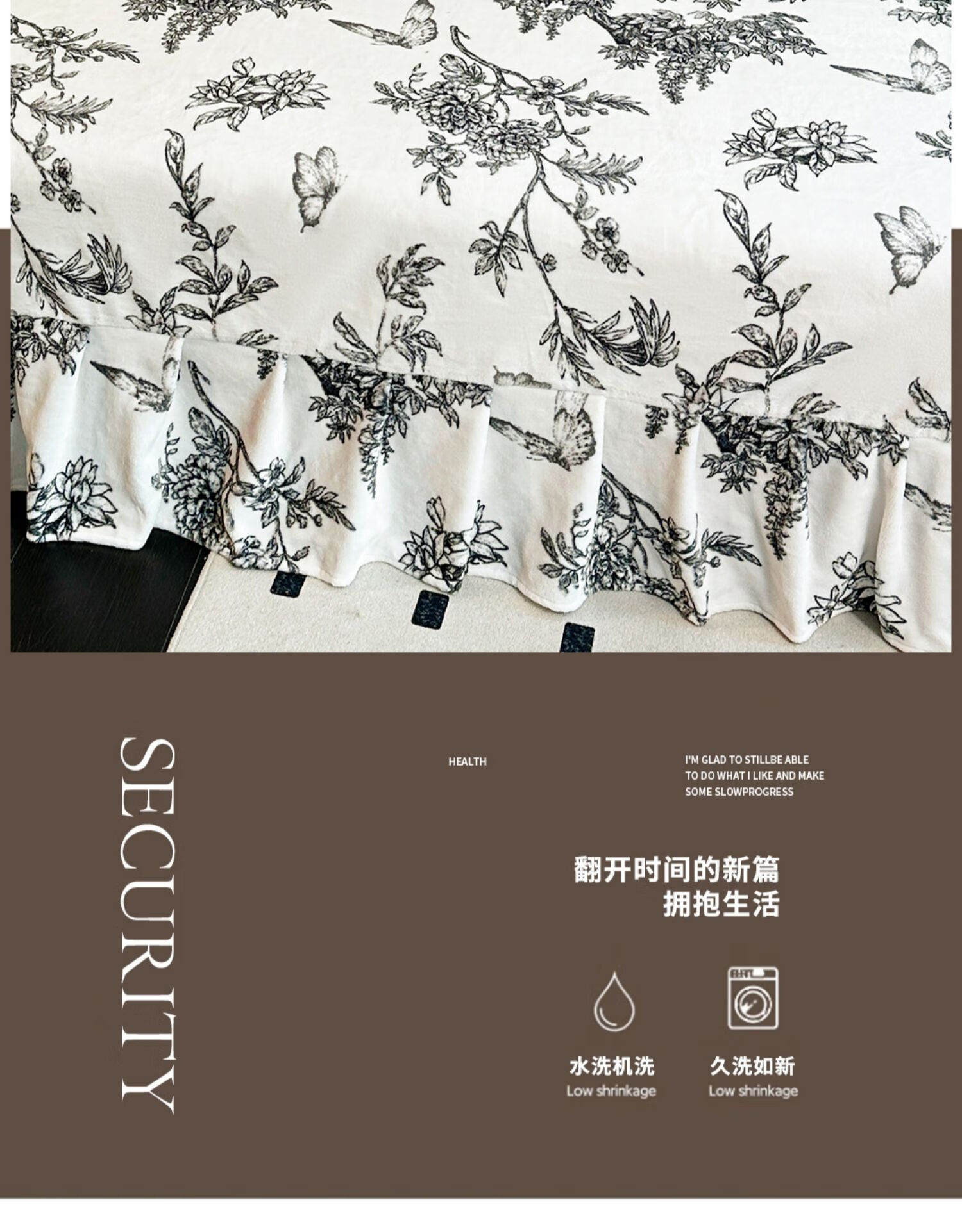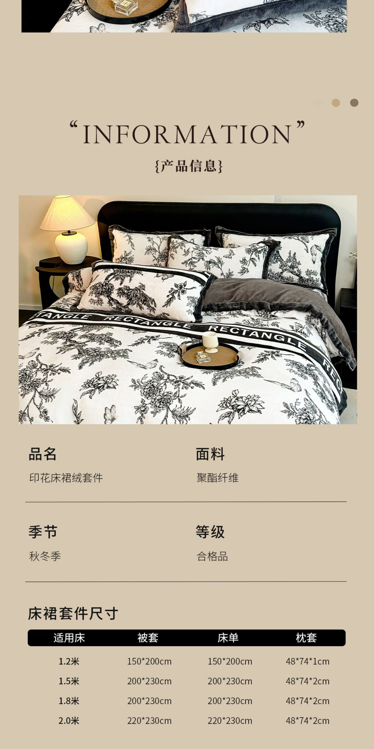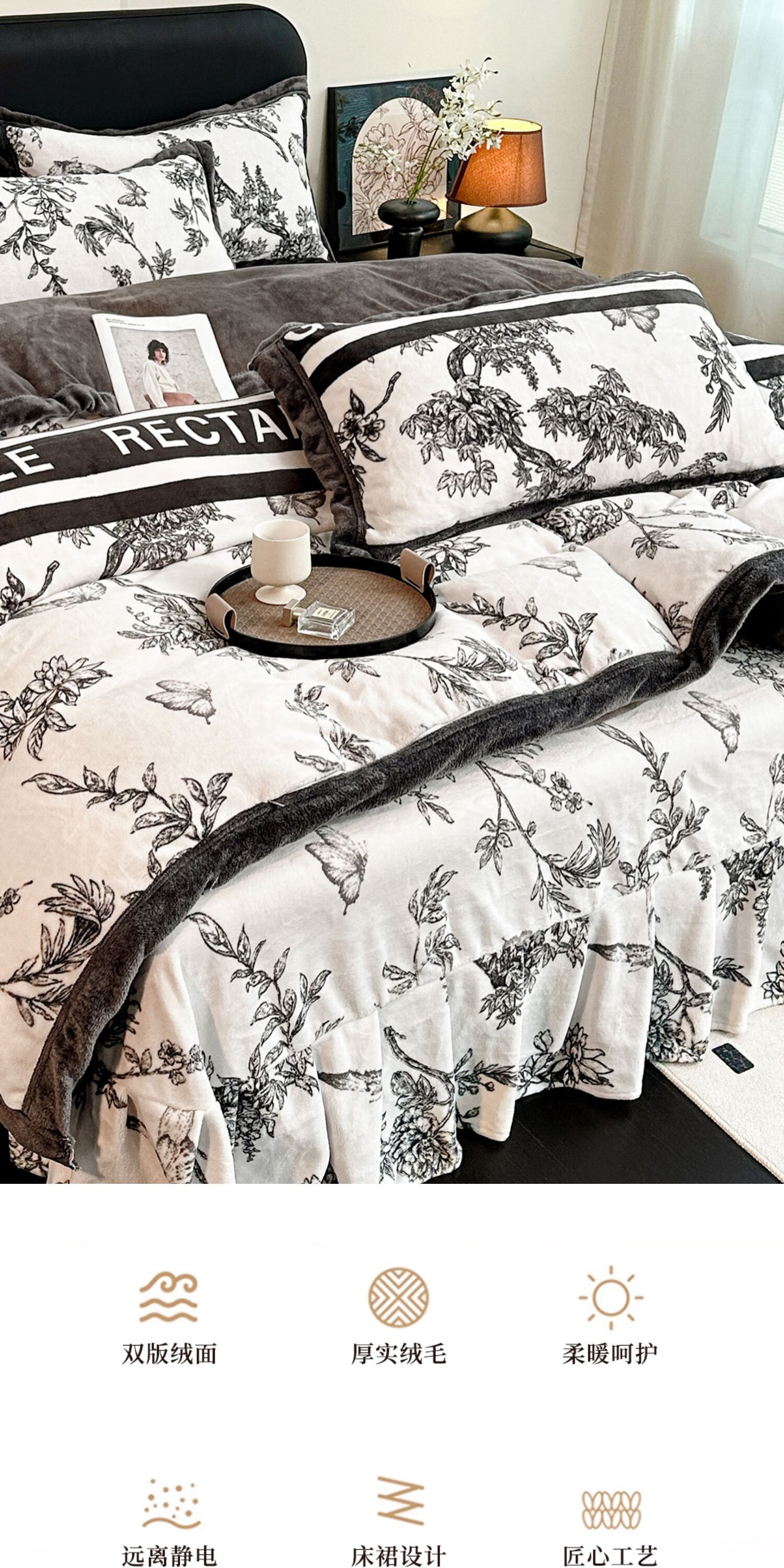 高睿牛奶绒四件套冬季加厚珊瑚绒2025新款双面法兰绒床上用品被套床裙 咖底圆花 床裙款 150x200cm床裙+枕套一只
