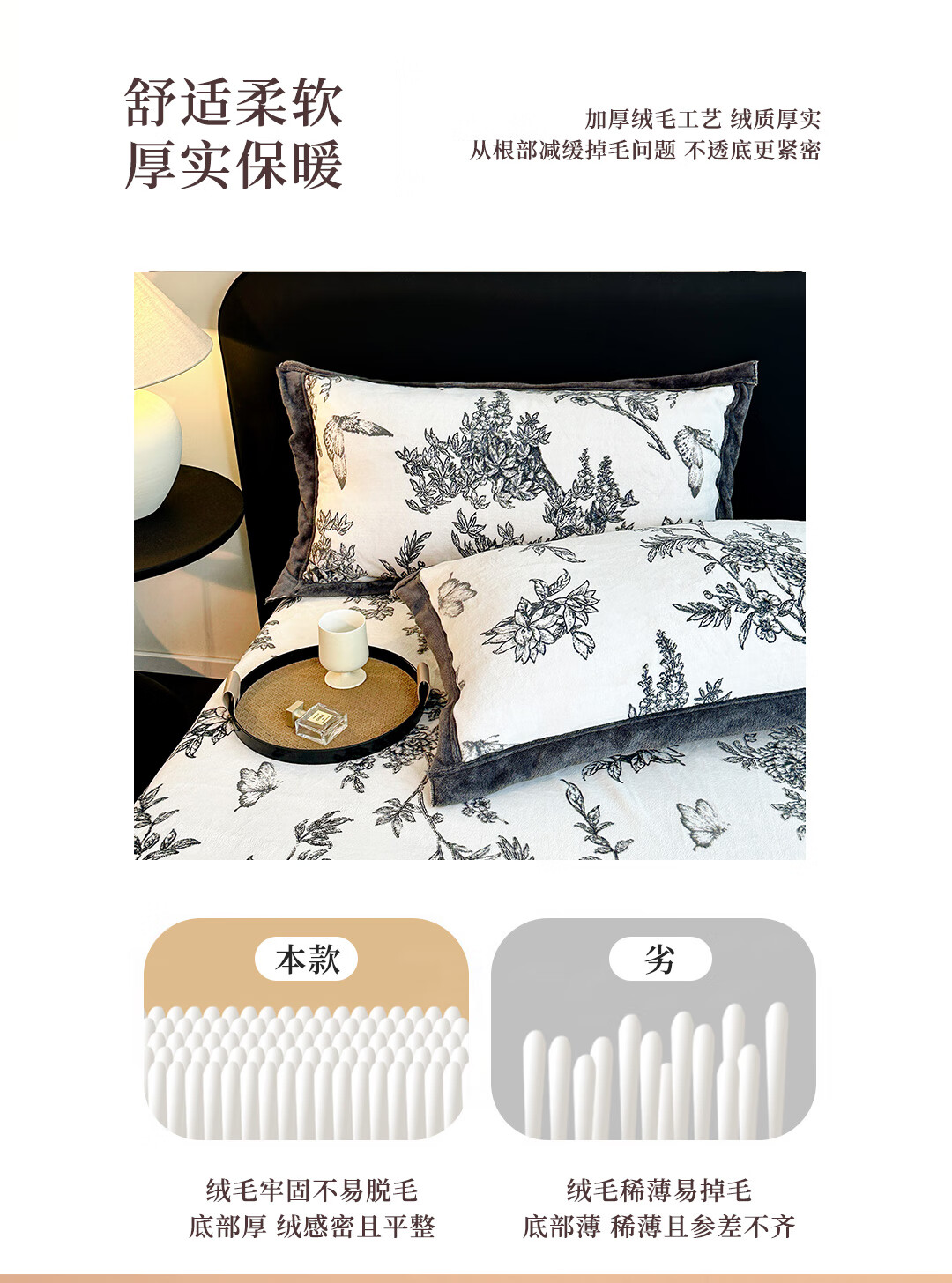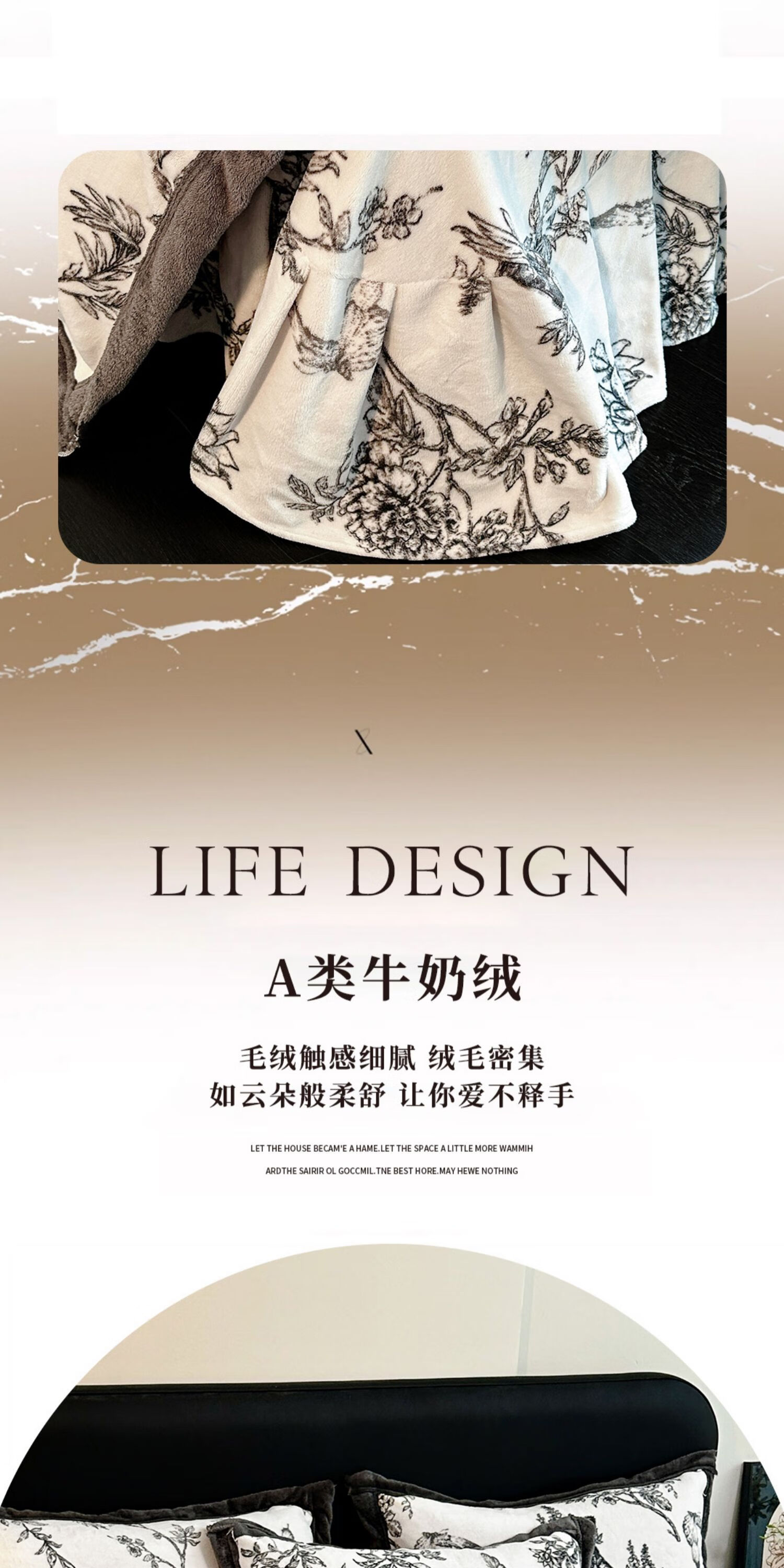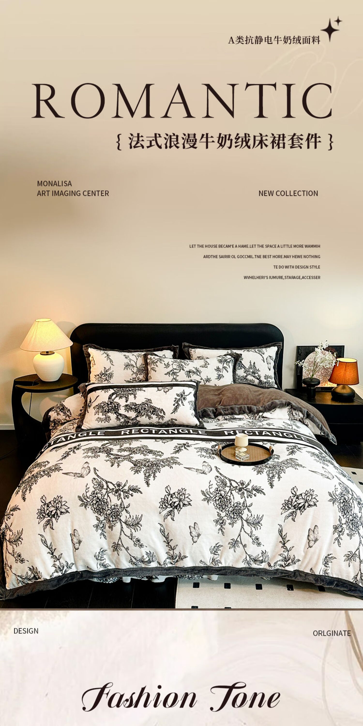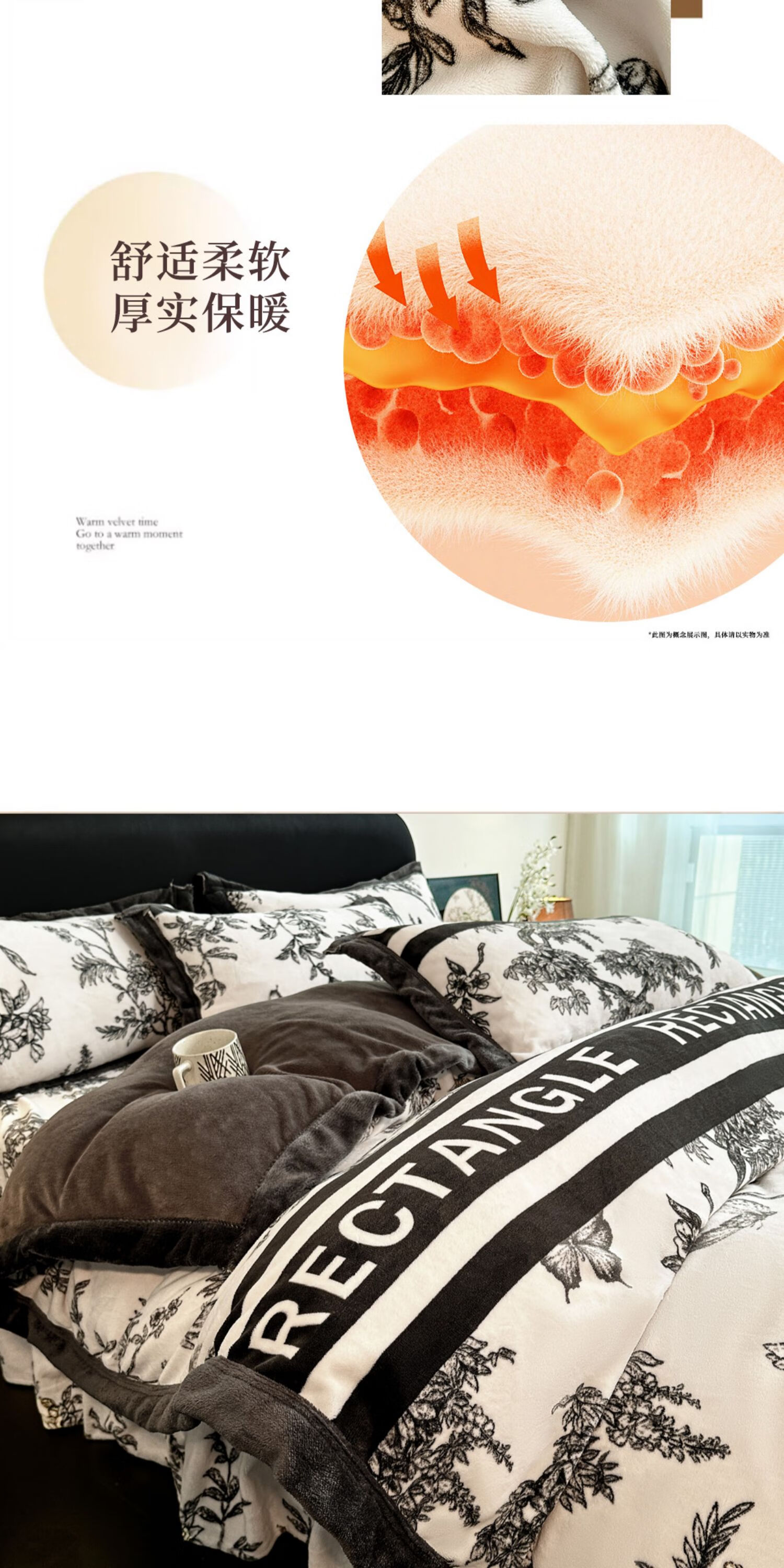 高睿牛奶绒四件套冬季加厚珊瑚绒2025新款双面法兰绒床上用品被套床裙 咖底圆花 床裙款 150x200cm床裙+枕套一只