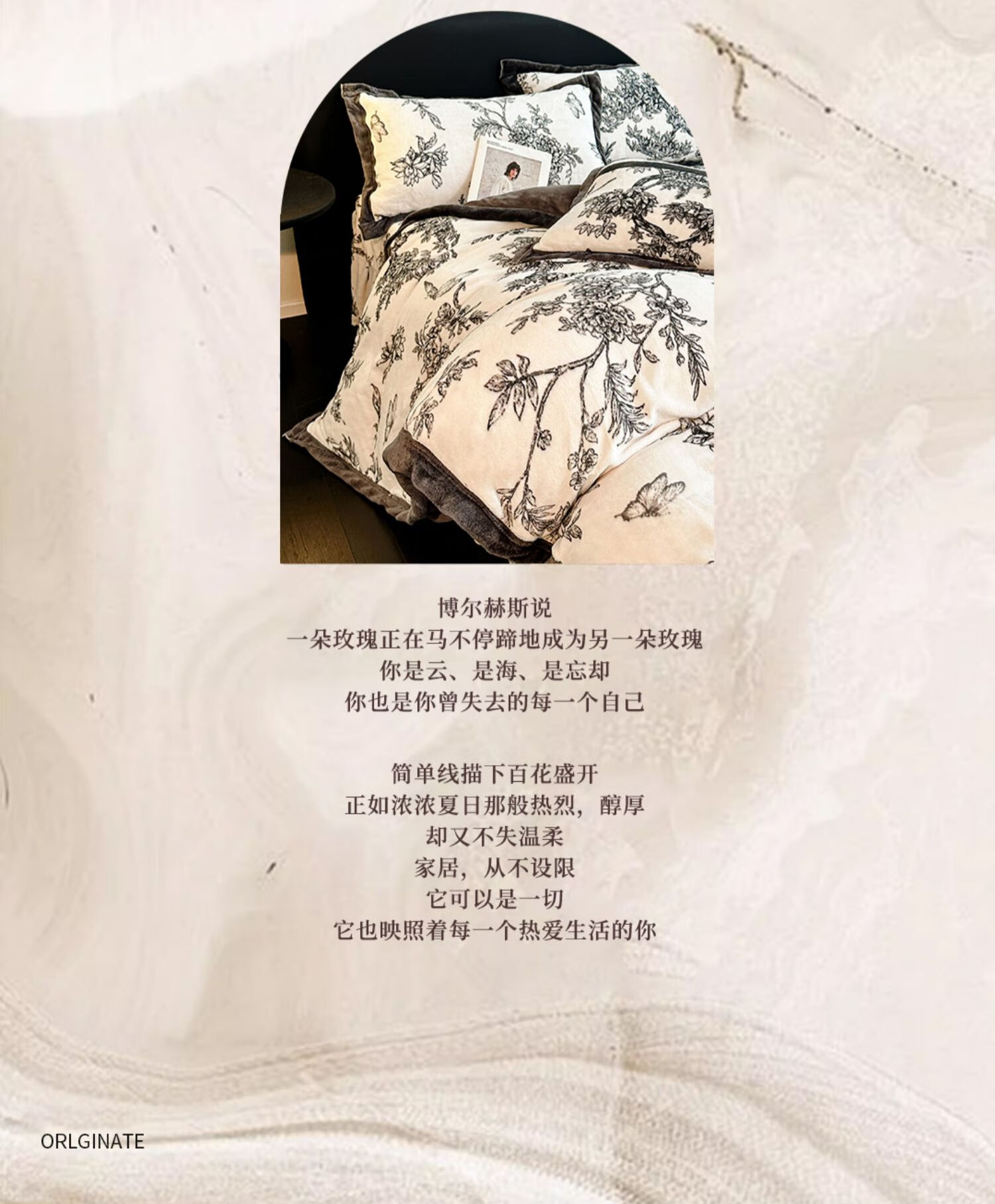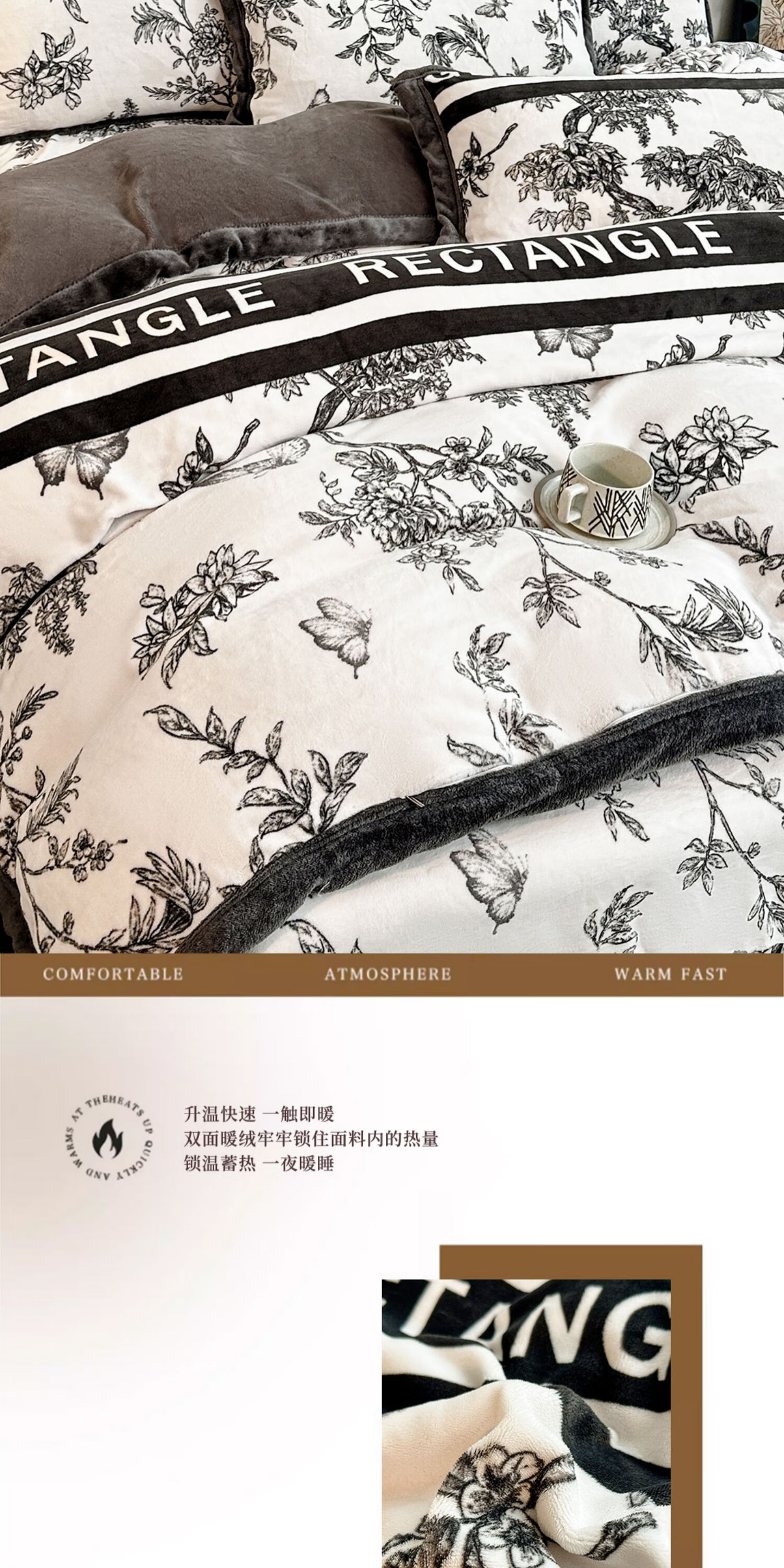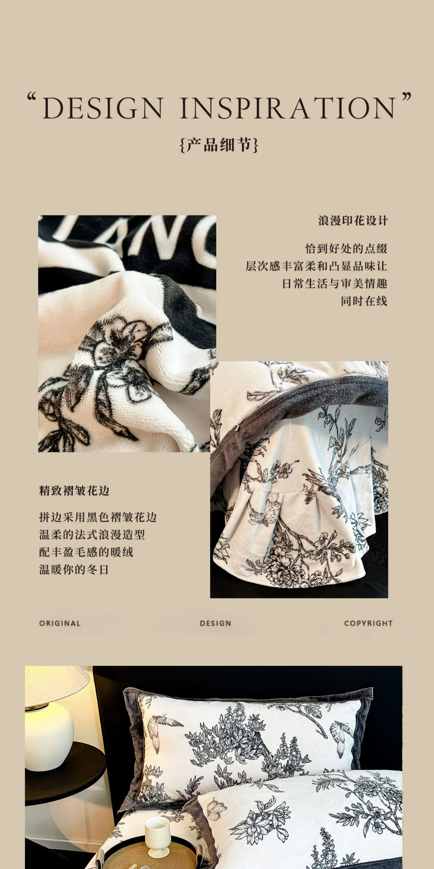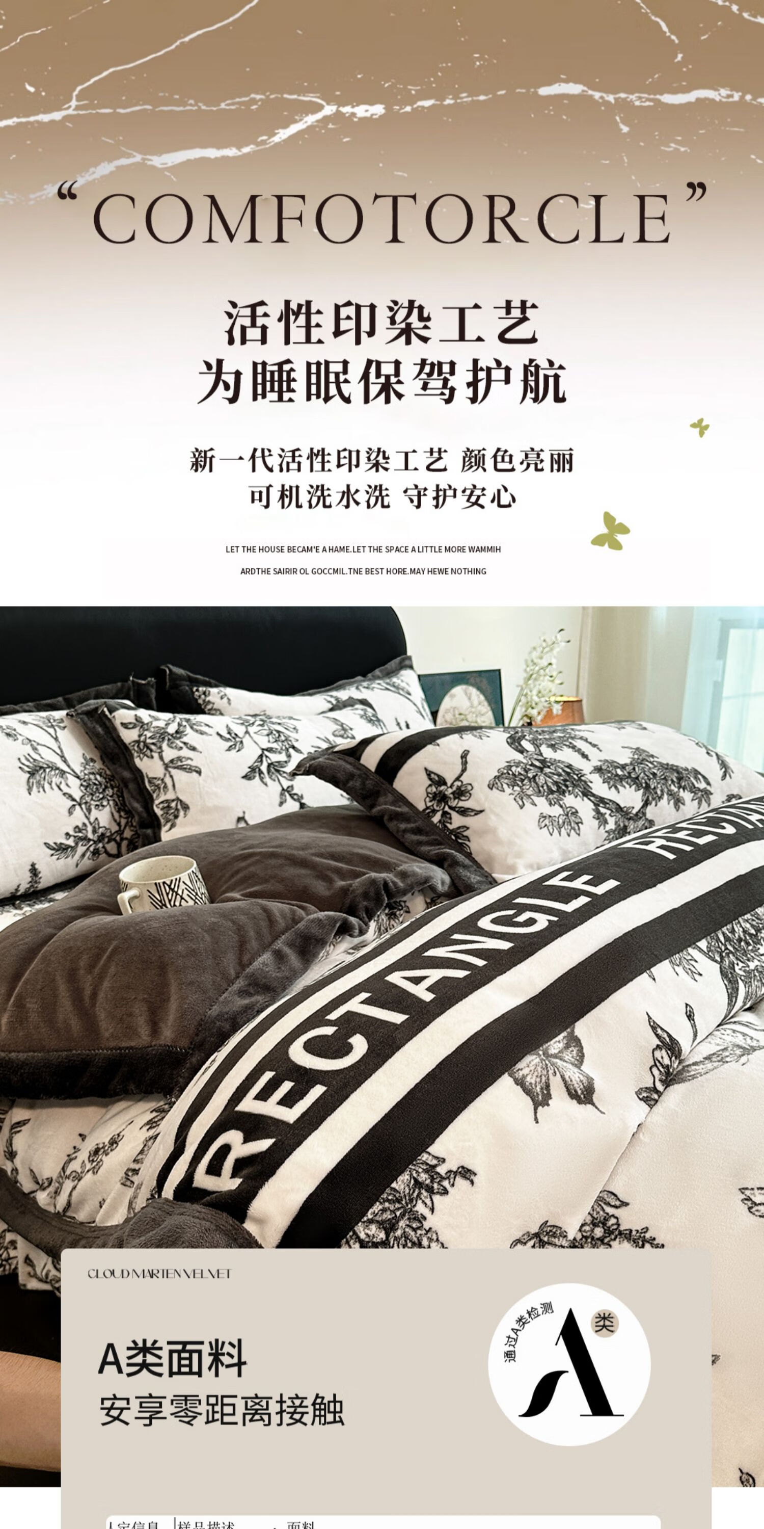 高睿牛奶绒四件套冬季加厚珊瑚绒2025新款双面法兰绒床上用品被套床裙 咖底圆花 床裙款 150x200cm床裙+枕套一只