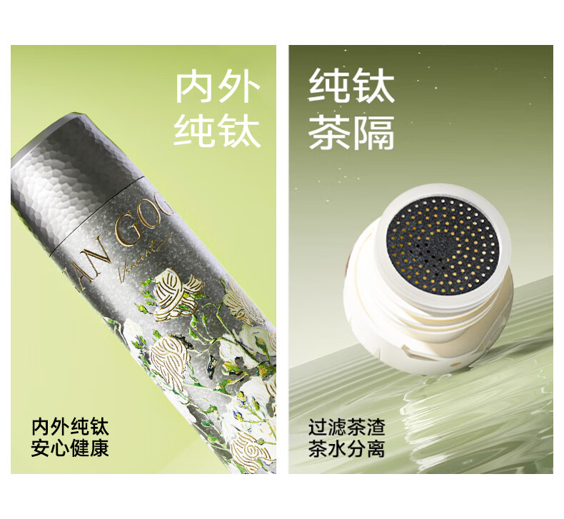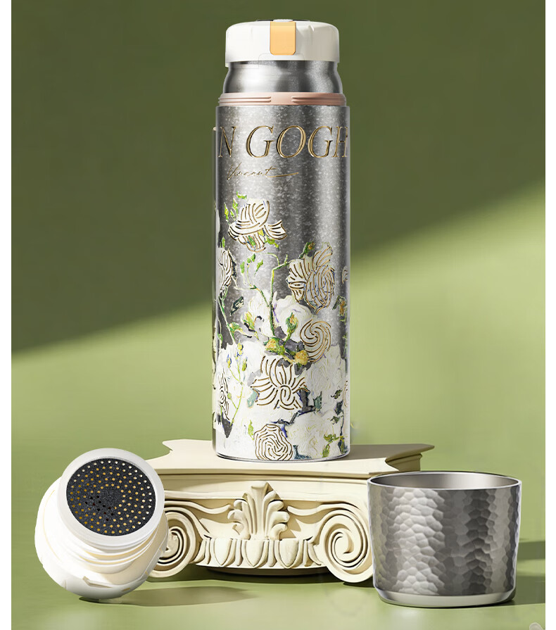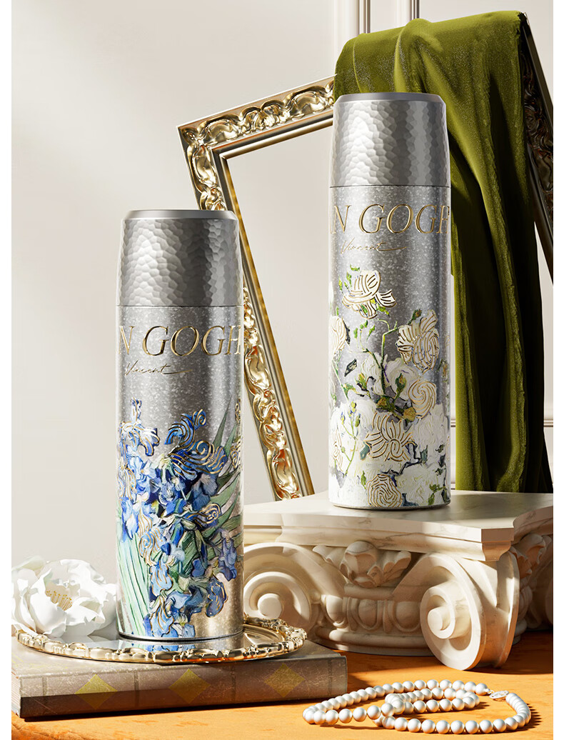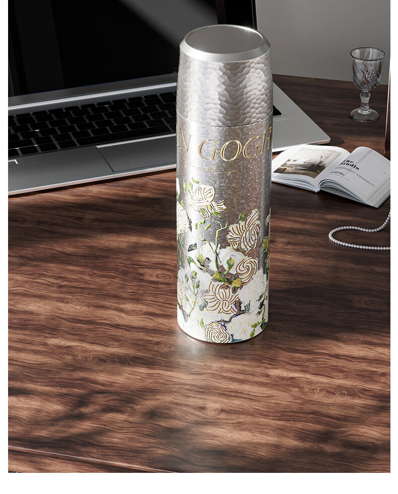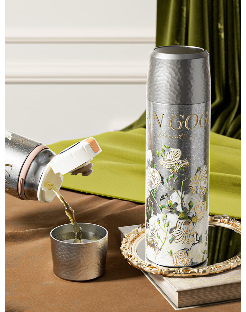 大卡保温杯内外纯钛抗菌水杯梵高联名便捷车载旅行办公大容量焖茶杯 鸢尾花【内外纯钛+礼盒】600ml