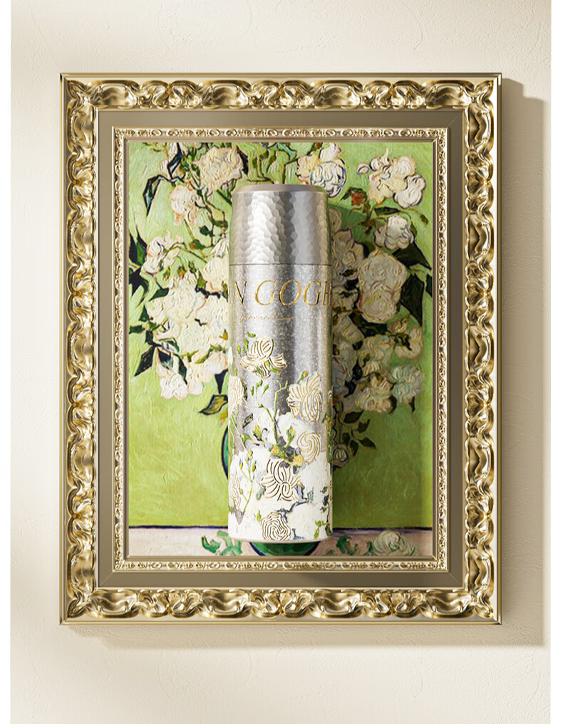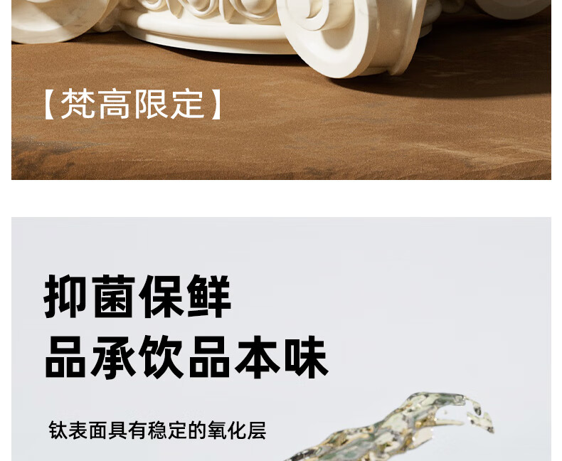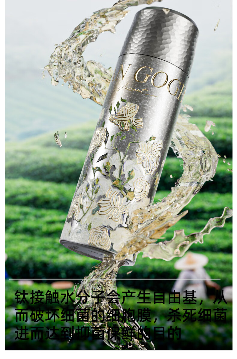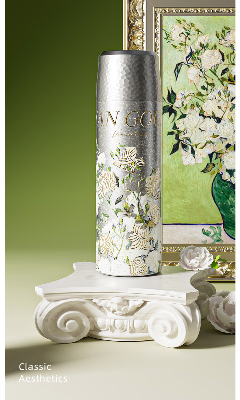 大卡保温杯内外纯钛抗菌水杯梵高联名便捷车载旅行办公大容量焖茶杯 鸢尾花【内外纯钛+礼盒】600ml