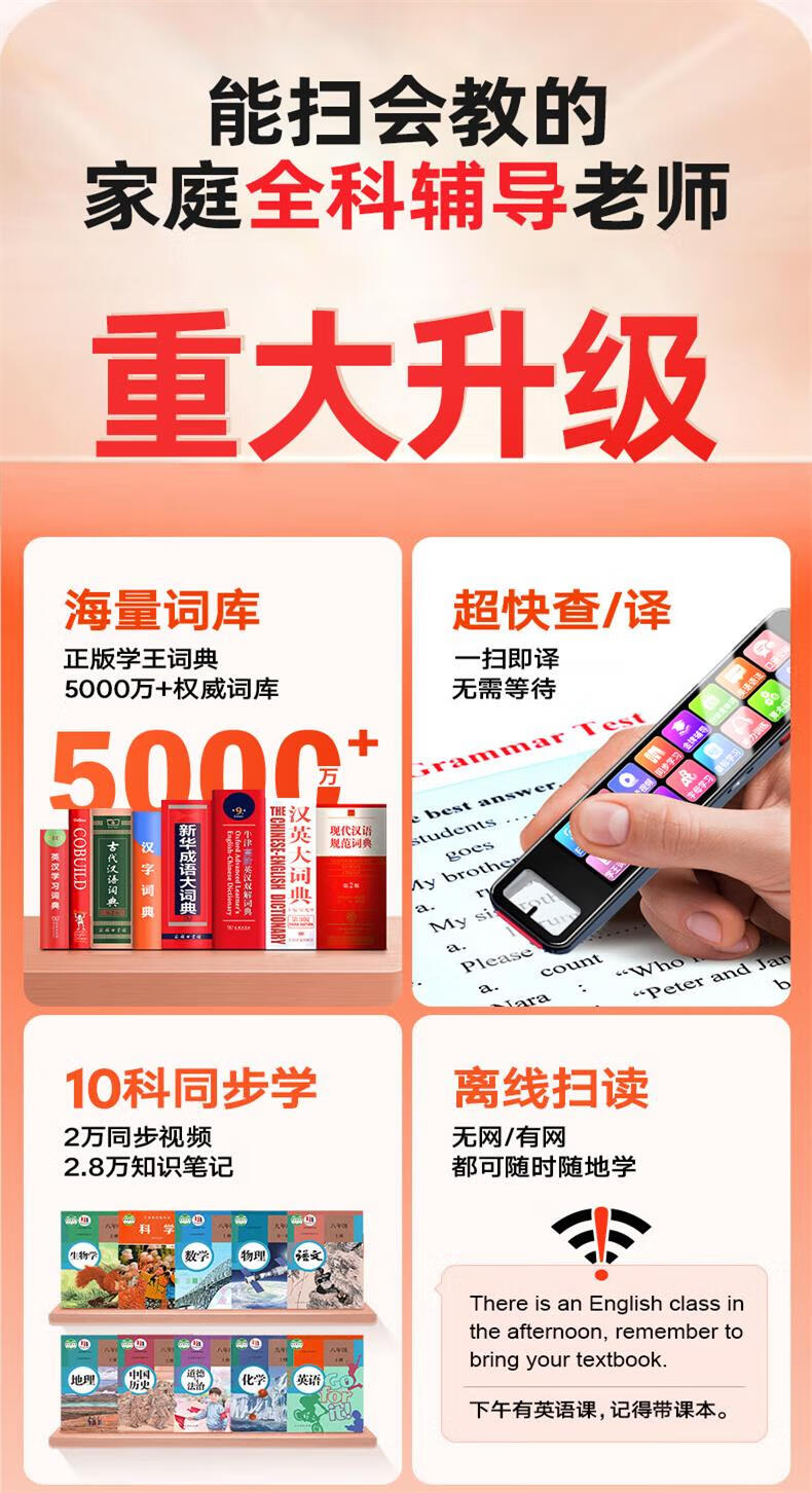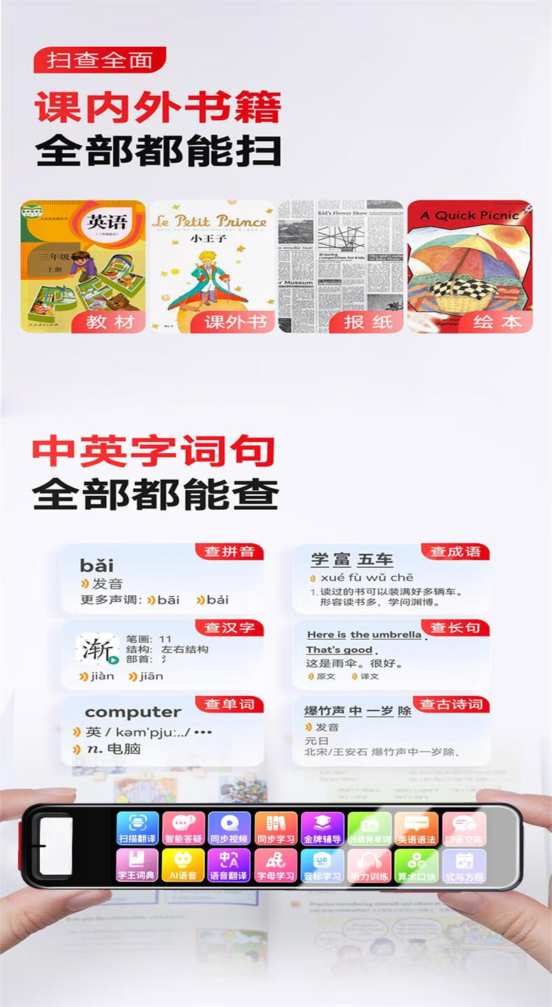 读书才子老师推荐无需联网点读笔离线扫描翻译笔万能全科学习词典笔同步教材词典笔拍照搜题答疑词 入门-蓝【英汉互译-不限书籍-需联网】 512MB