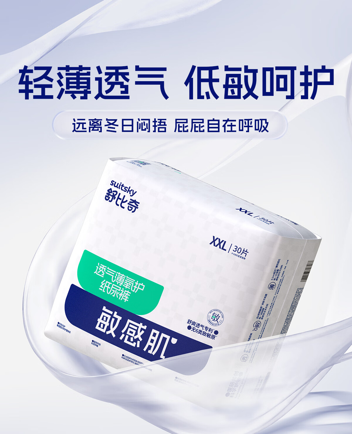 舒比奇透气薄氧护敏感肌纸尿裤XXL码30片(15kg以上)尿不湿加加大码超薄