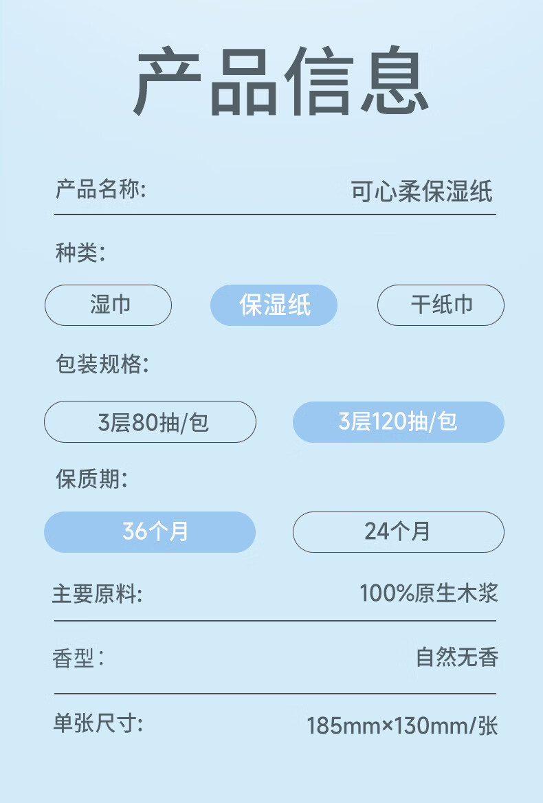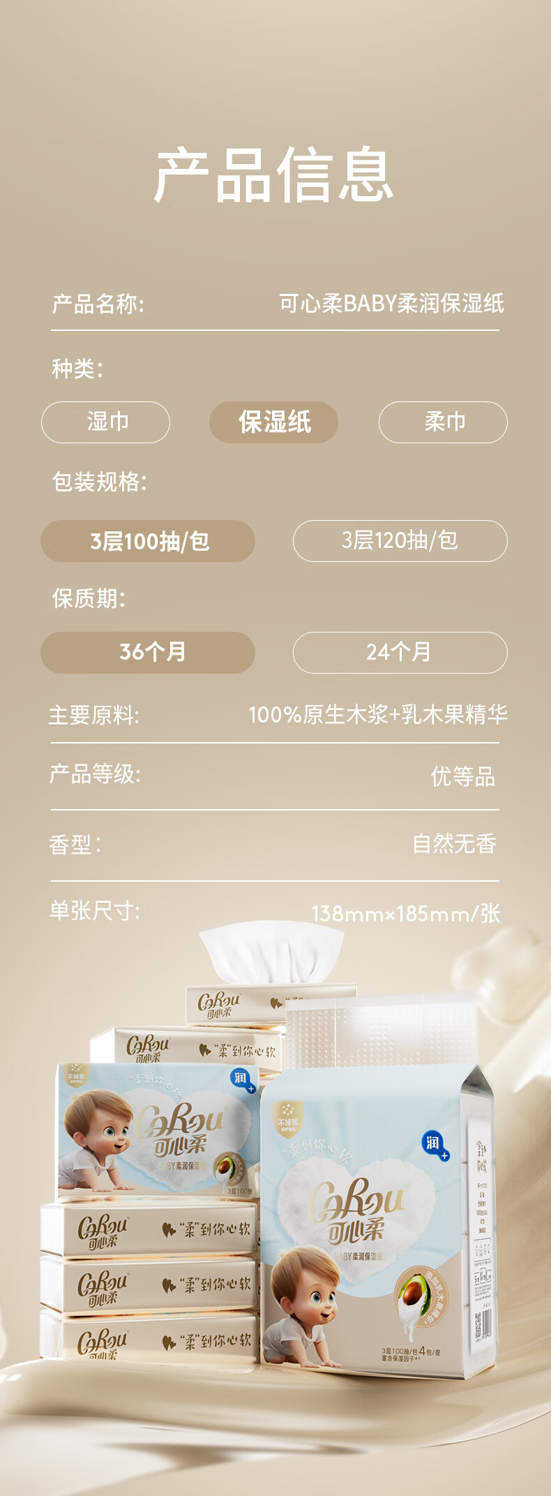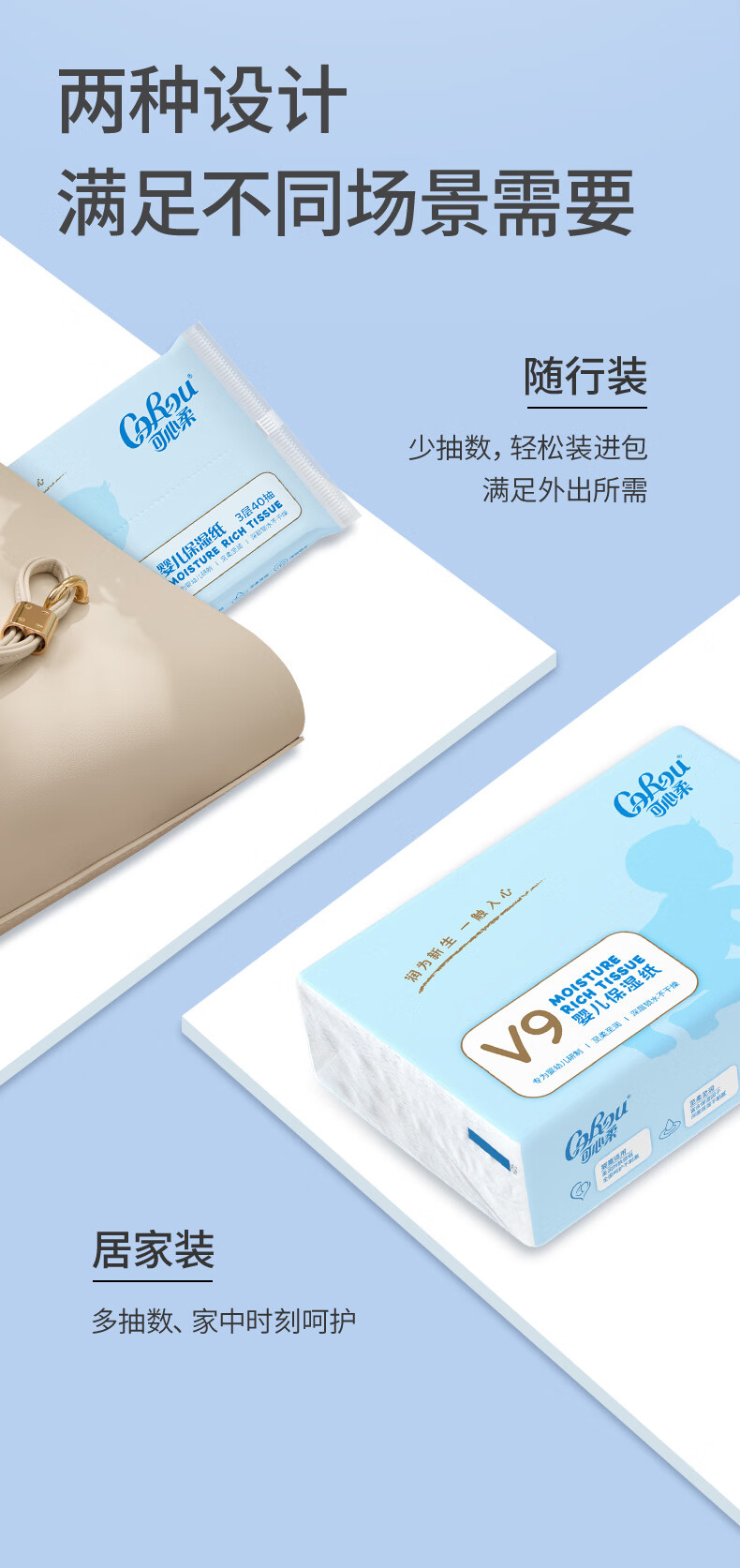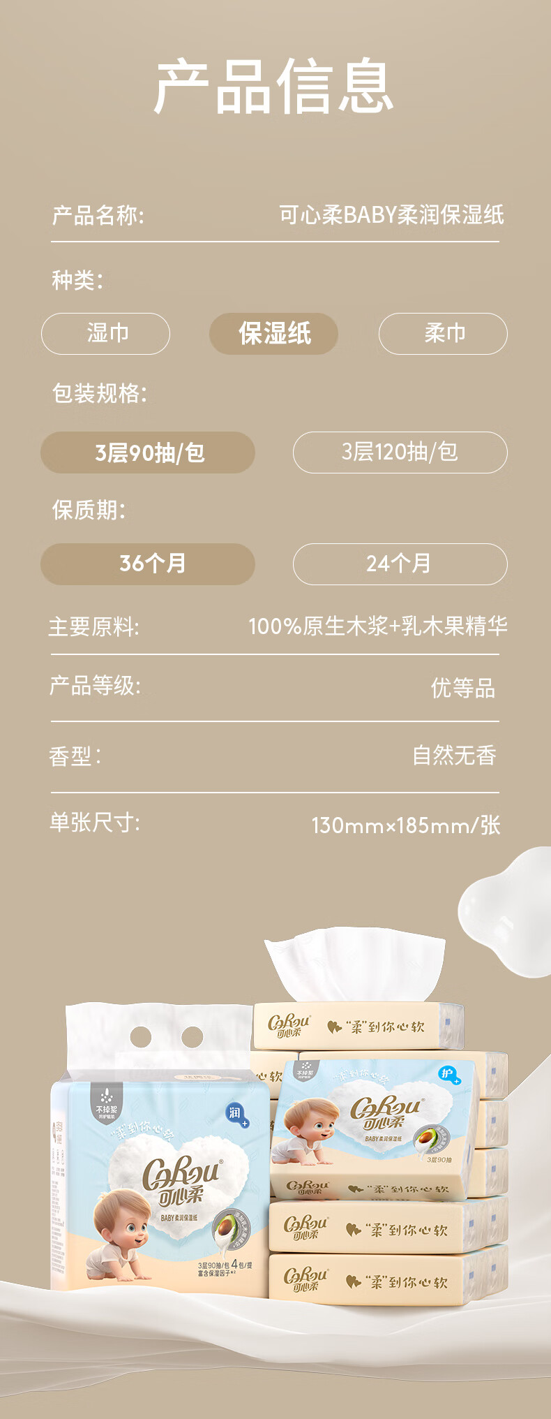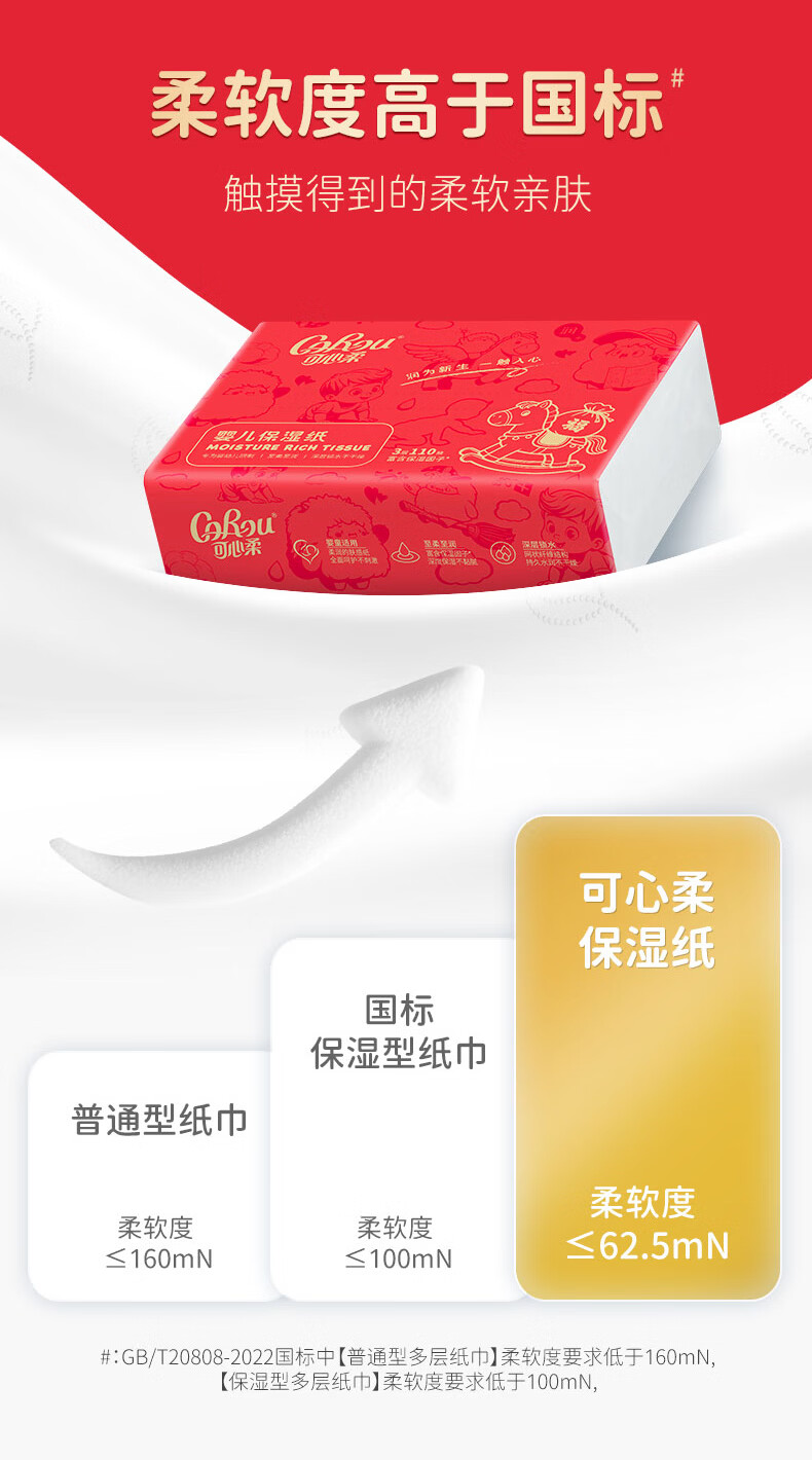 可心柔(COROU)V9婴儿纸巾3层110抽宝宝云柔巾乳霜纸保湿纸巾卫生纸抽纸 【升级款】 3层 120抽*15包