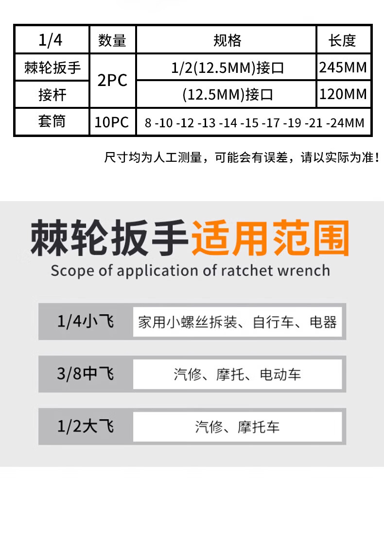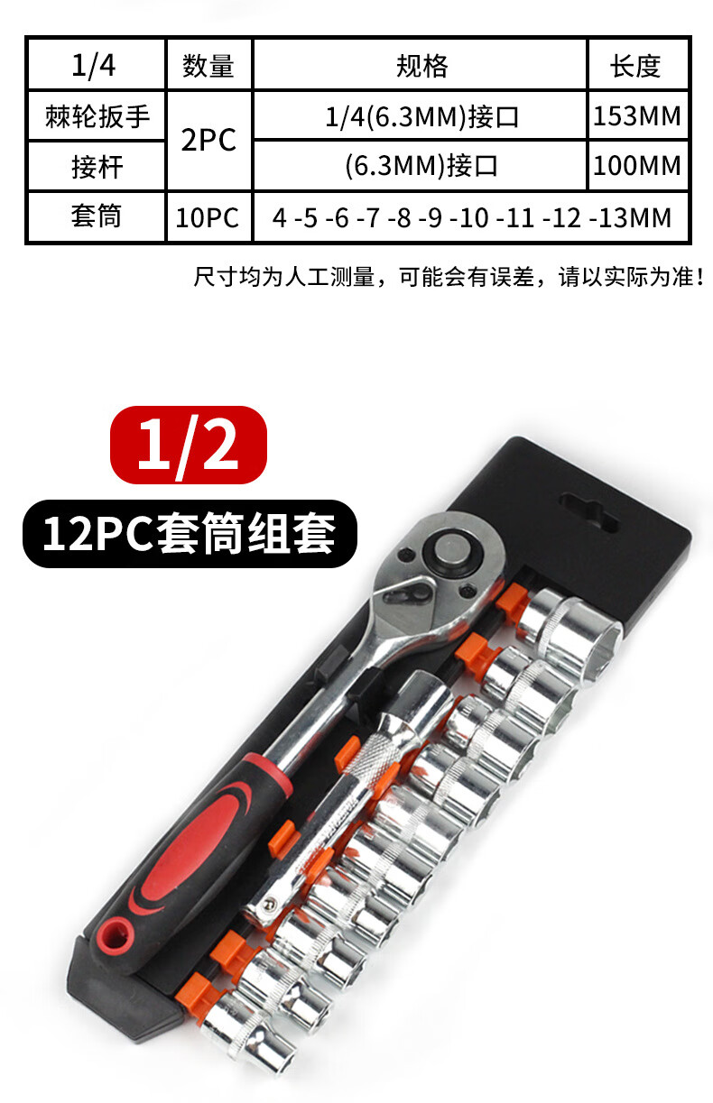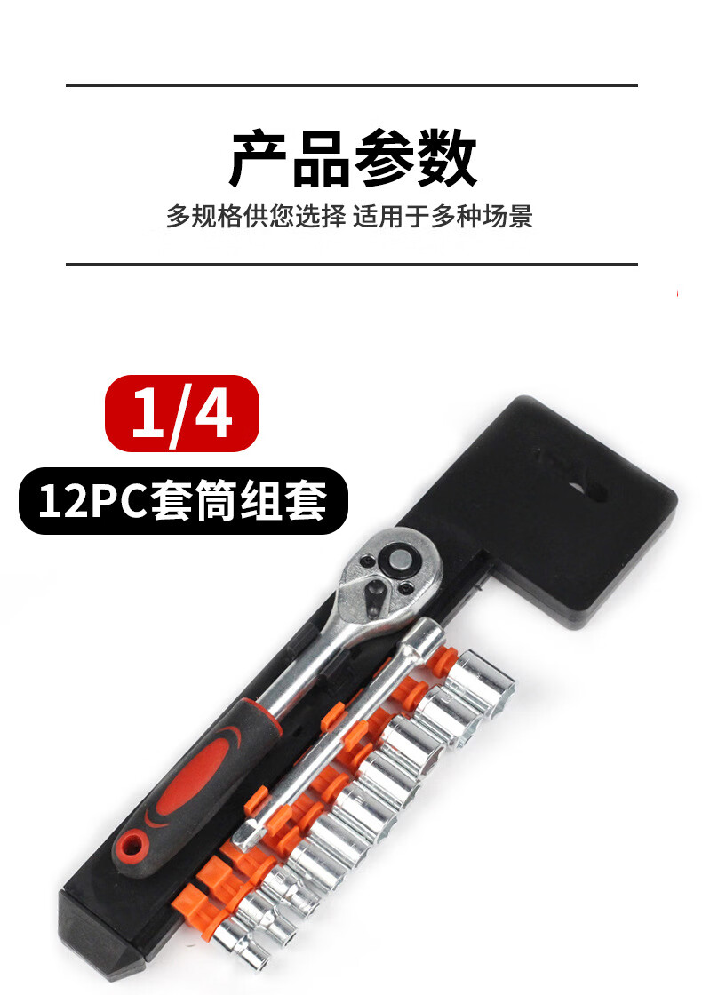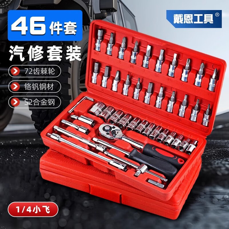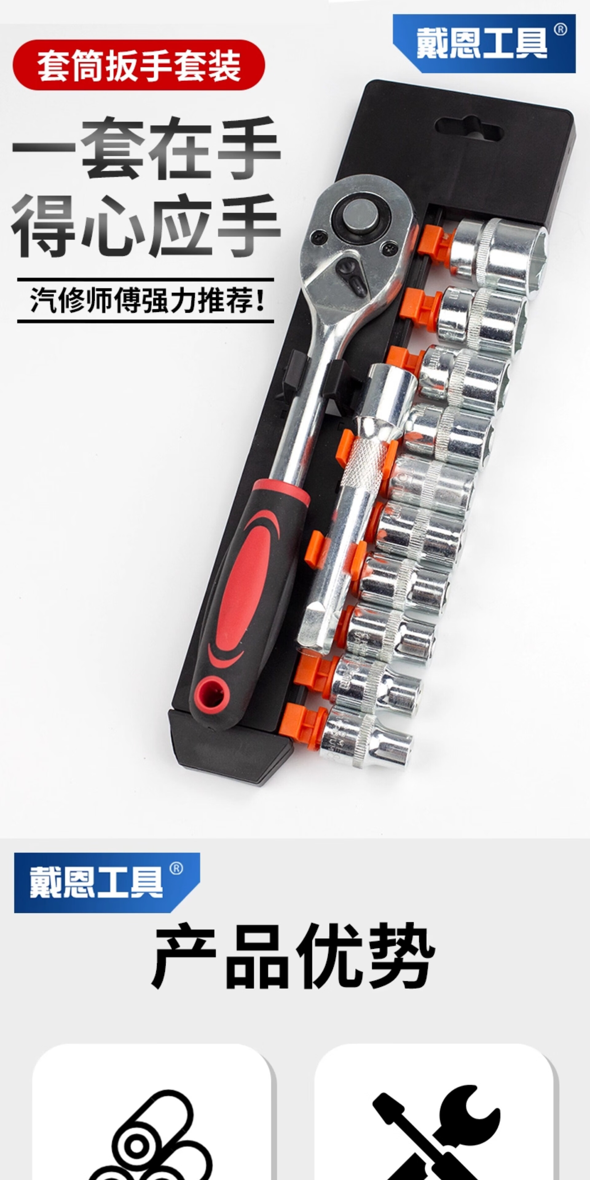 戴恩工具(DAIEN)小飞12件套车载工具套装套筒扳手棘轮组合万用汽修手动多功能工具 【伸缩】棘轮扳手1/4小飞72齿