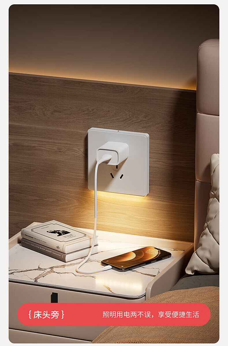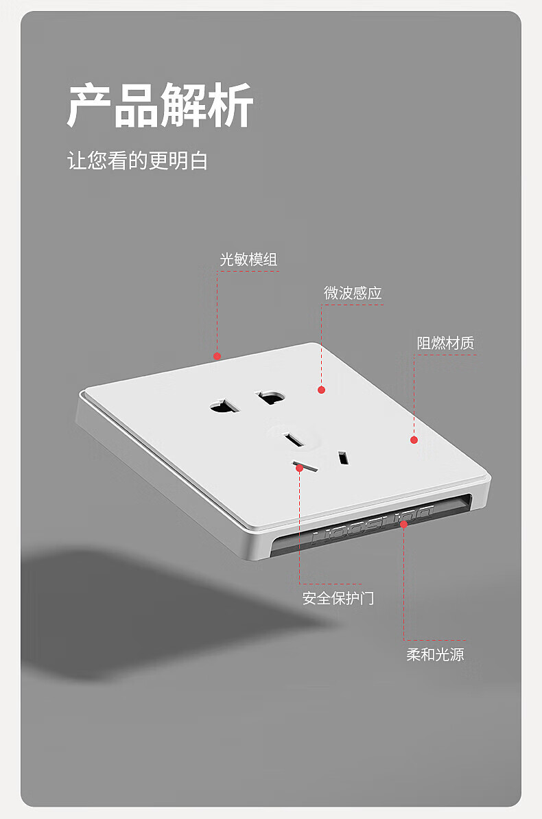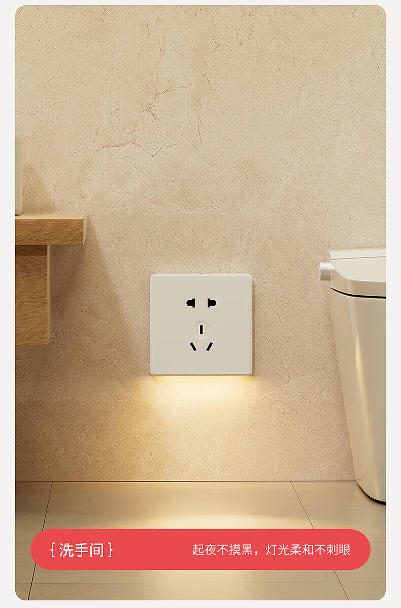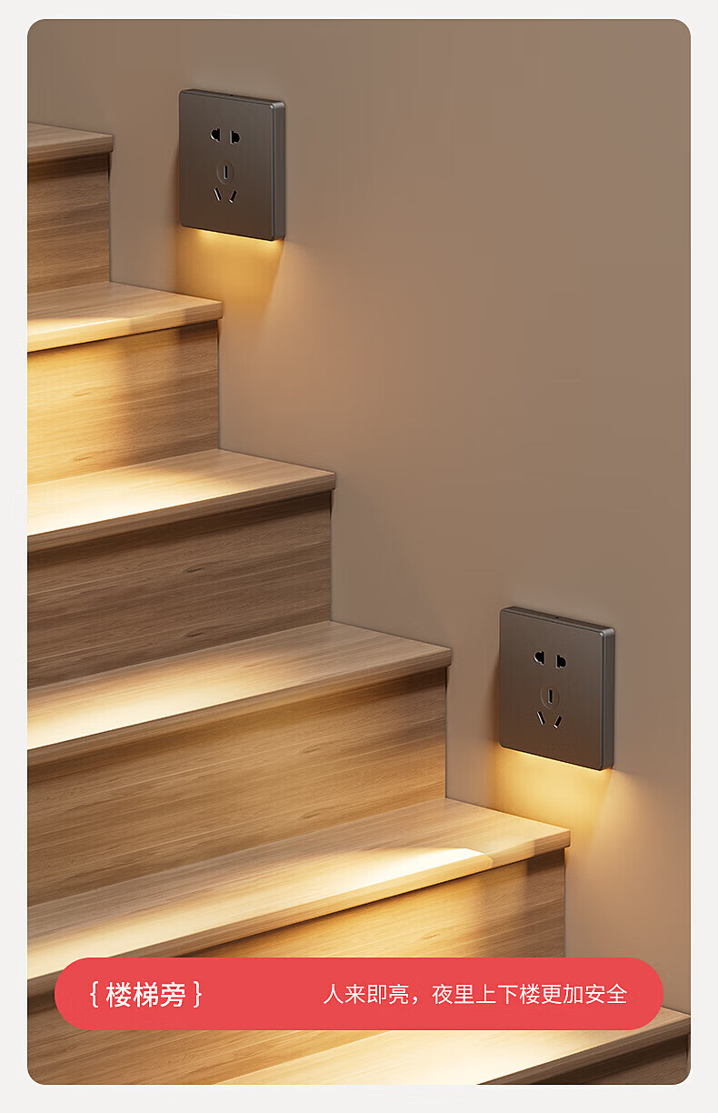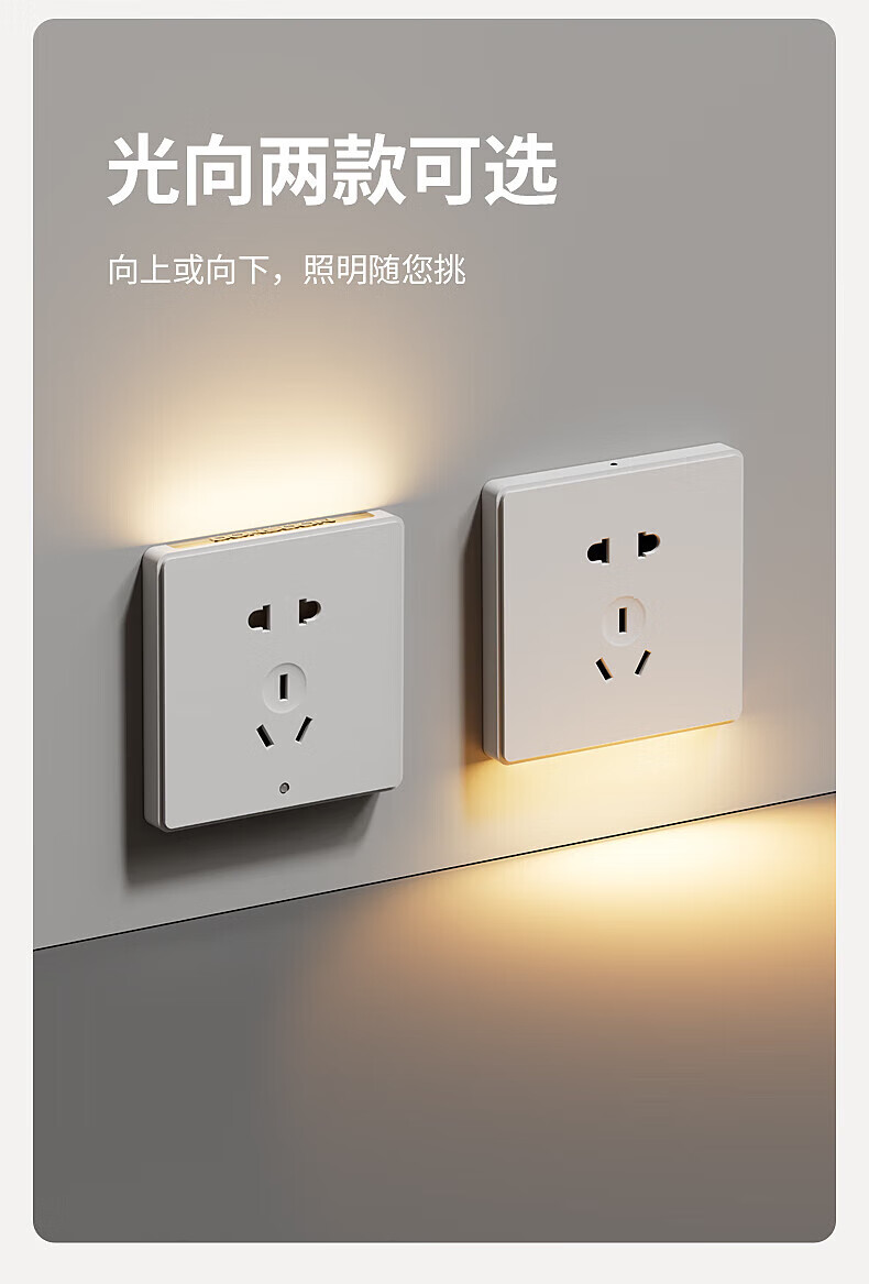 国际电工人体智能感应地脚灯86型嵌入式家用楼梯走廊带小夜灯五孔插座 白色地脚灯五孔插座【顶部发光】