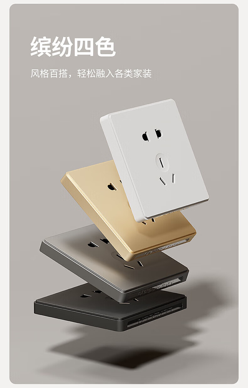 FDD国际电工超薄炊烟灰色开关插座面板暗装一开五孔全屋套餐家用现代简约套装 空白面板