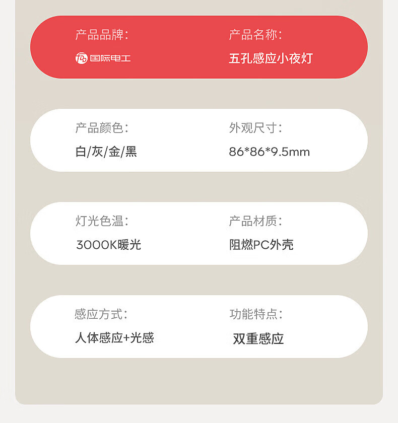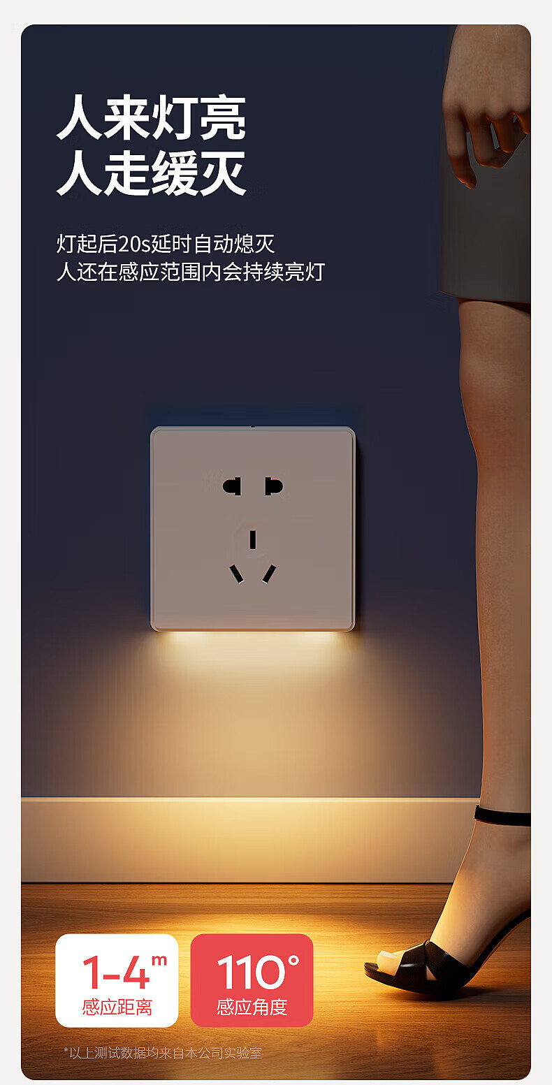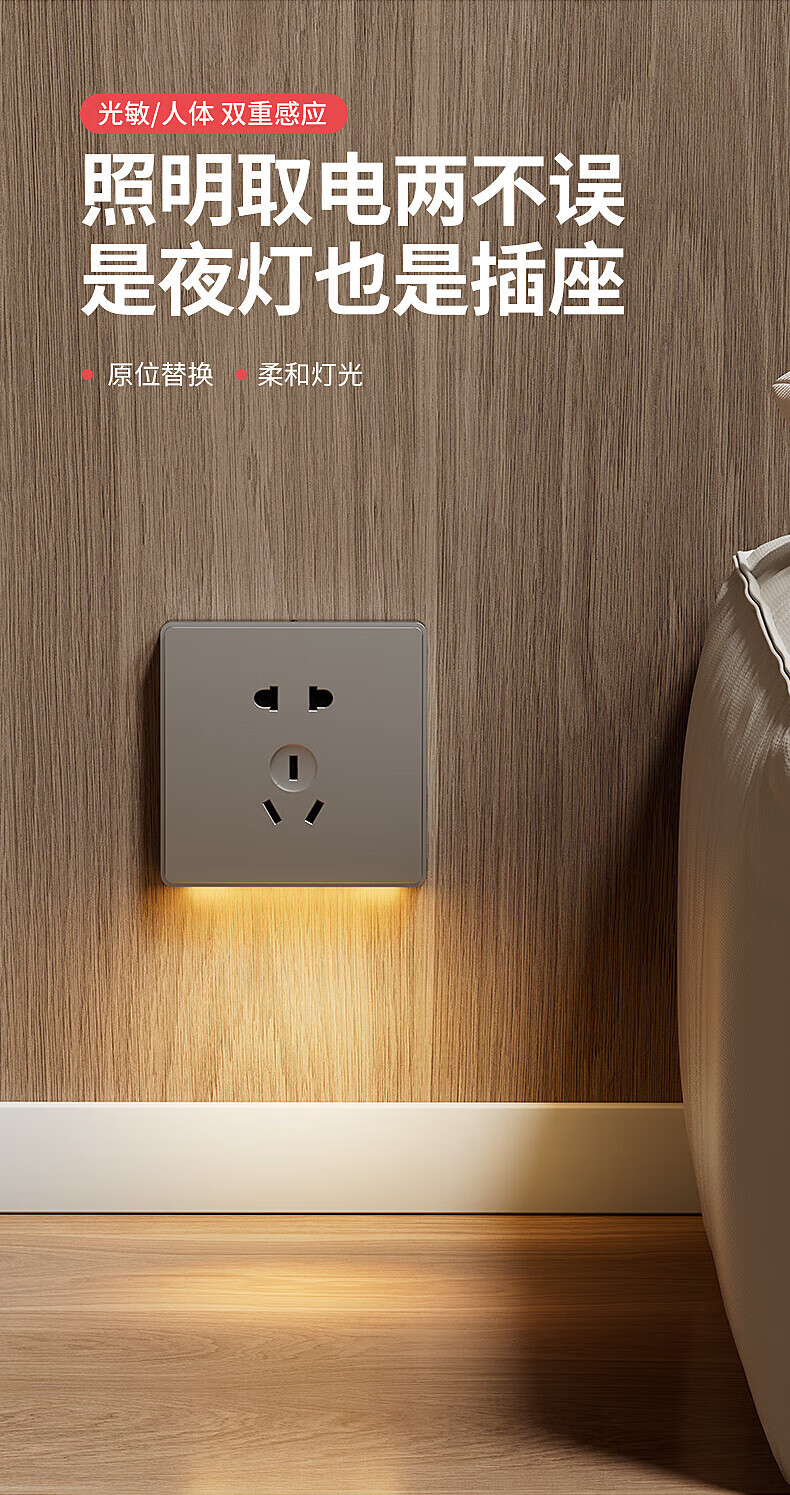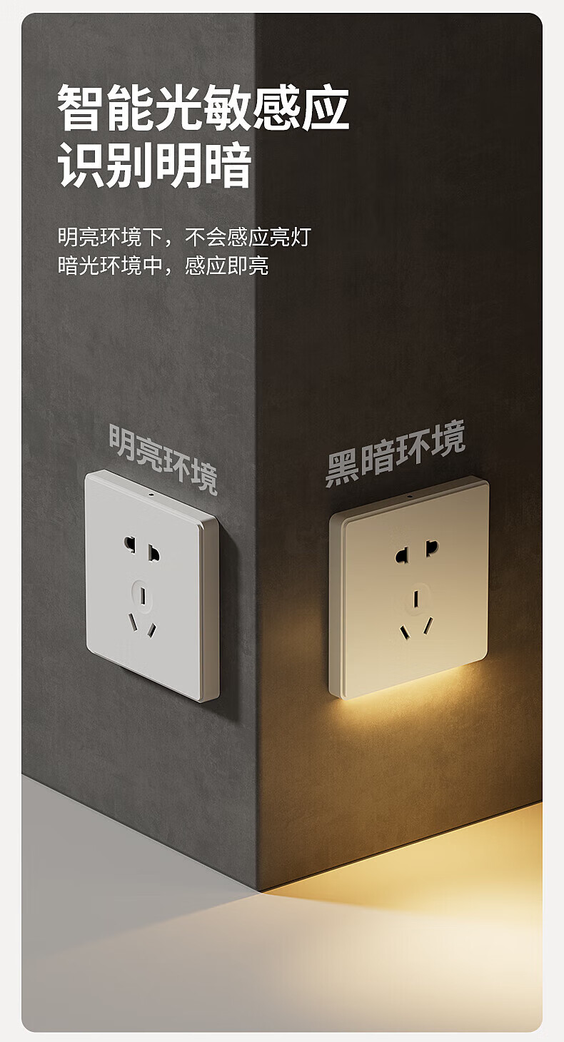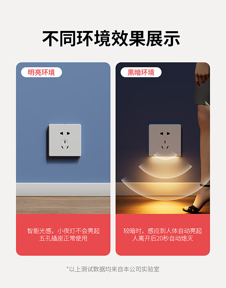 国际电工五孔地脚灯感应灯插座型小夜灯床头灯卧室夜灯氛围过道智能走廊灯 白色 五孔感应灯【顶部发光】