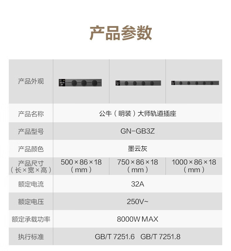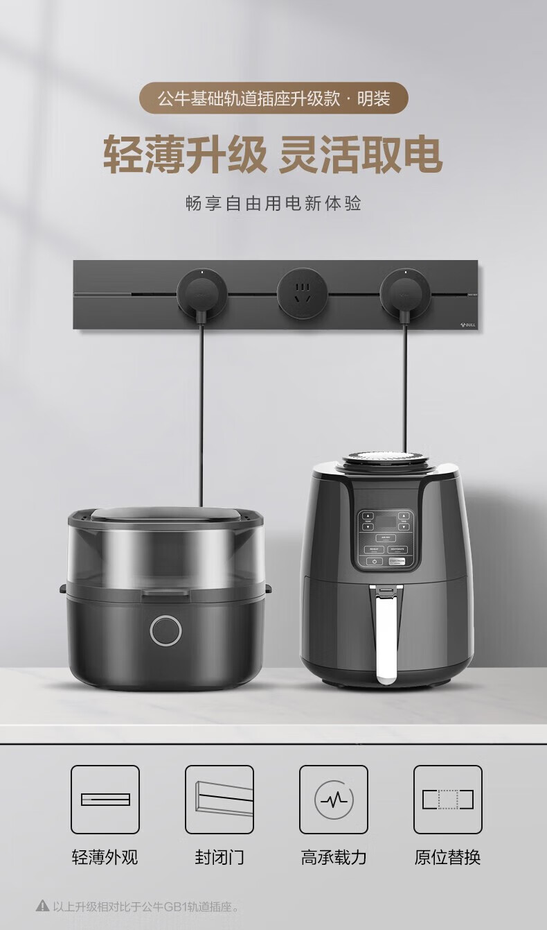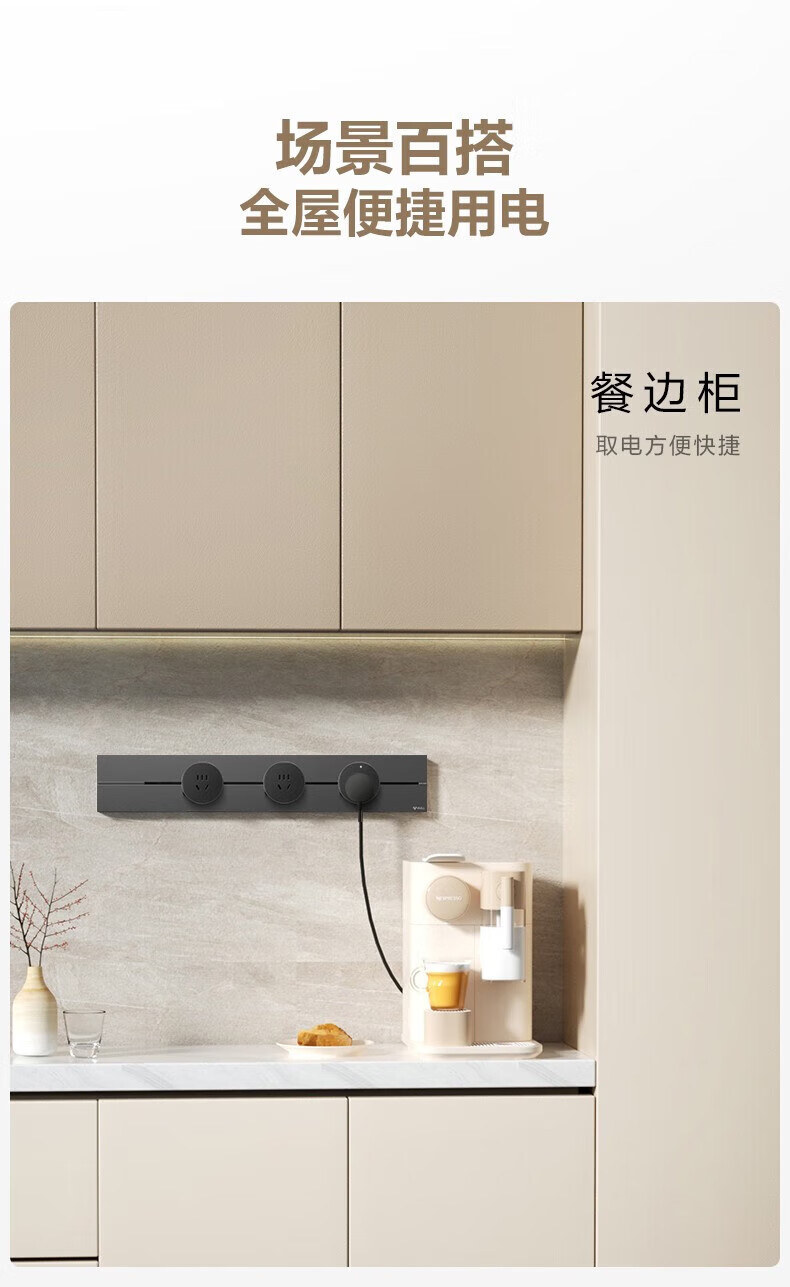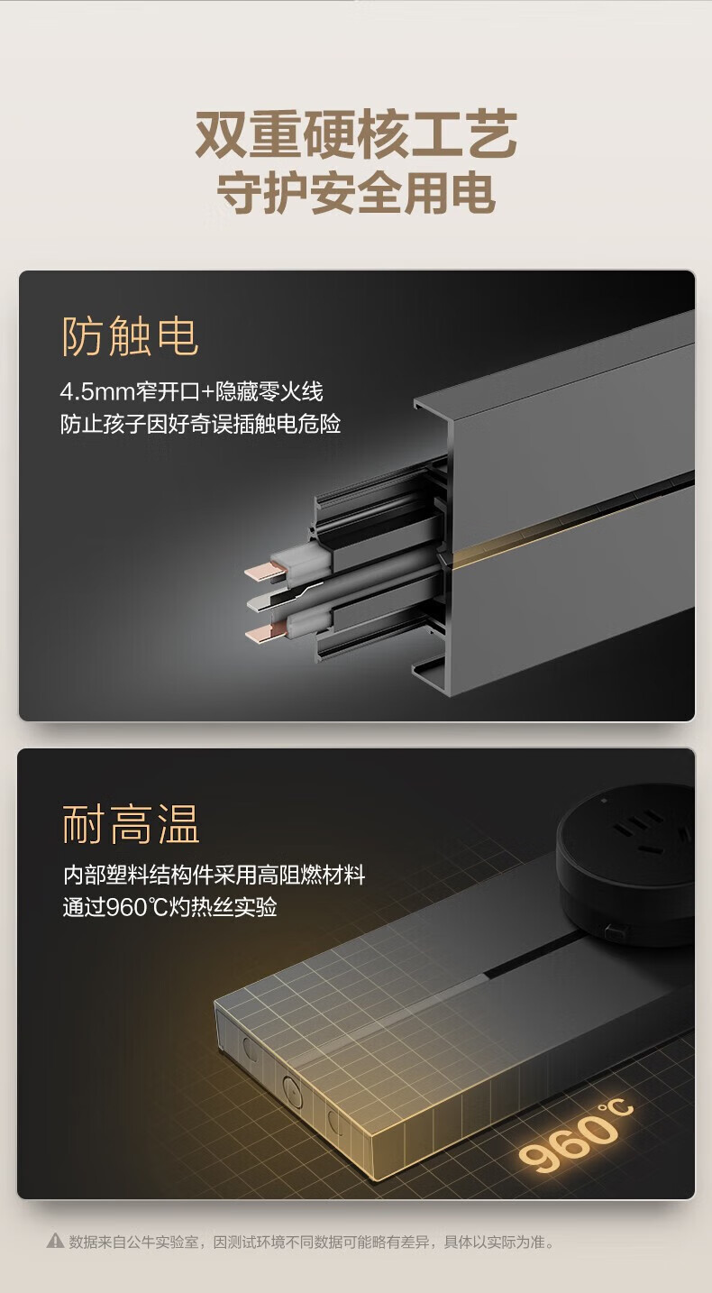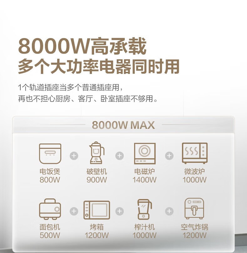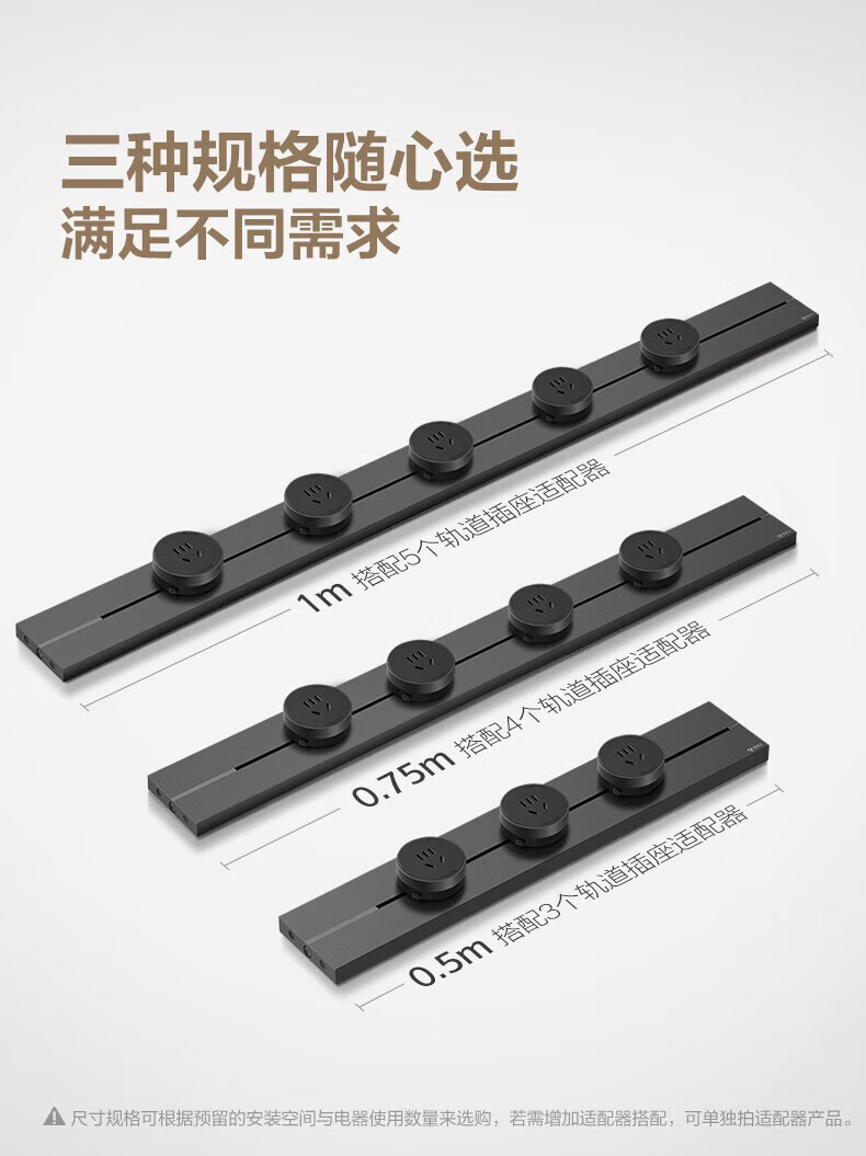 公牛智能轨道插座滑轨插排移动插板gb3滑动式导轨餐边柜 磁吸免打孔 【墨云灰】500mm轨道+3五孔