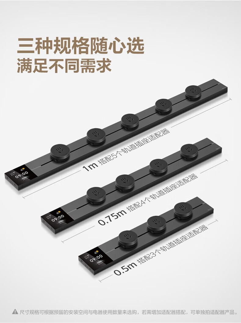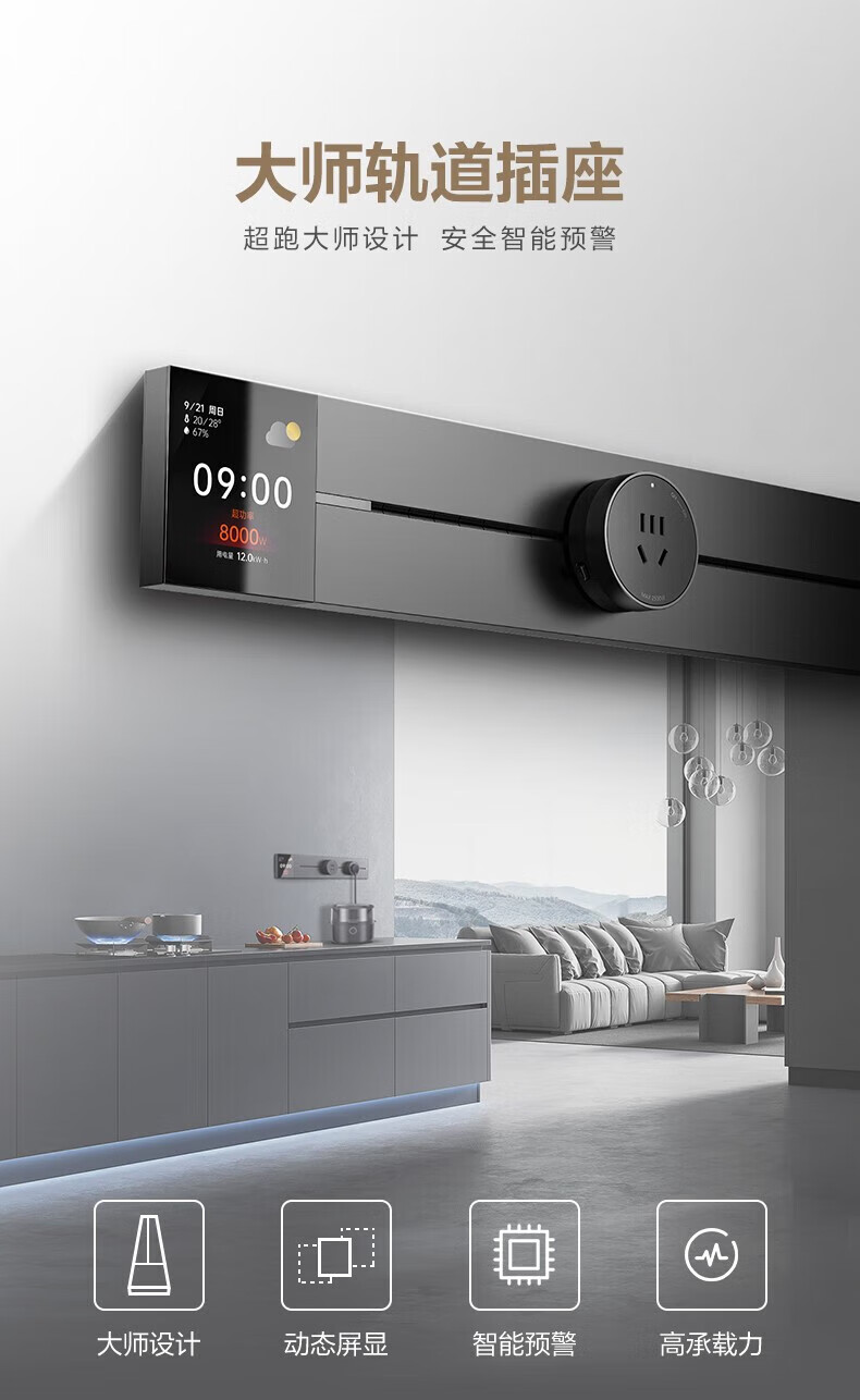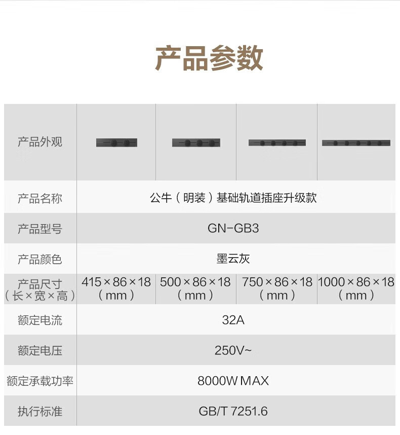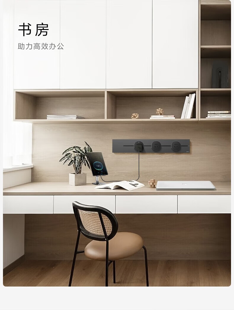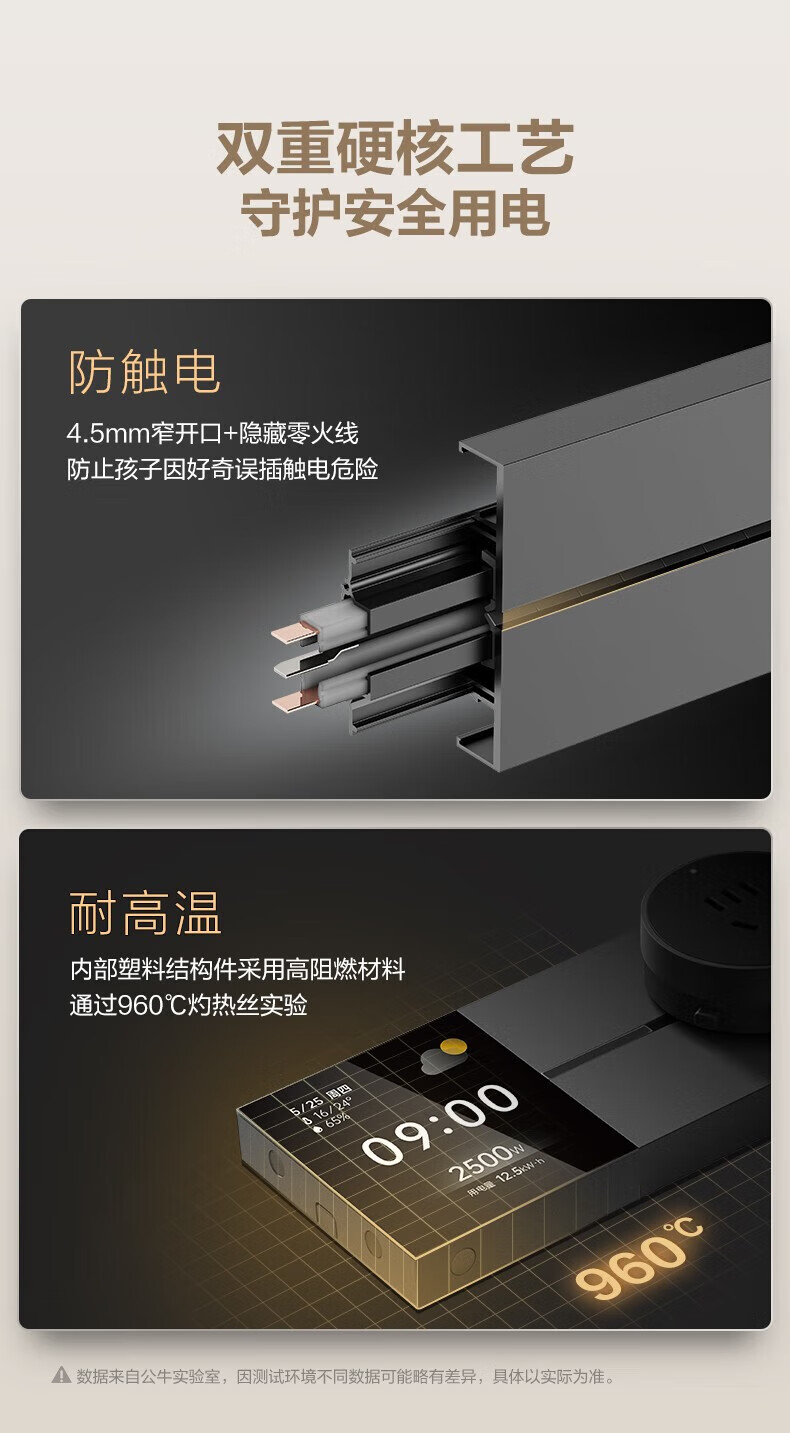 公牛智能轨道插座滑轨插排移动插板gb3滑动式导轨餐边柜 磁吸免打孔 【墨云灰】500mm轨道+3五孔