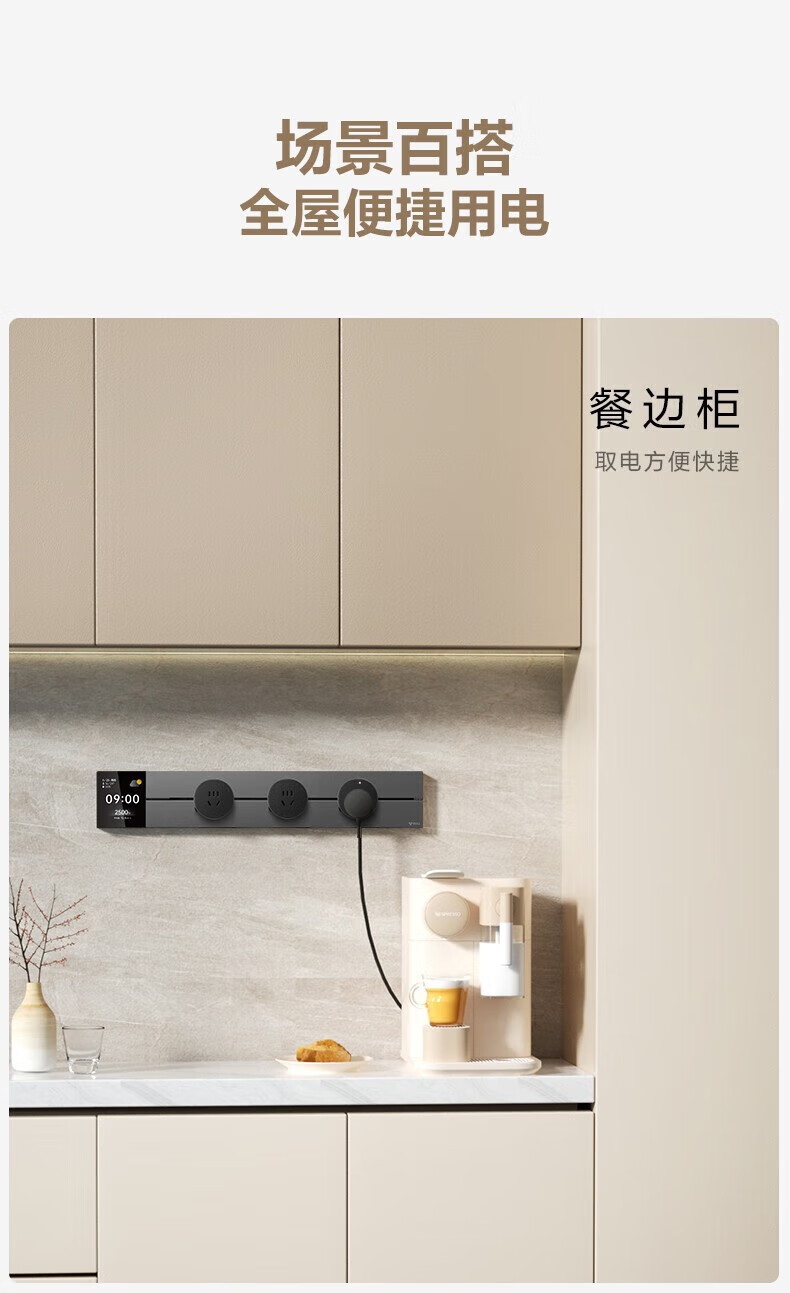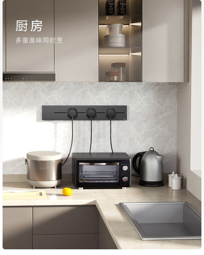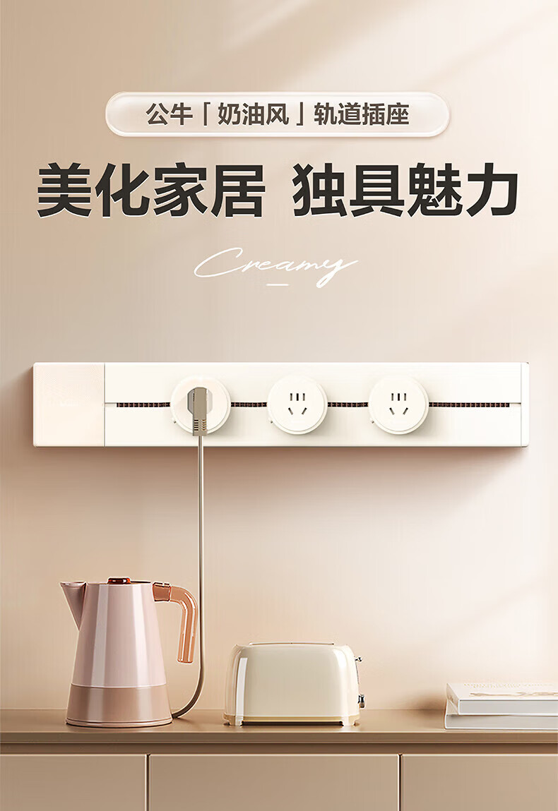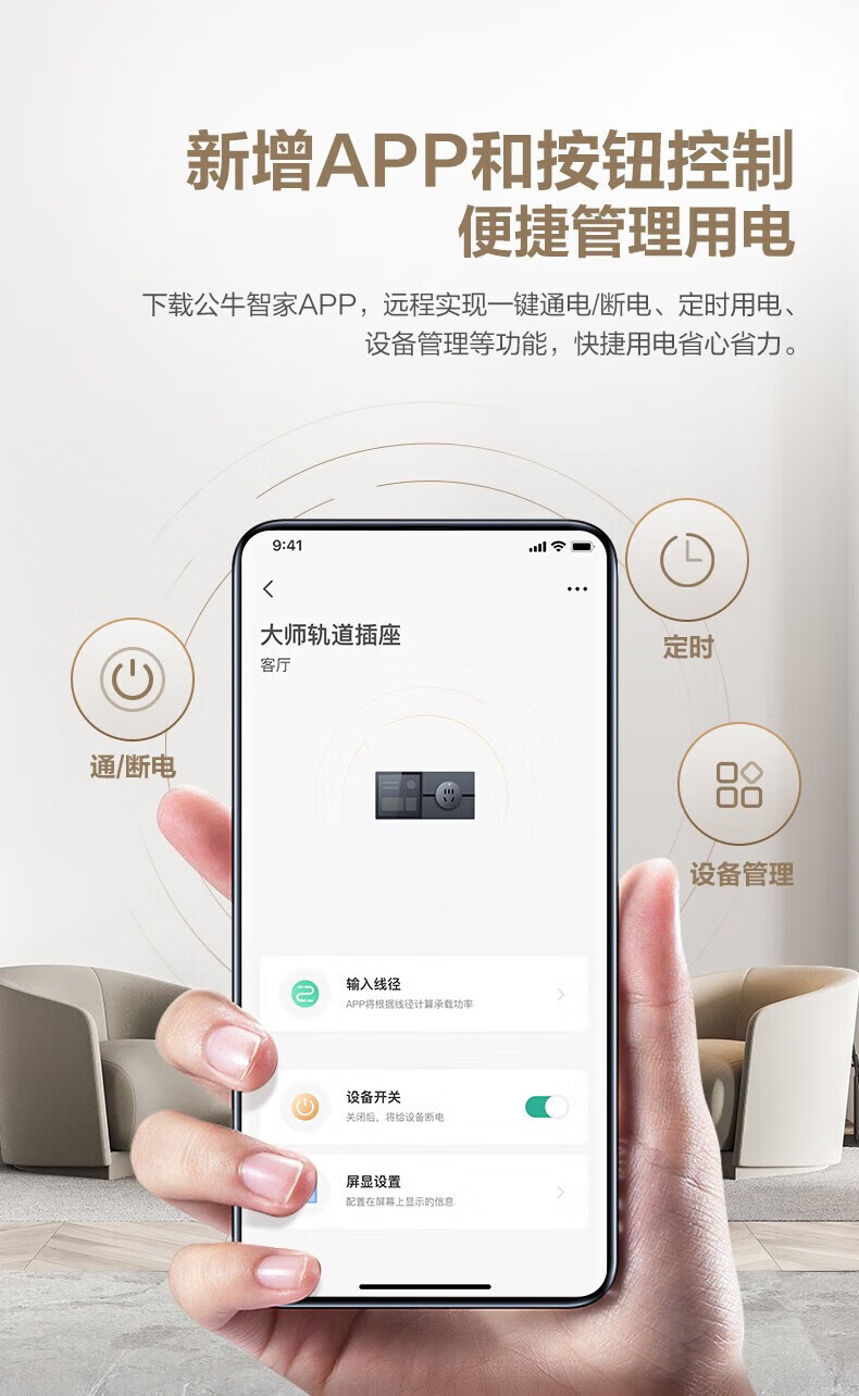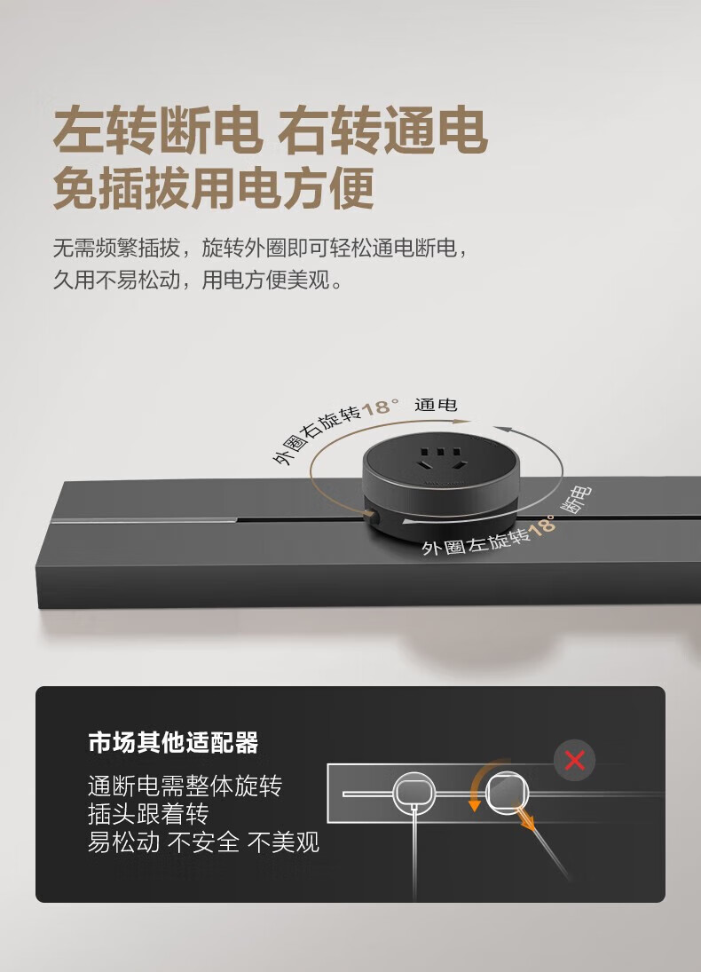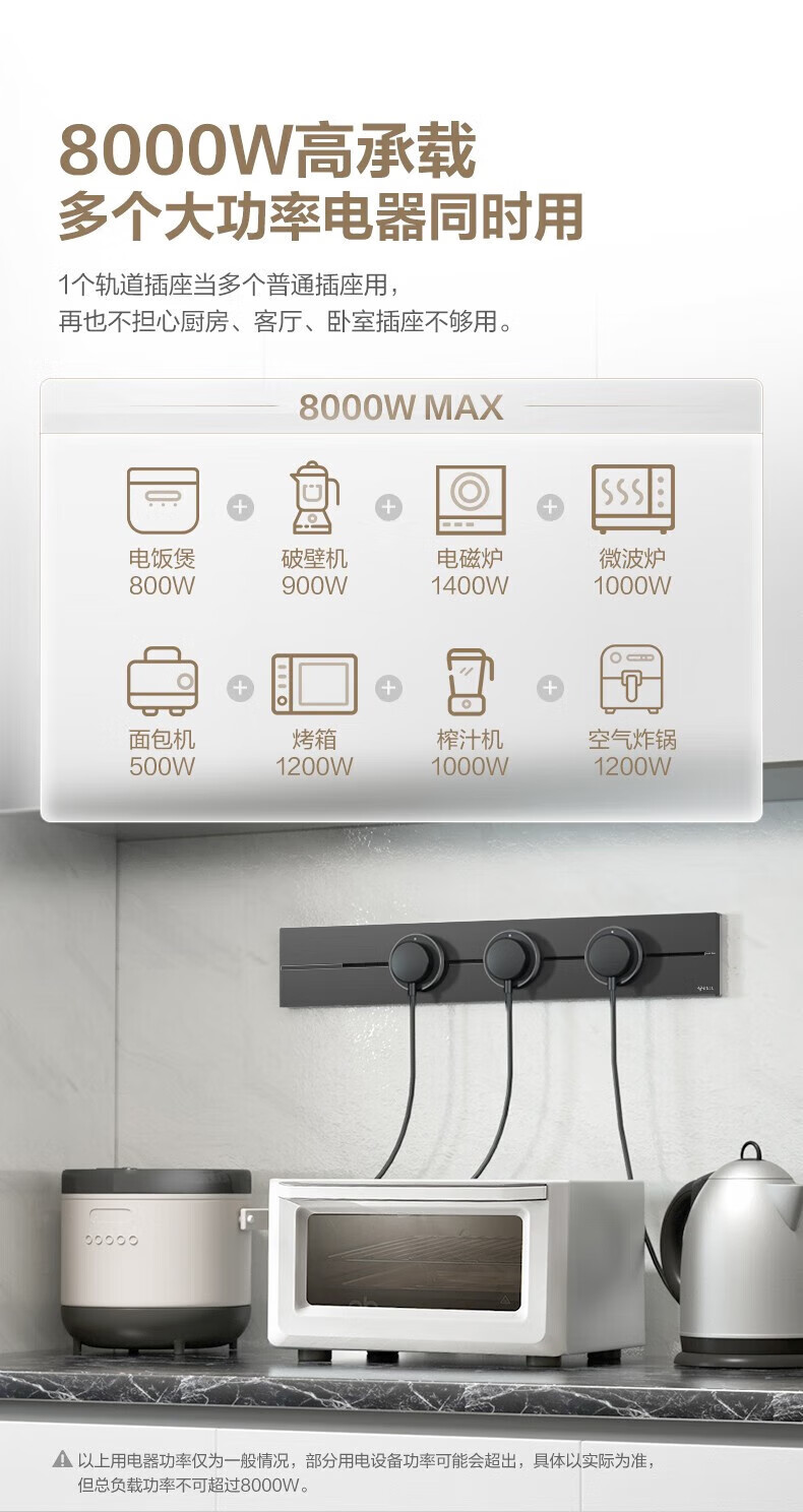 公牛智能轨道插座滑轨插排移动插板gb3滑动式导轨餐边柜 磁吸免打孔 【墨云灰】500mm轨道+3五孔