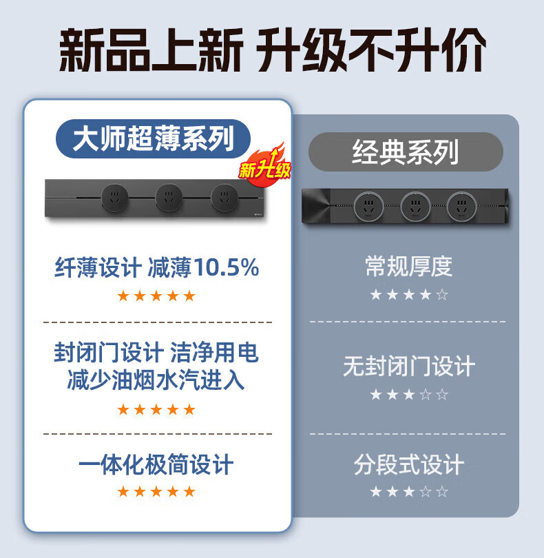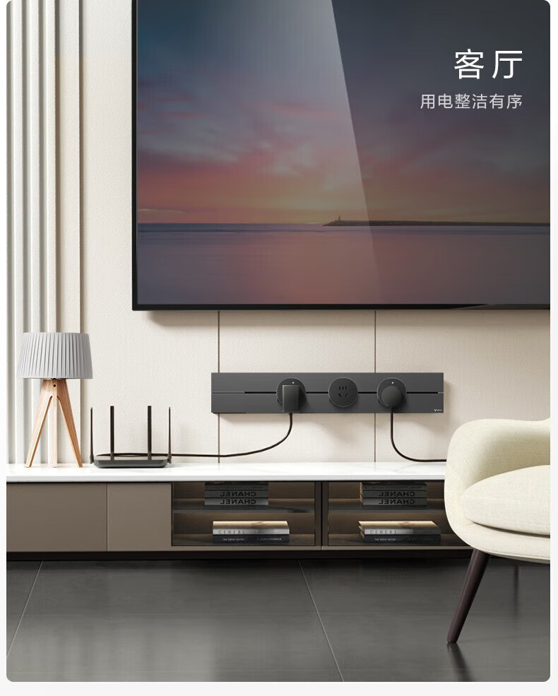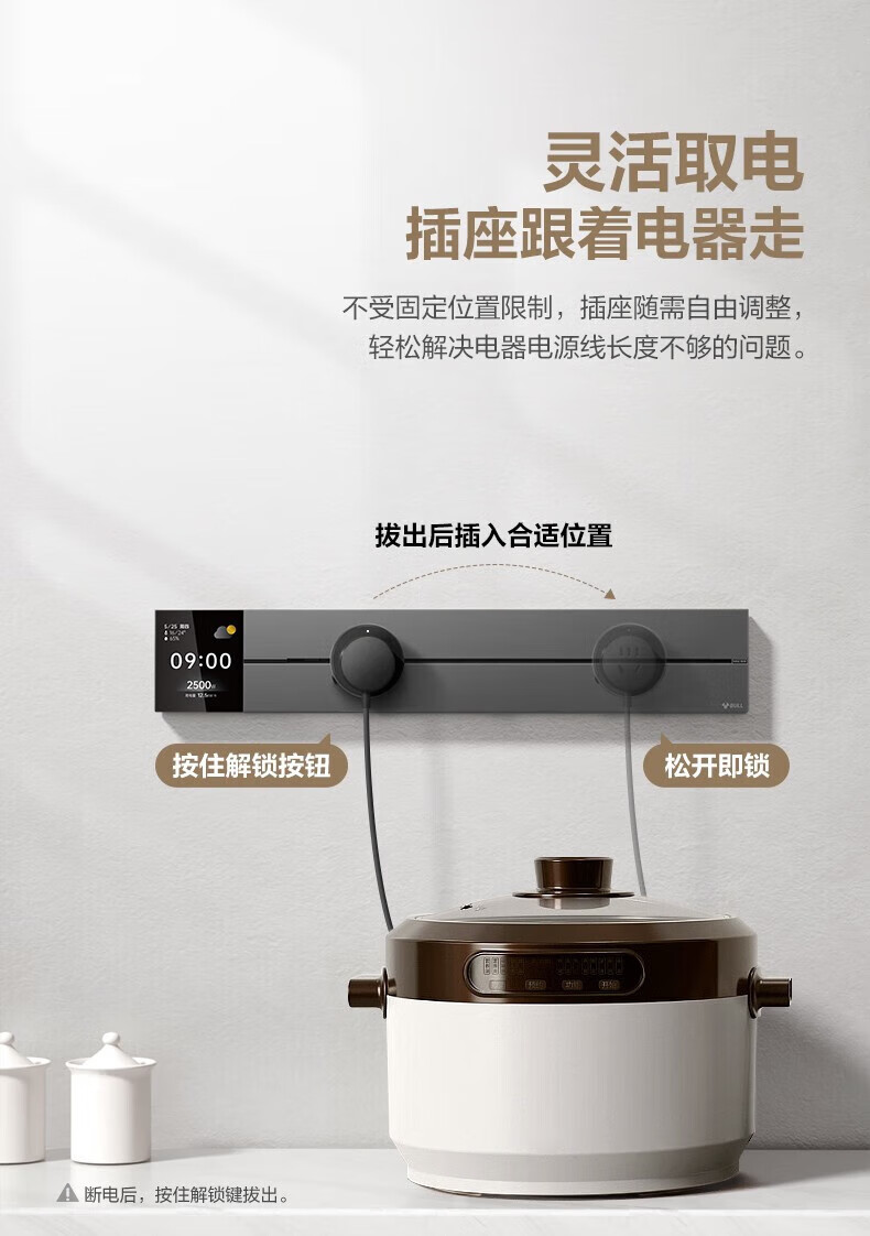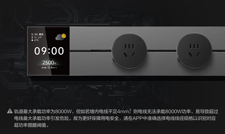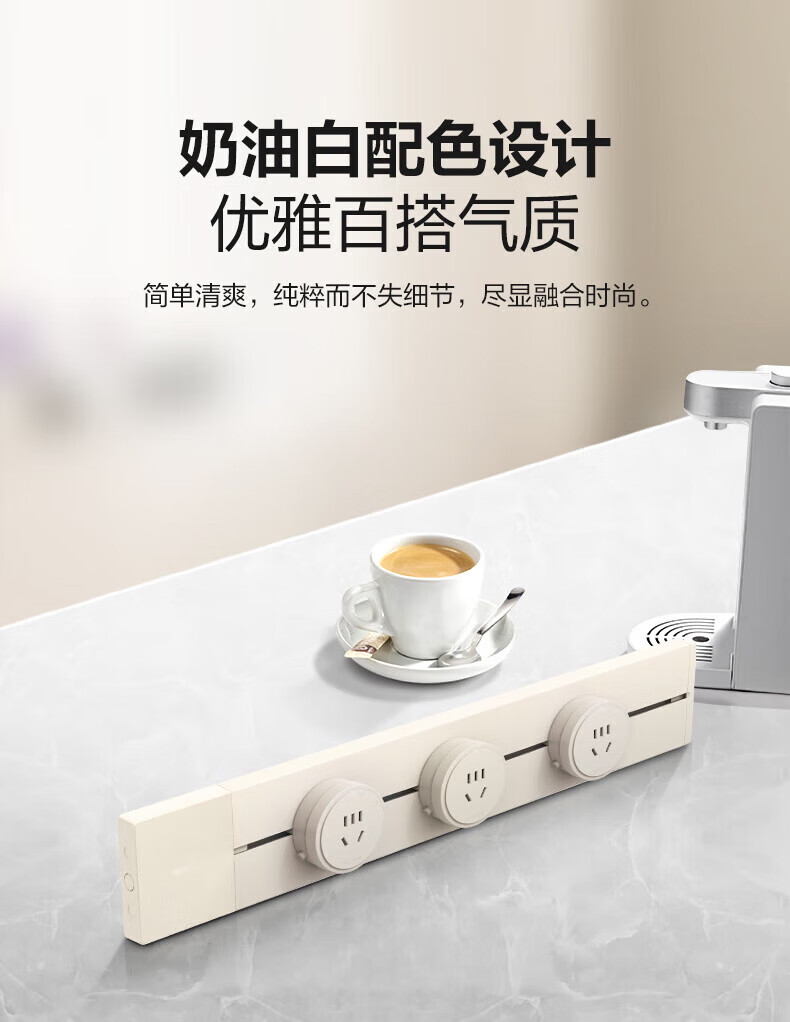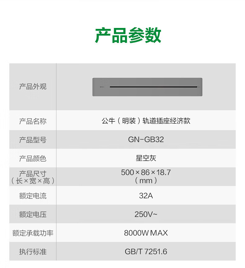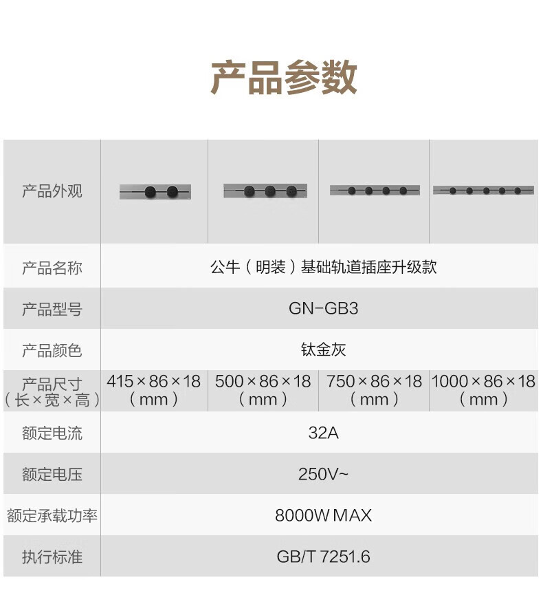 公牛智能轨道插座滑轨插排移动插板gb3滑动式导轨餐边柜 磁吸免打孔 【墨云灰】500mm轨道+3五孔