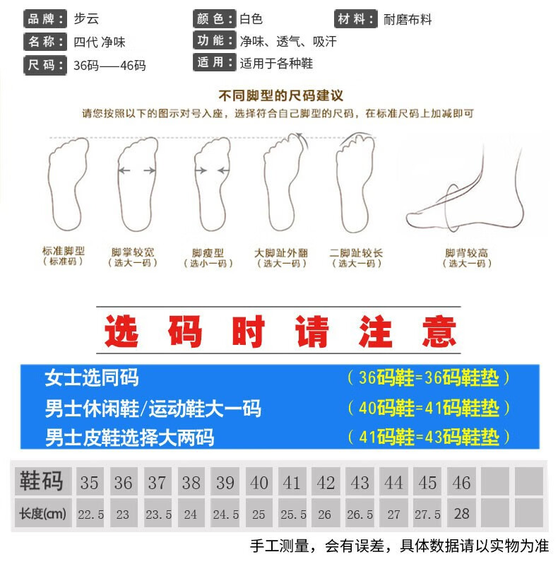 步云 新款四代除臭鞋垫防臭吸汗男女军训除臭透气舒适 804(20双装) 41