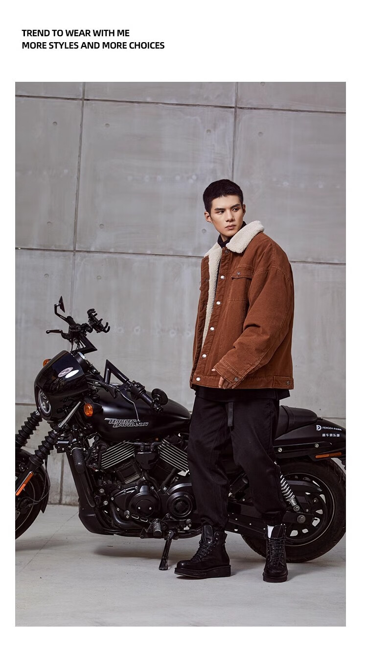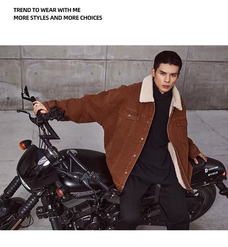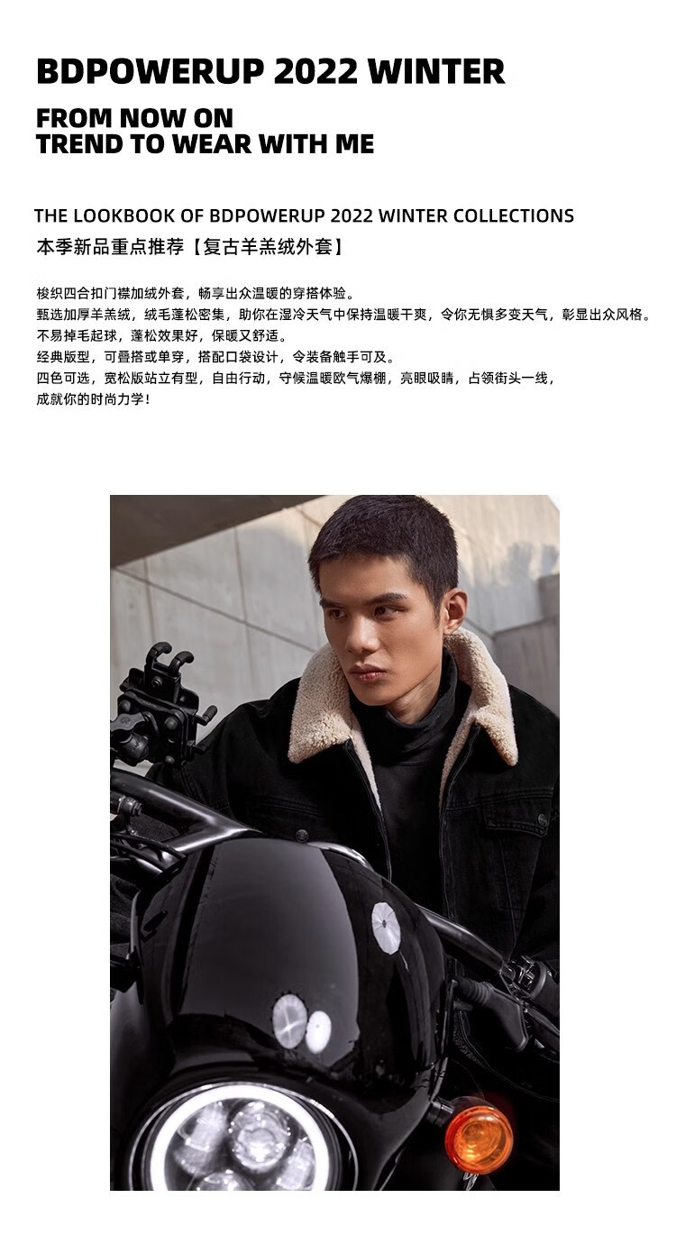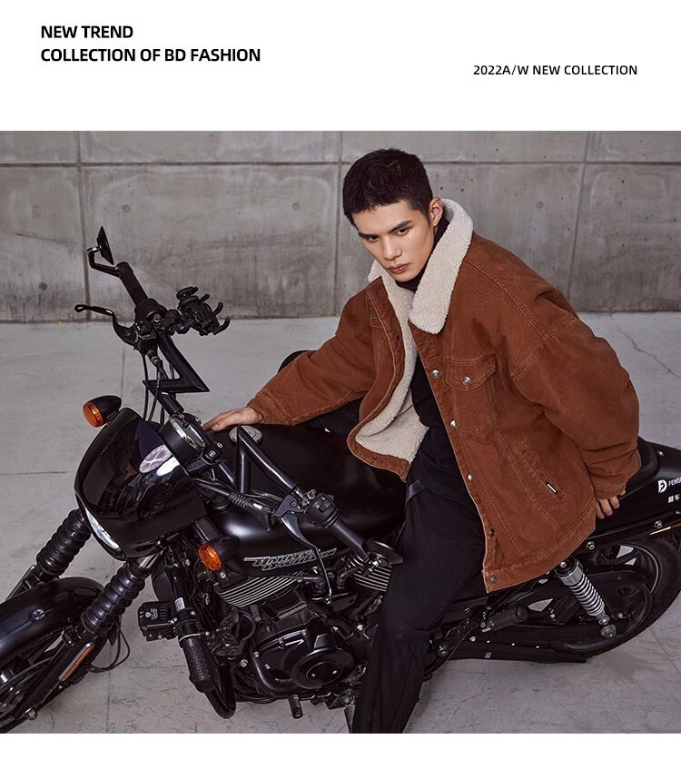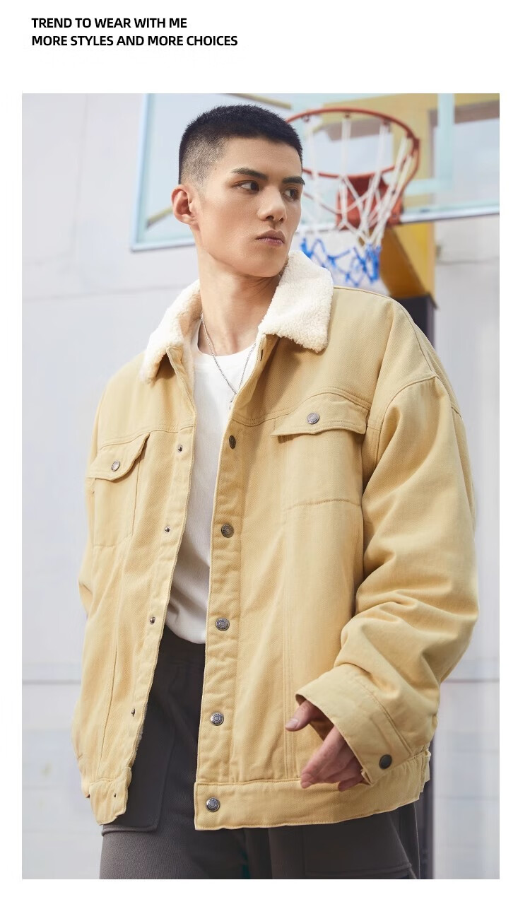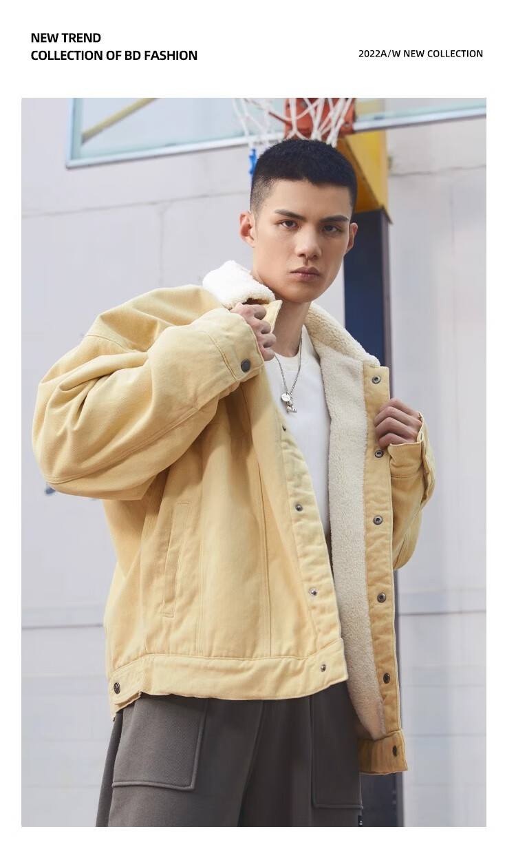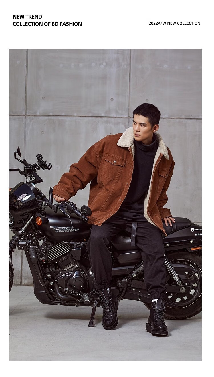 BD.POWER UP+秋冬黑色运动夹克巴恩风外套男加厚保暖羊羔绒外套男宽松翻领上衣 卡其色 L 150-170斤
