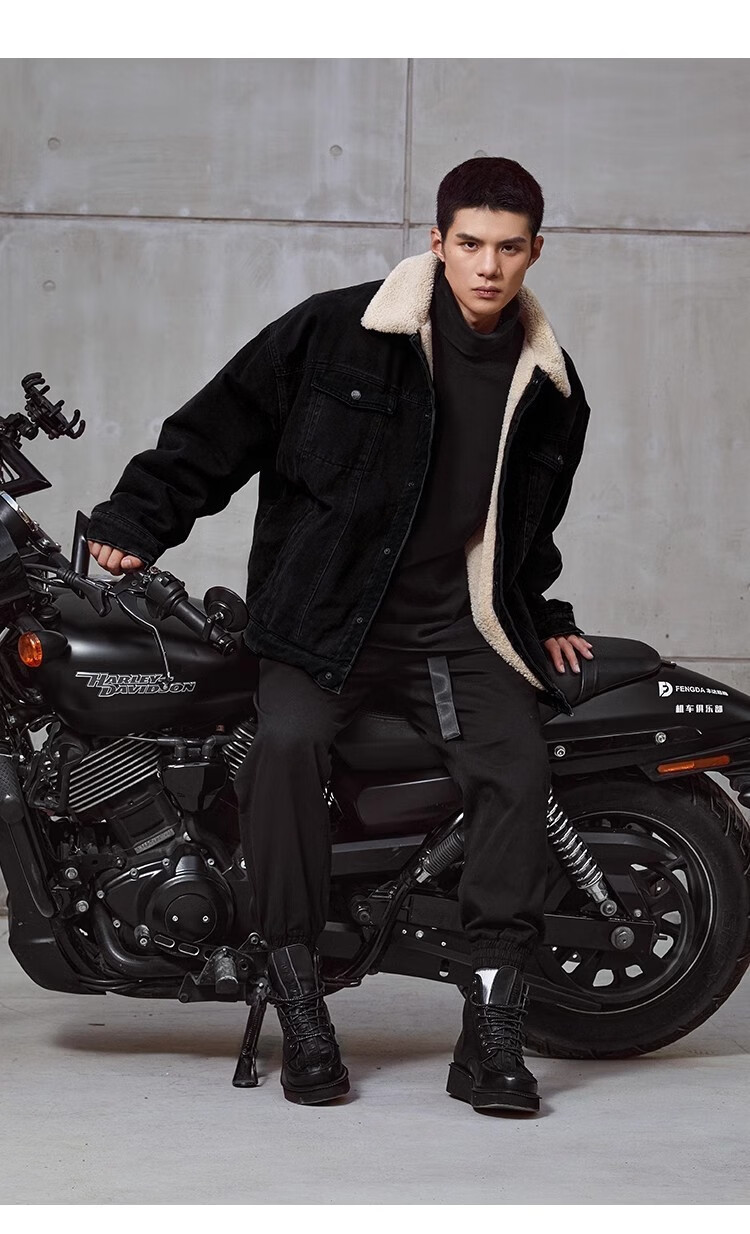 BD.POWER UP+秋季纯棉健身牛仔外套男宽松简约美式复古翻领运动夹克外套男 黑色(选择最多) XL 85-95kg
