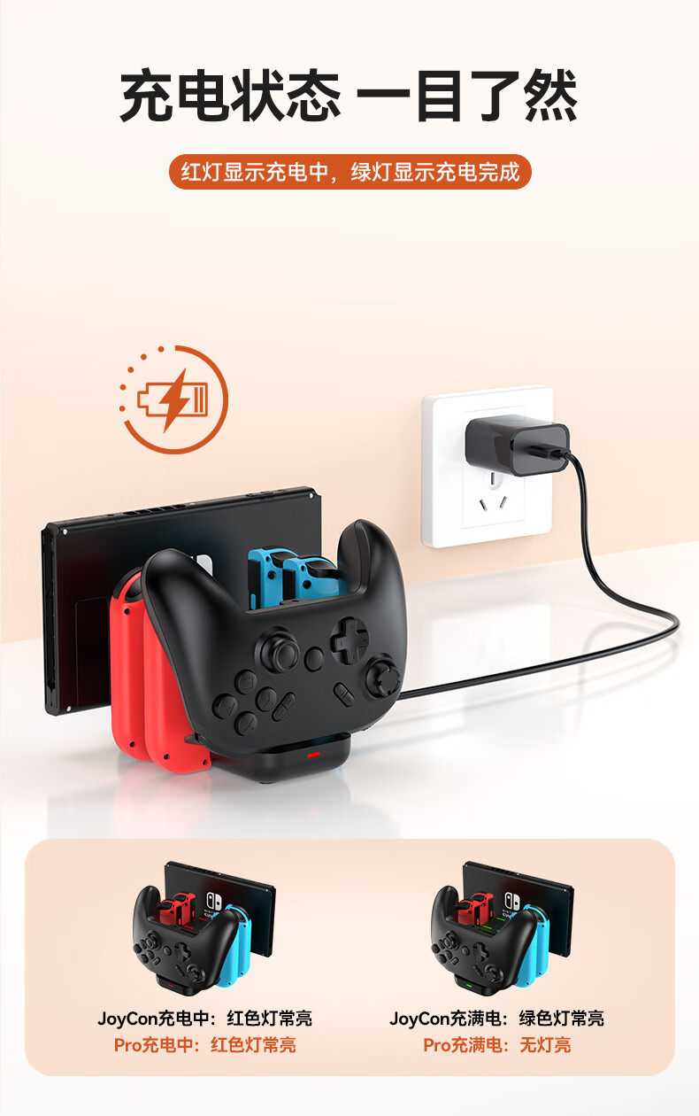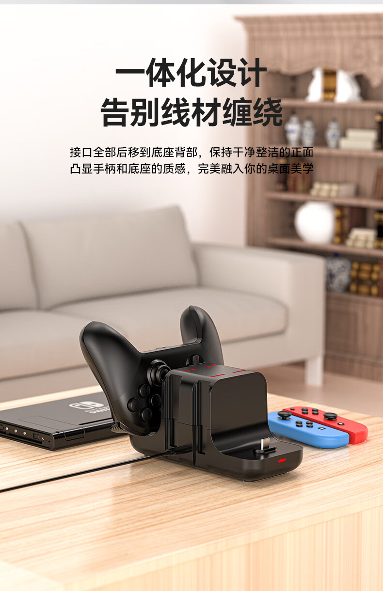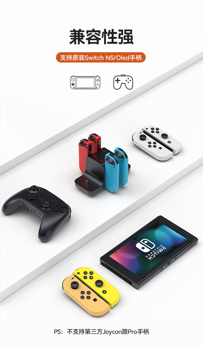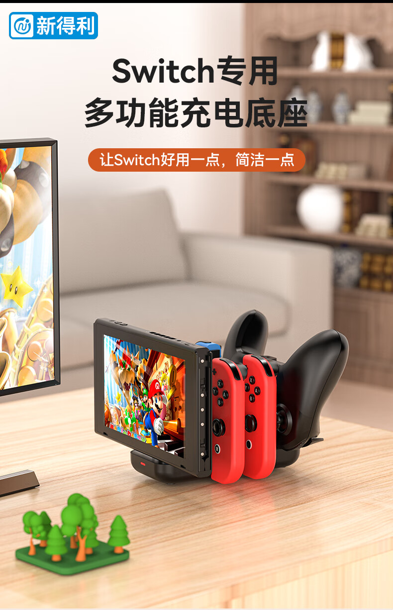 新得利Switch手柄充电座Joycon充电器NS底座Oled游戏机支架Lite座充Pro游戏手柄周边配件 Switch手柄充电座【6合一】