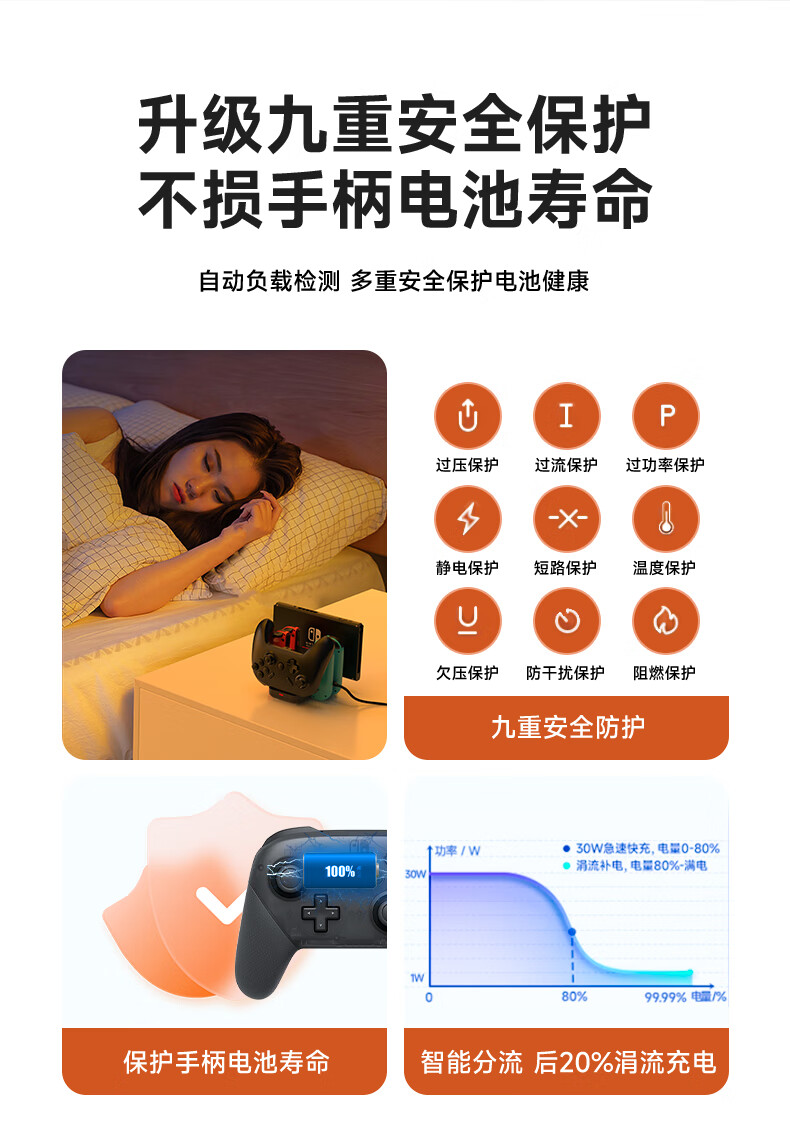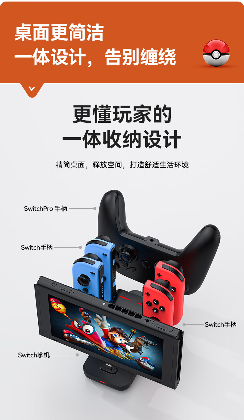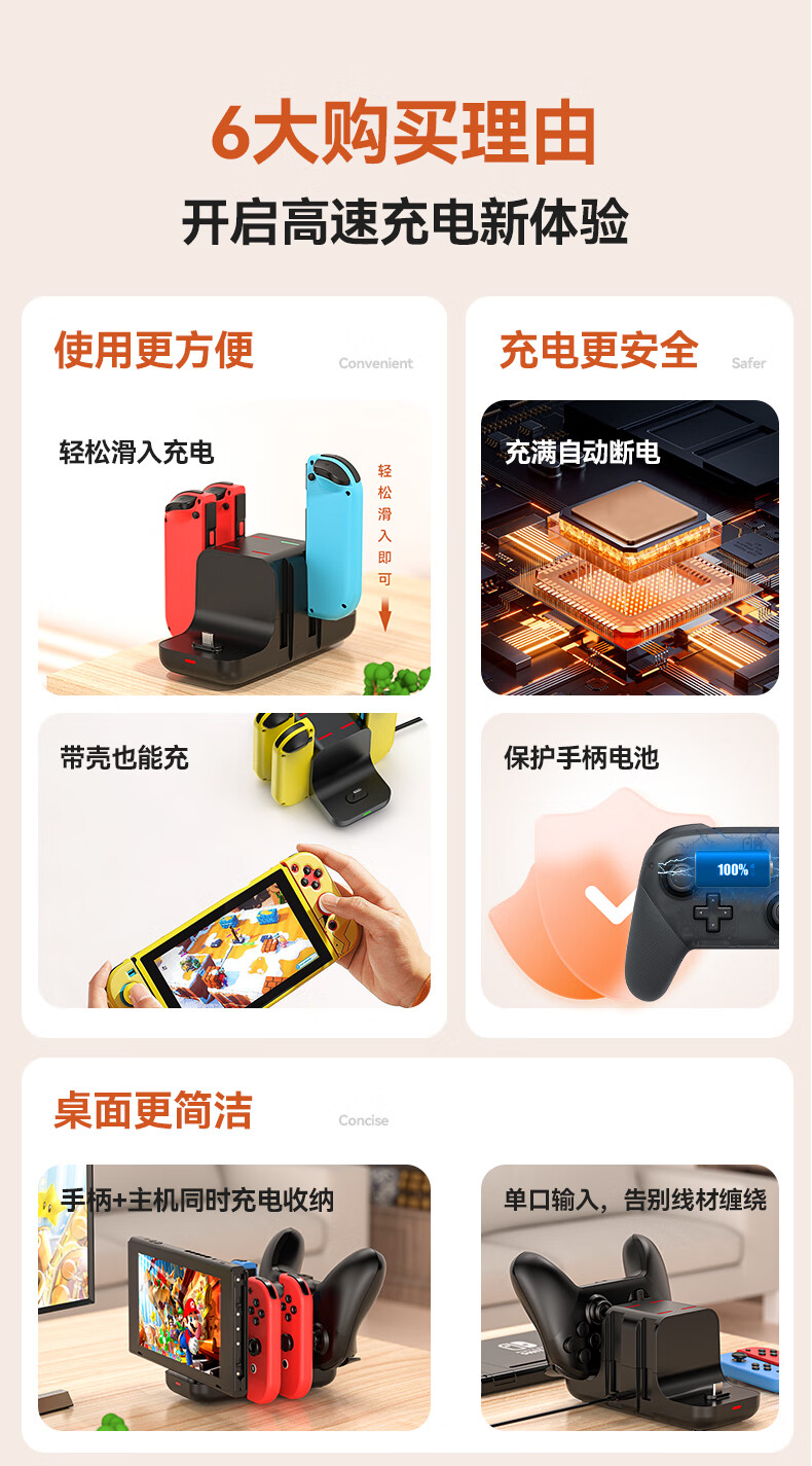 新得利Switch手柄充电座Joycon充电器NS底座Oled游戏机支架Lite座充Pro游戏手柄周边配件 Switch手柄充电座【6合一】