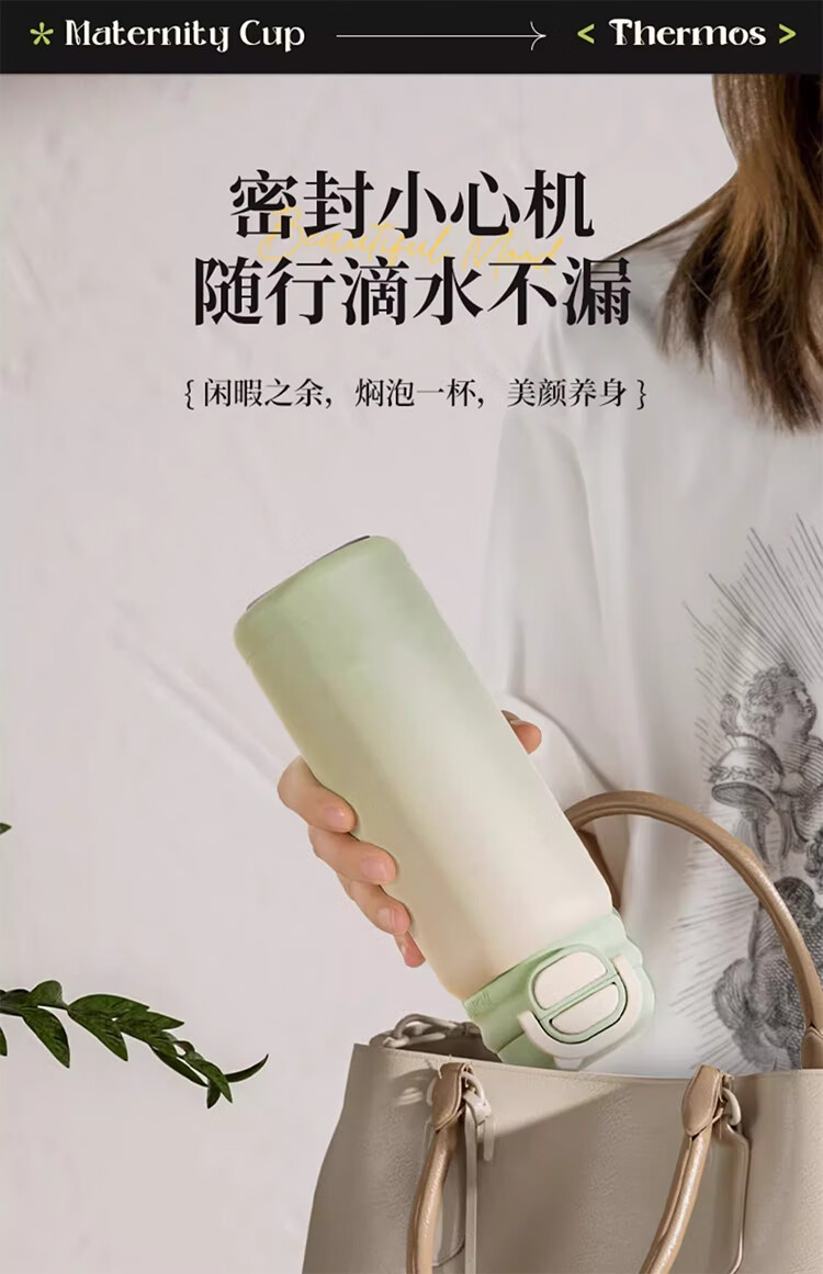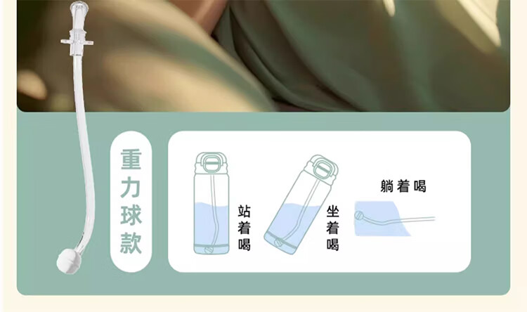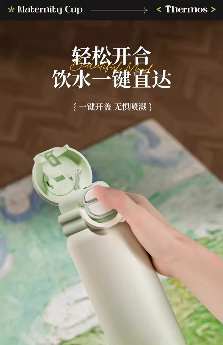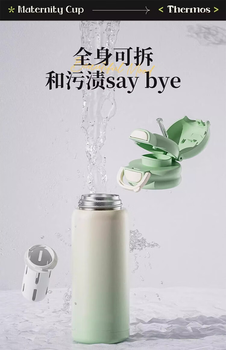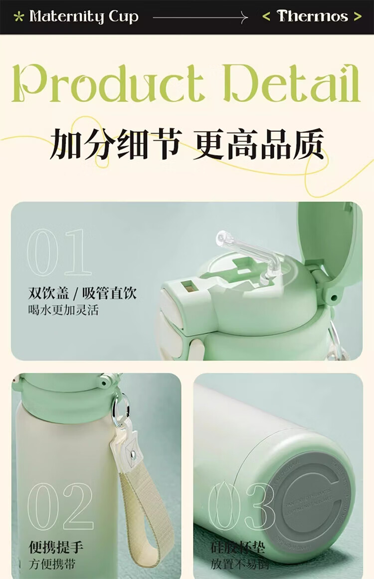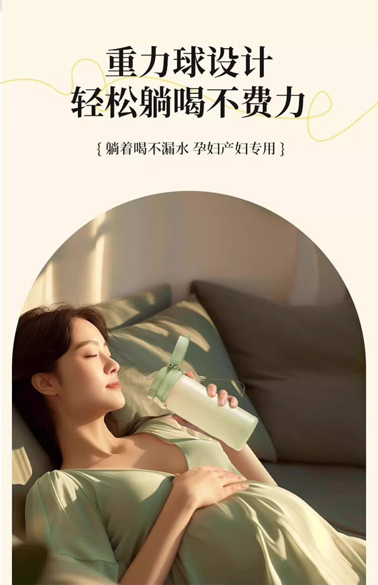 筏芯德国双饮孕妇保温杯产妇专用吸管杯子带重力球躺着喝水女士高颜值 青青糯糯500ml【一杯双饮+抗菌316内胆】