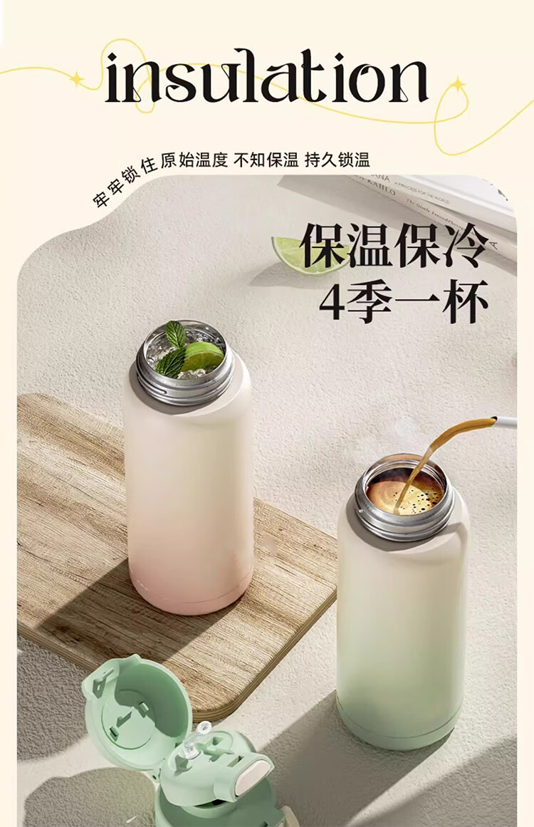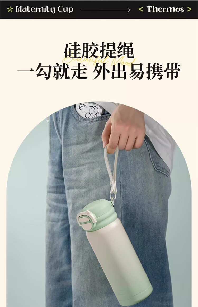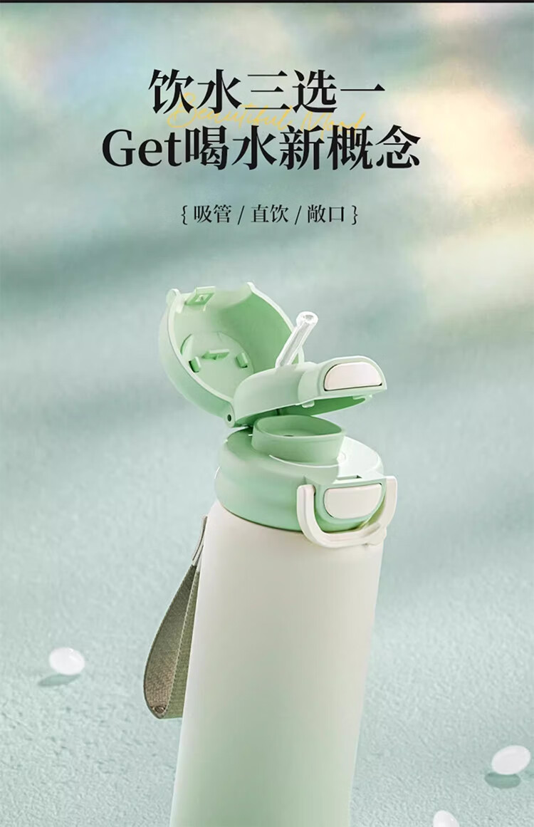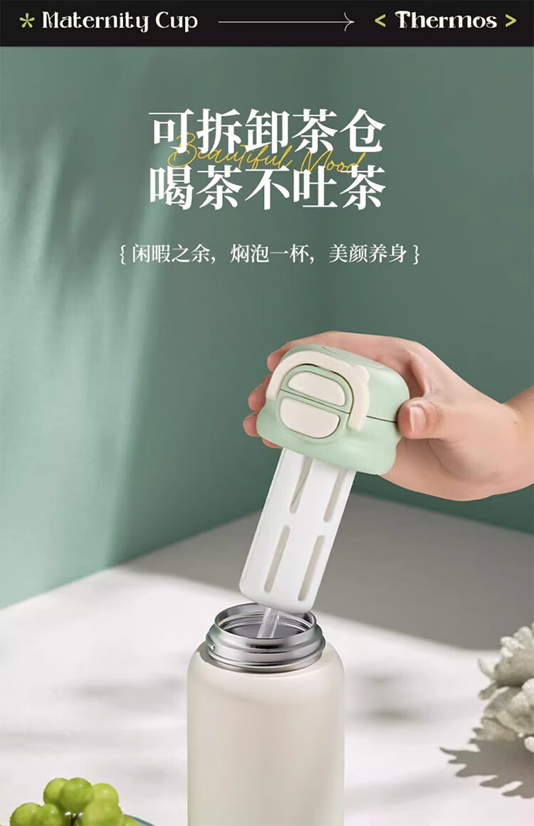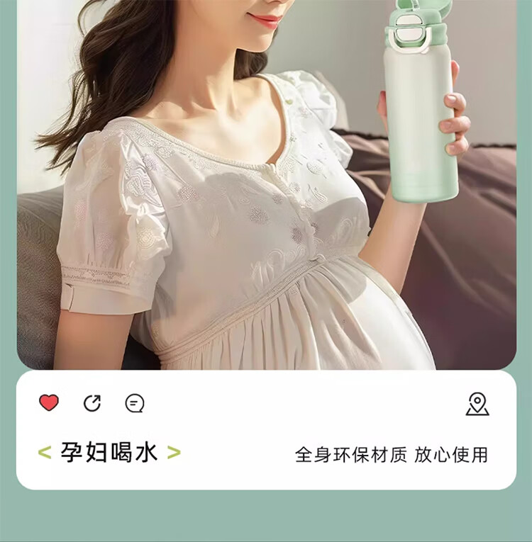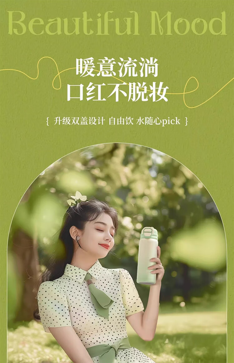 筏芯德国双饮孕妇保温杯产妇专用吸管杯子带重力球躺着喝水女士高颜值 青青糯糯500ml【一杯双饮+抗菌316内胆】