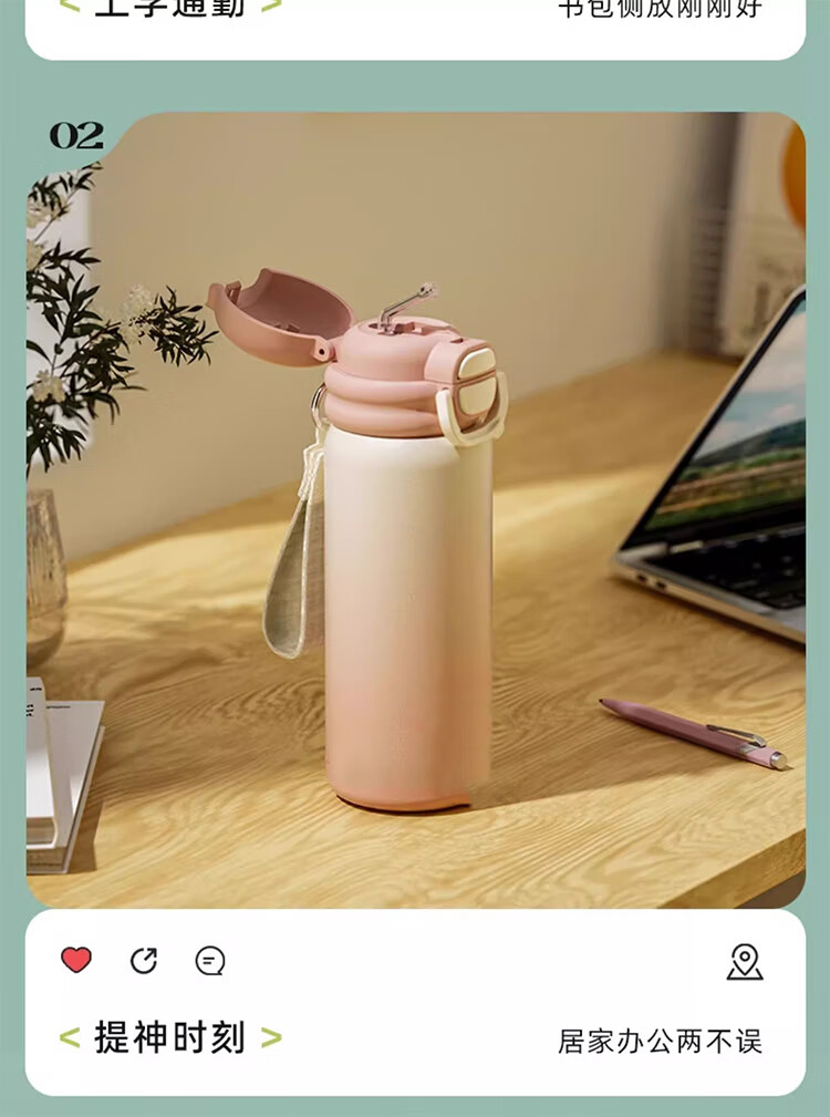 富光保温杯大容量水杯女2025新款高颜值不锈钢户外便携水壶保冷杯子 温柔粉1000ML-316L不锈钢内胆