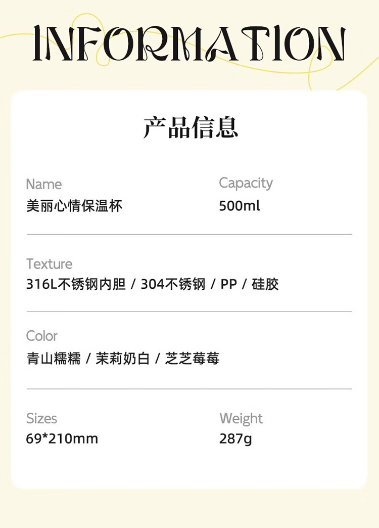款卡通动物浮球杯316不锈钢保温吸管杯 奶油小熊--黄色 600ml