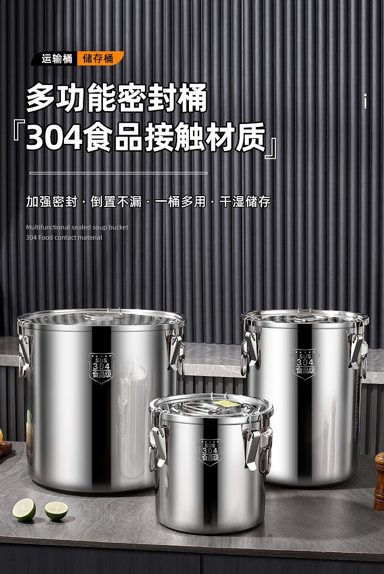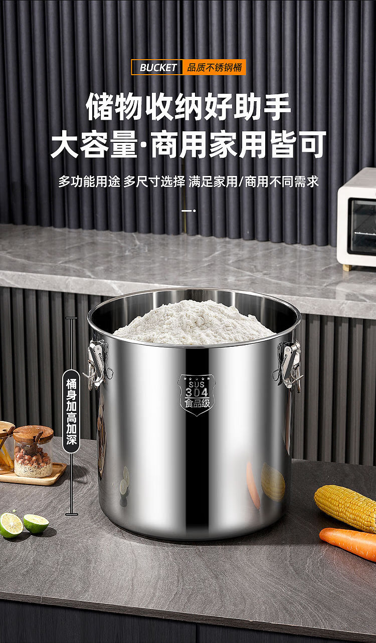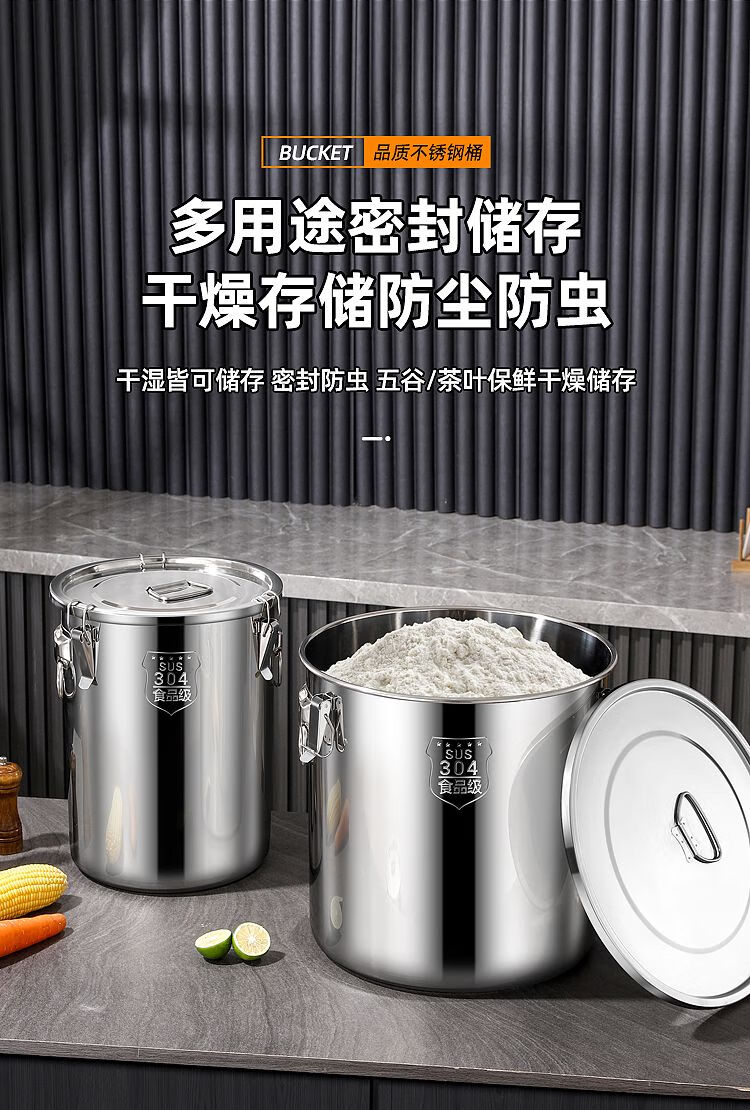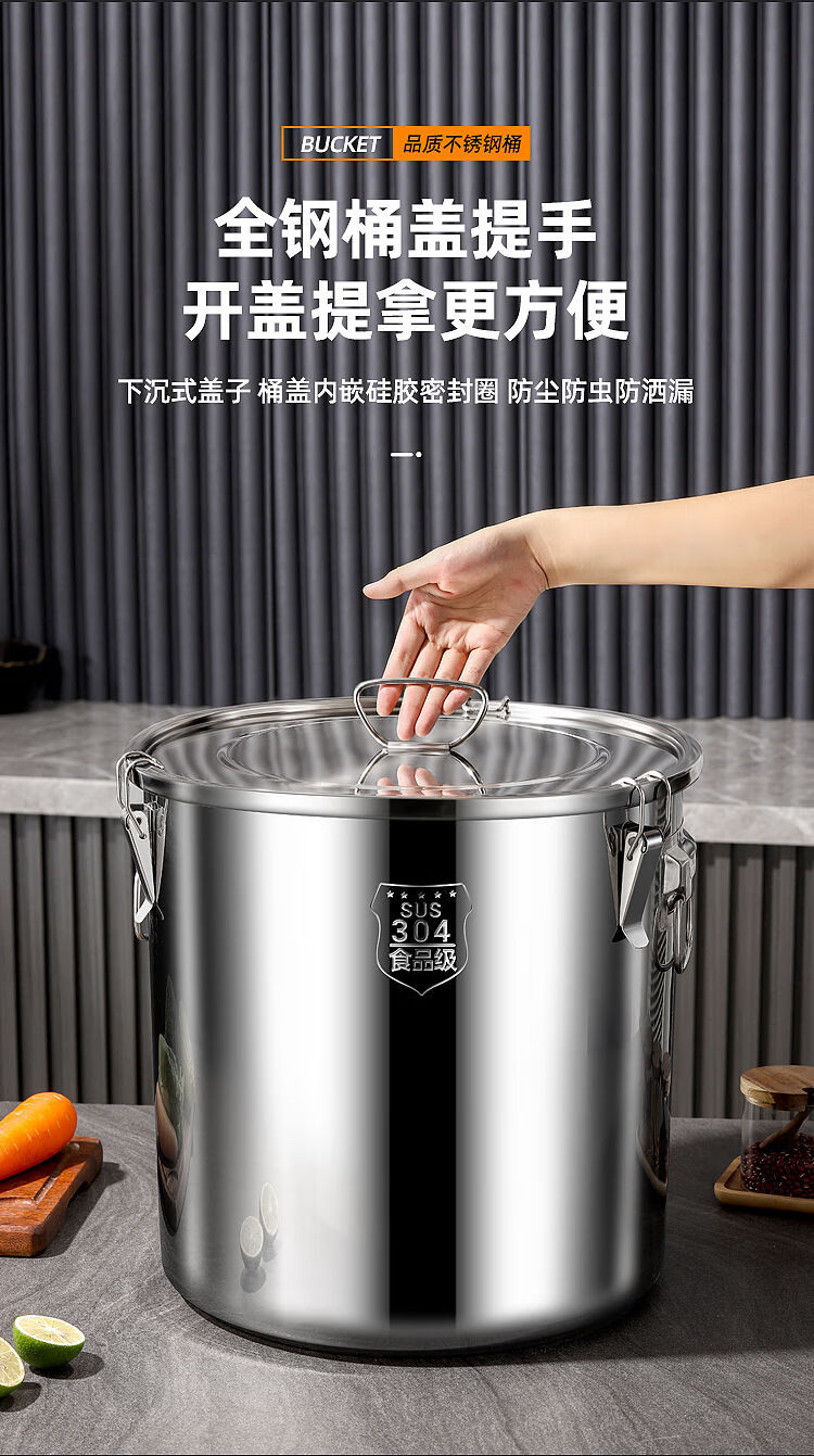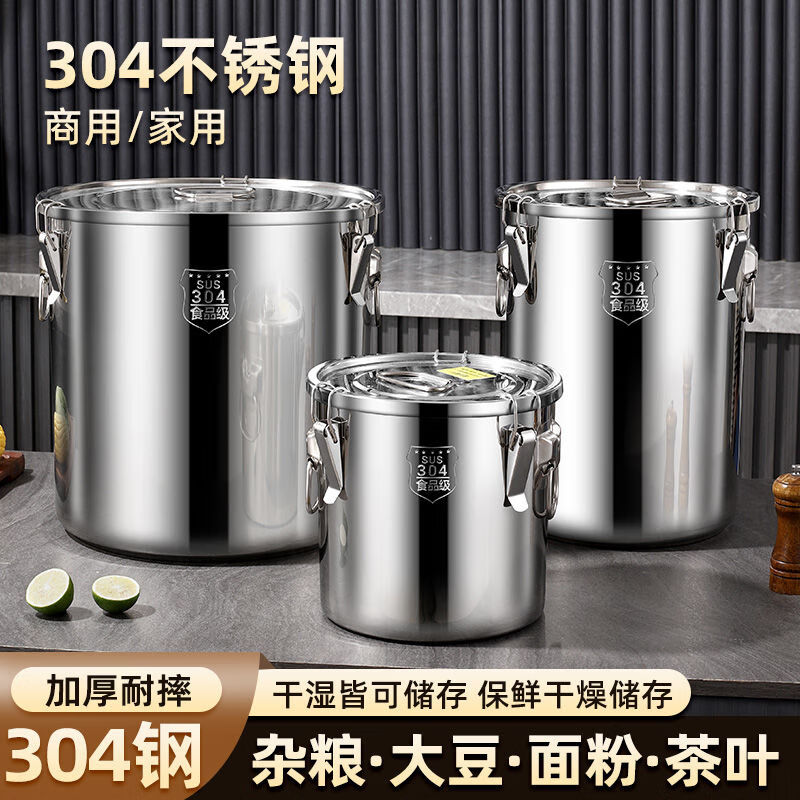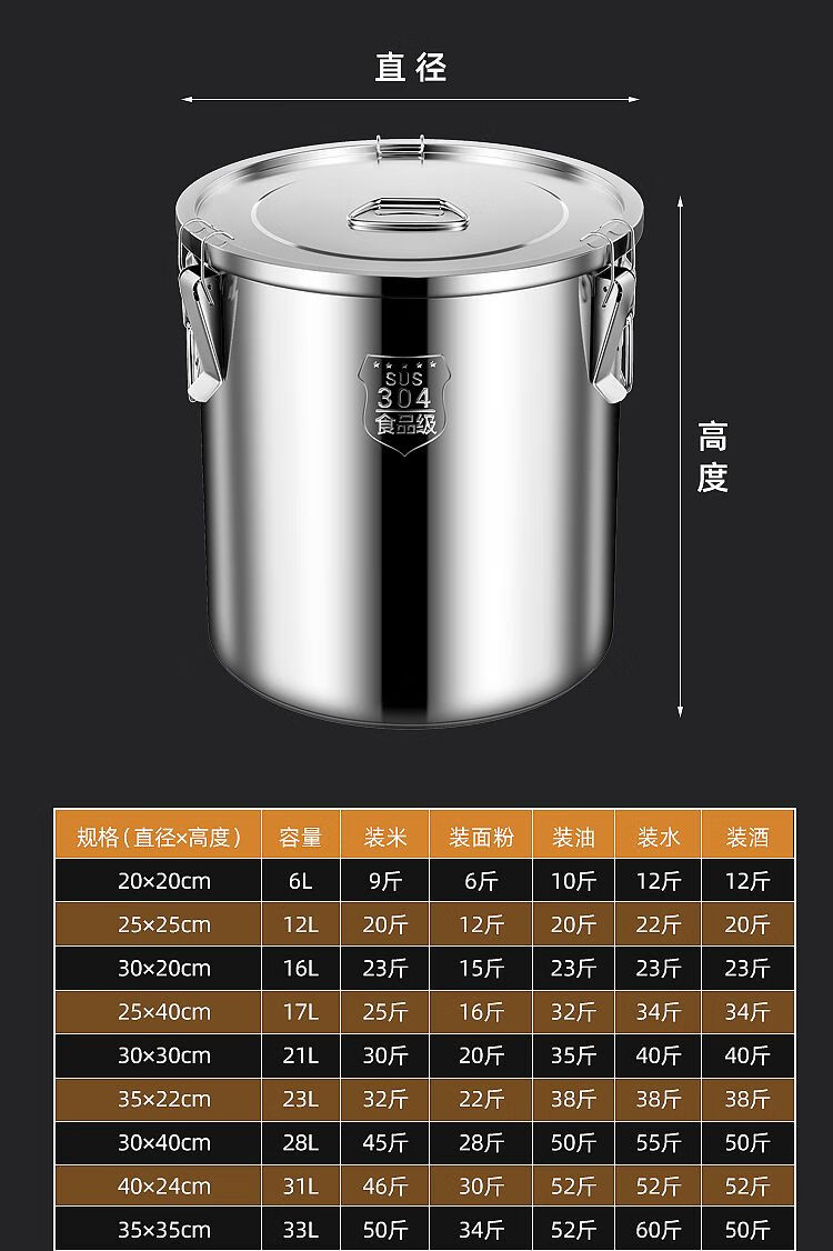 咏夏特厚304不锈钢密封桶家用食品级装米桶防虫防潮面桶米缸油桶加厚 . 28升(30*40)装46斤油42斤米