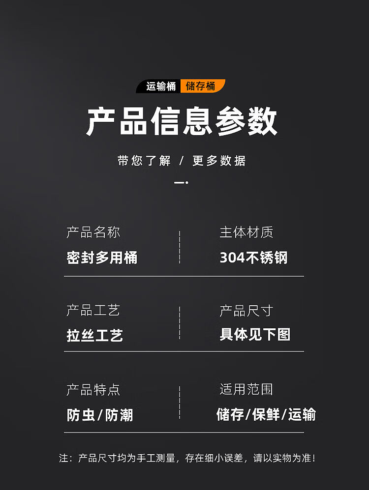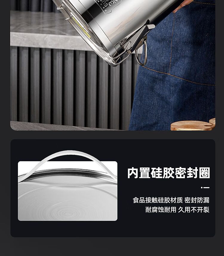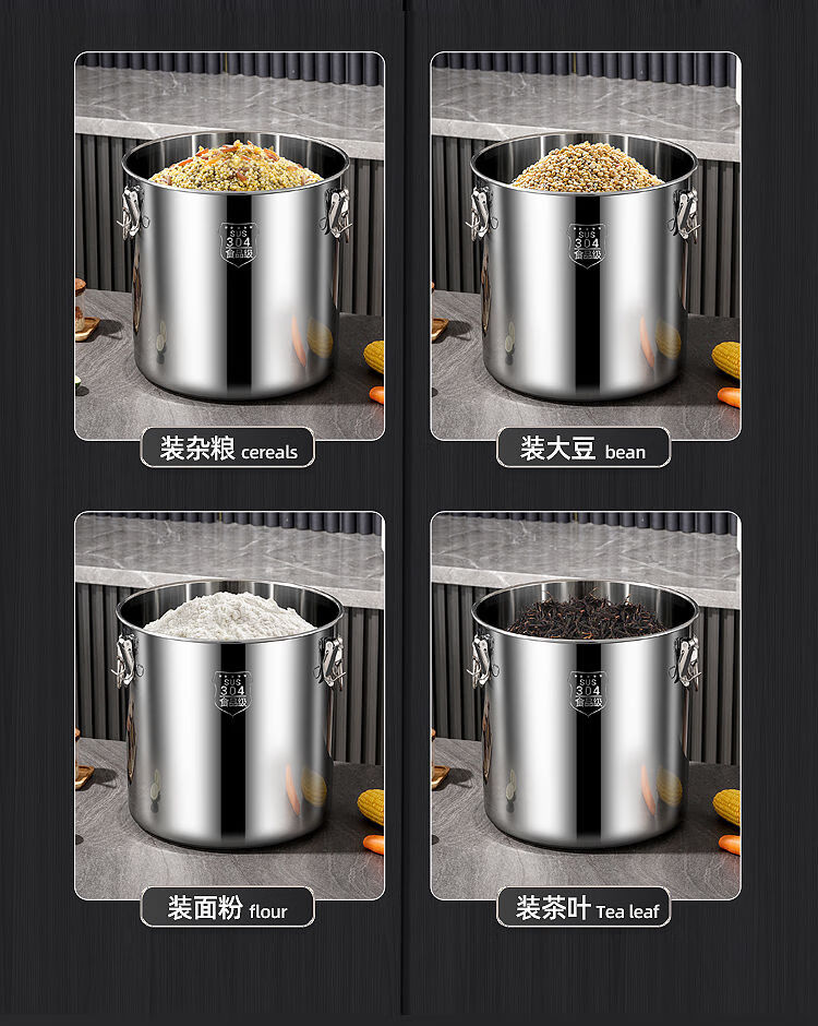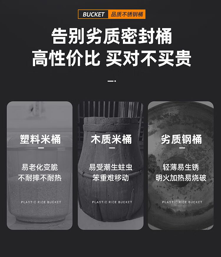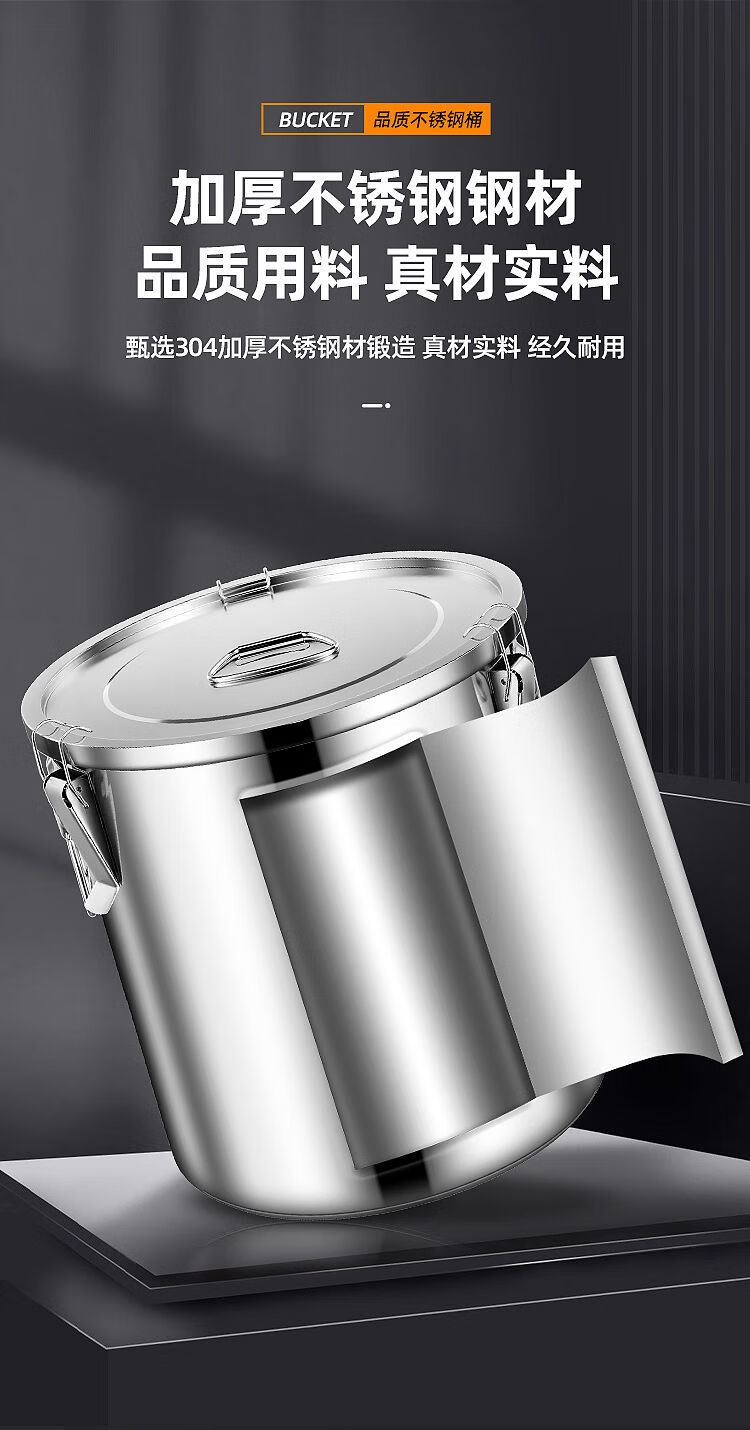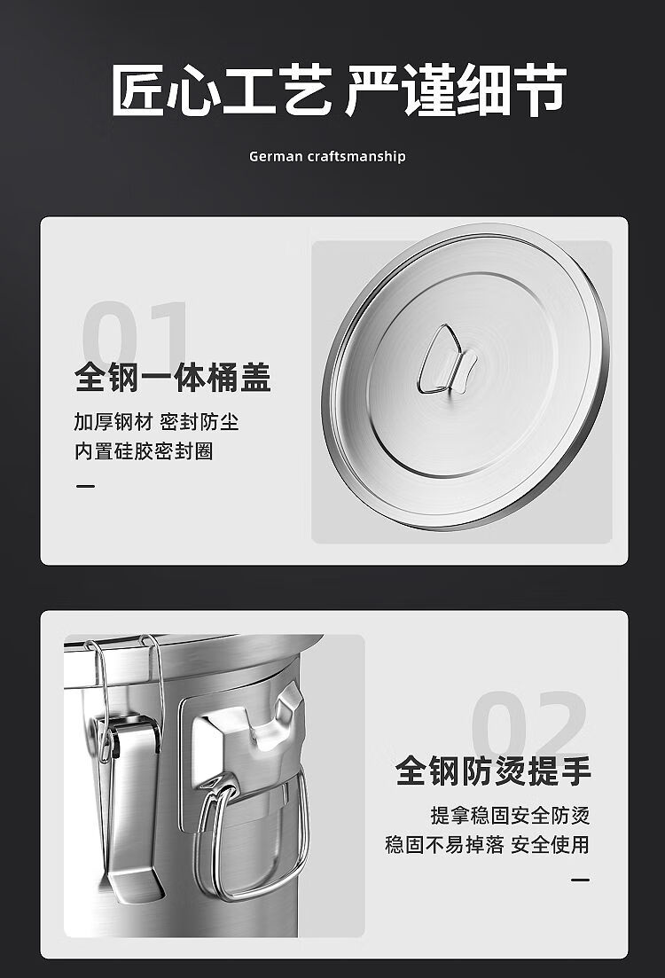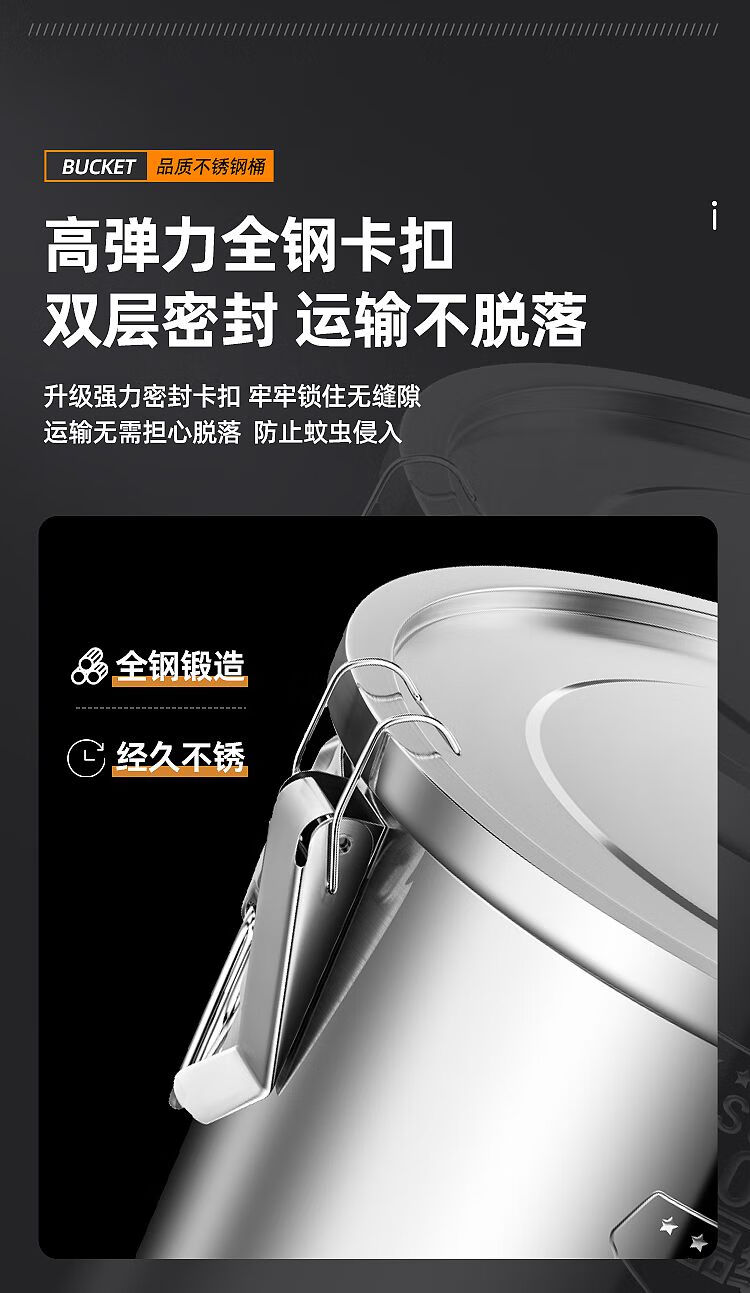 咏夏特厚304不锈钢密封桶家用食品级装米桶防虫防潮面桶米缸油桶加厚 . 28升(30*40)装46斤油42斤米
