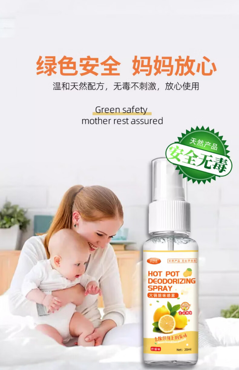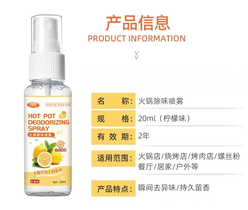 DEATKN德国柠檬水喷雾火锅除味衣物空气清新剂烧烤店除油烟味去汗味神器 10瓶装_柠檬味 20ml