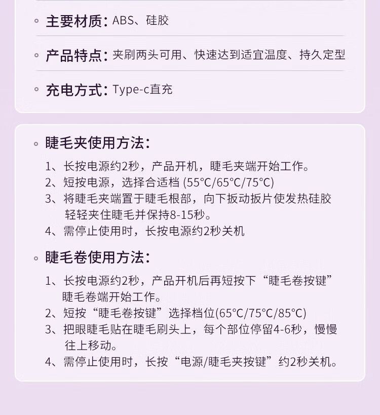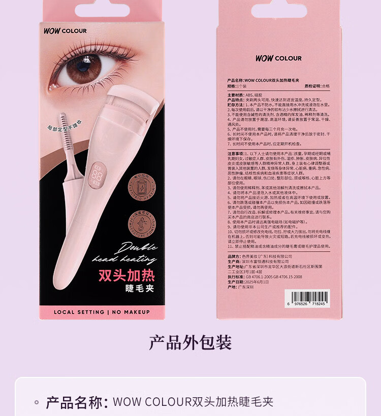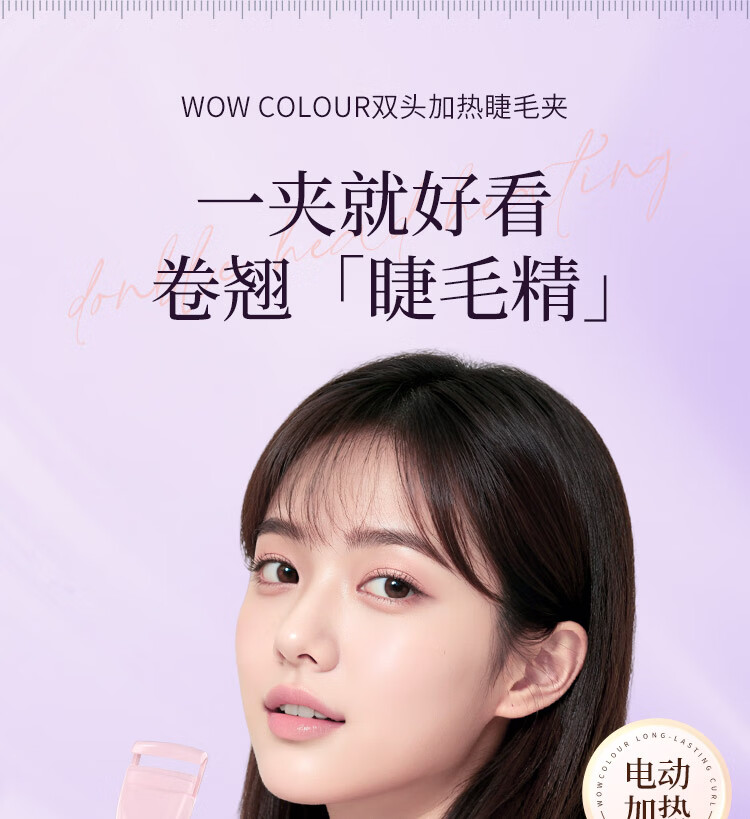 WOWCOLOUR电热睫毛夹 眼睫毛卷翘器加热烫卷器电动发热 睫毛定型 双头加热睫毛夹 1件