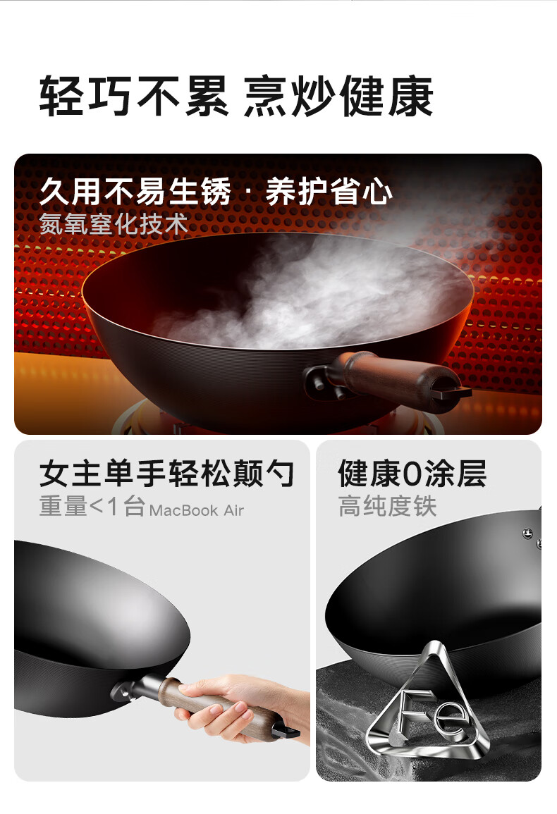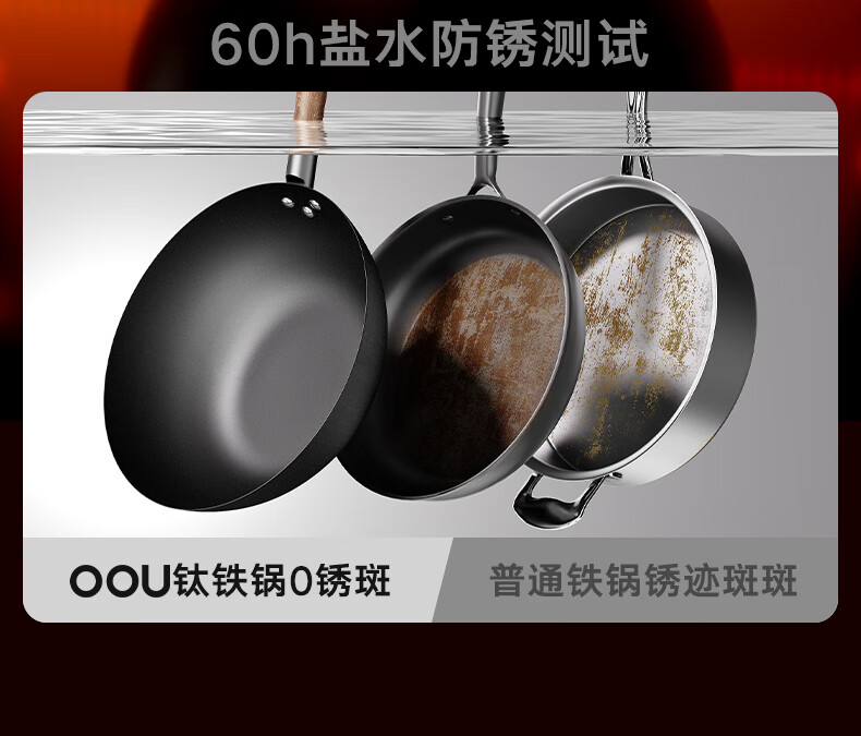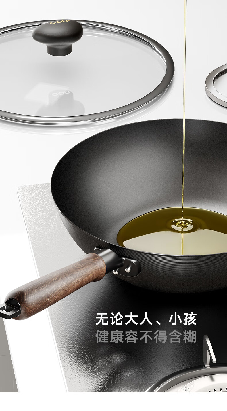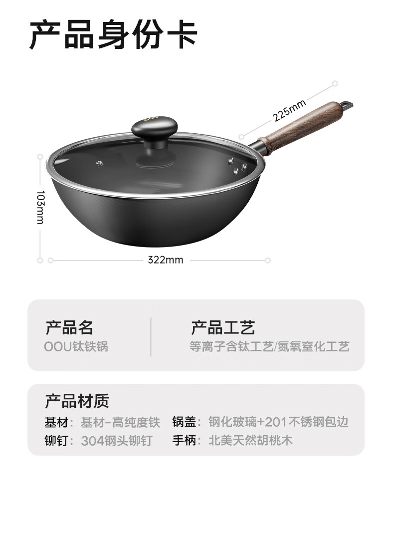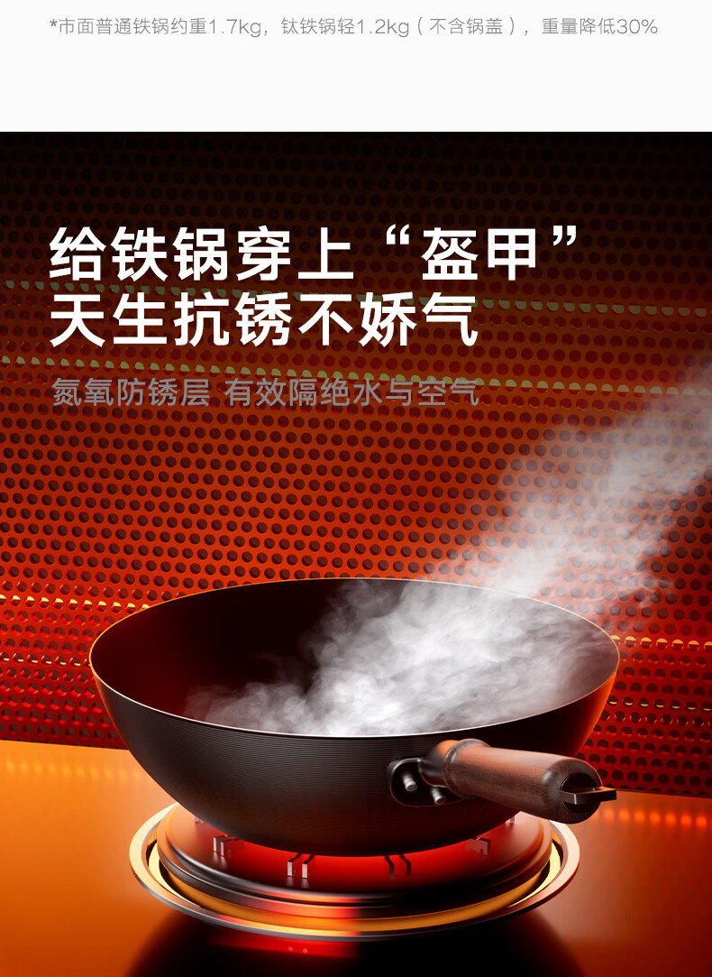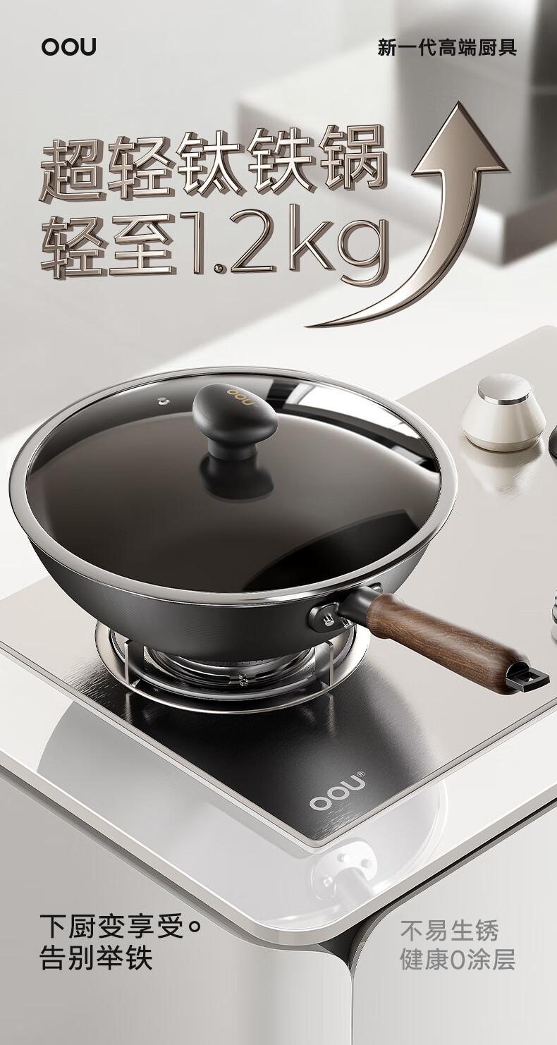 OOU钛铁锅钛锅炒菜锅不粘锅平底锅多功能家用燃气灶电磁炉通用锅具 超轻钛铁锅|轻巧不累手 32.2cm