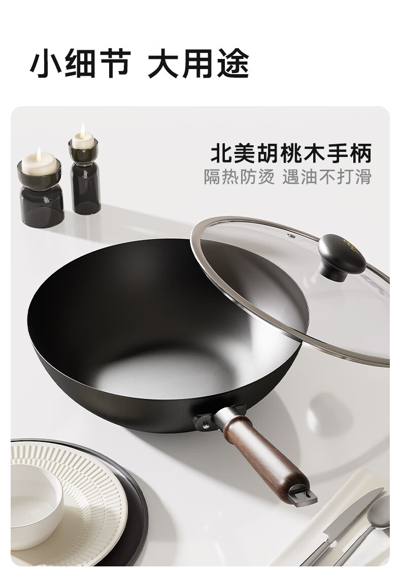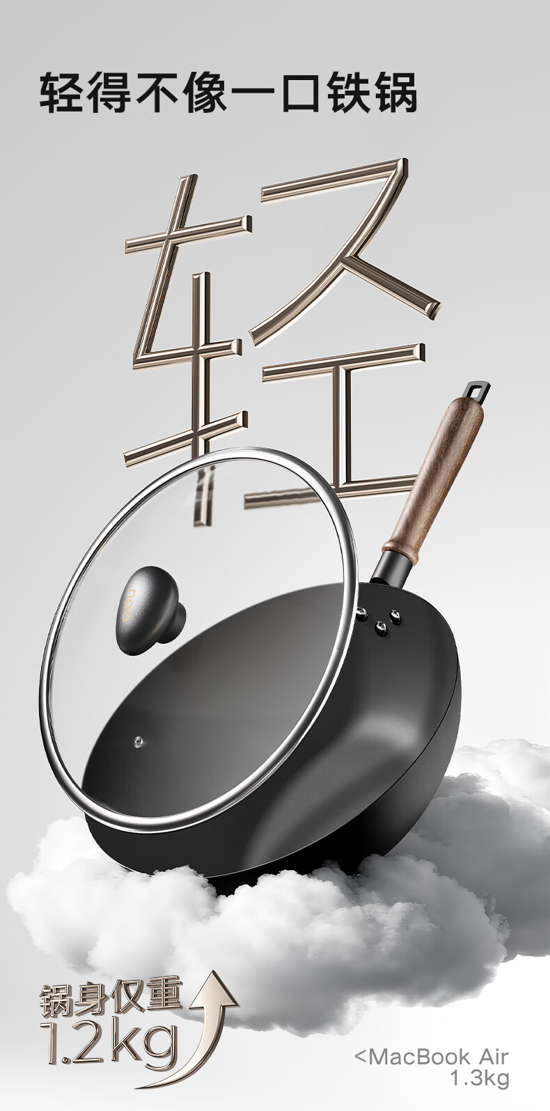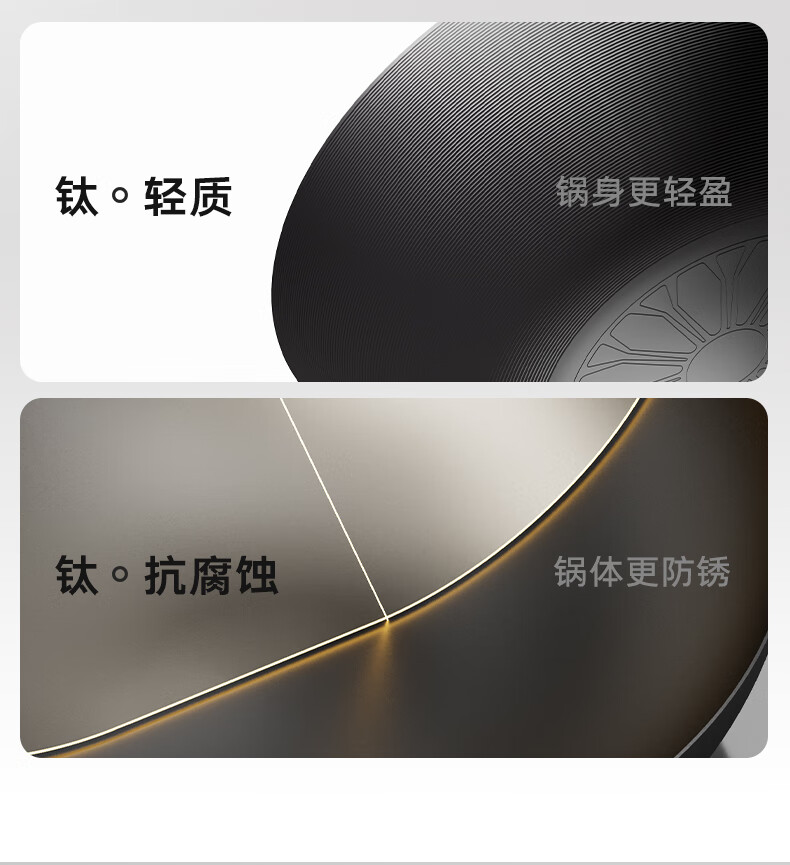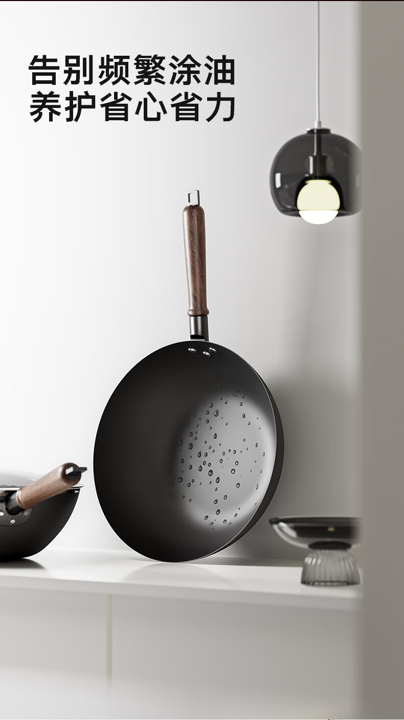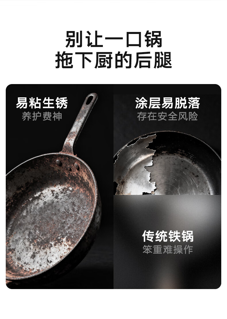 OOU钛铁锅钛锅炒菜锅不粘锅平底锅多功能家用燃气灶电磁炉通用锅具 超轻钛铁锅|轻巧不累手 32.2cm