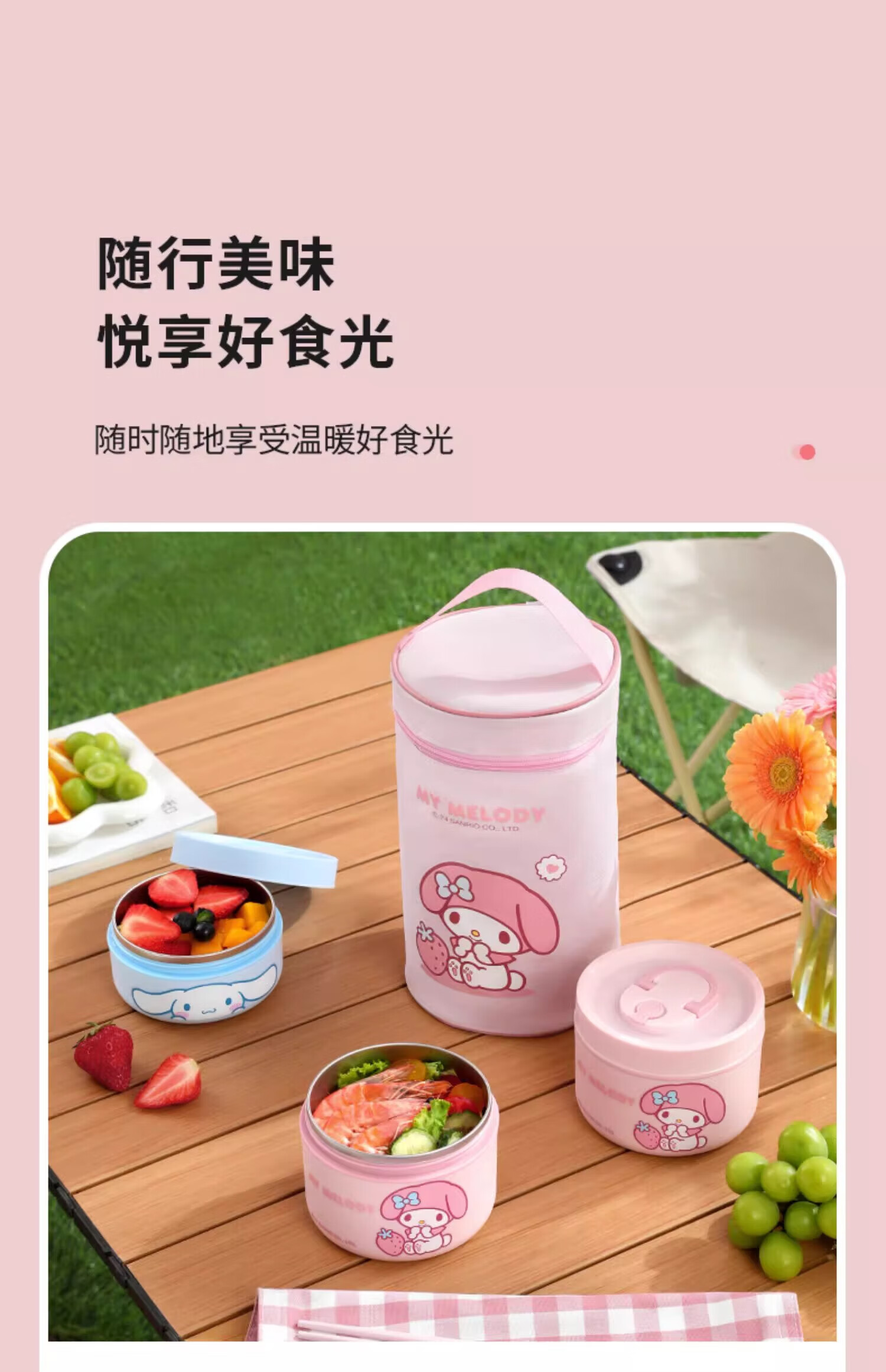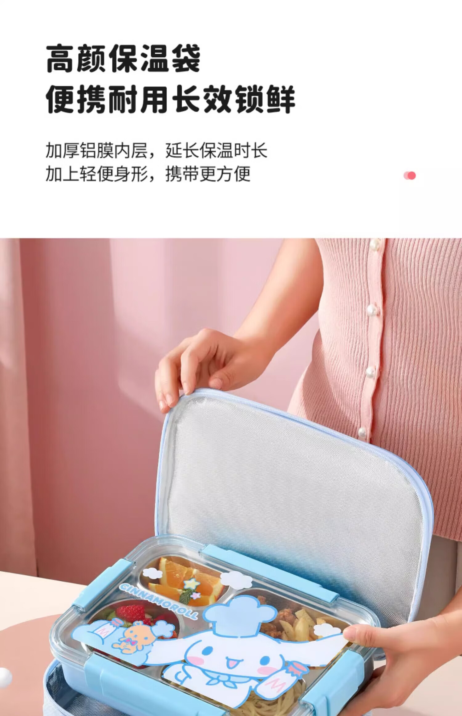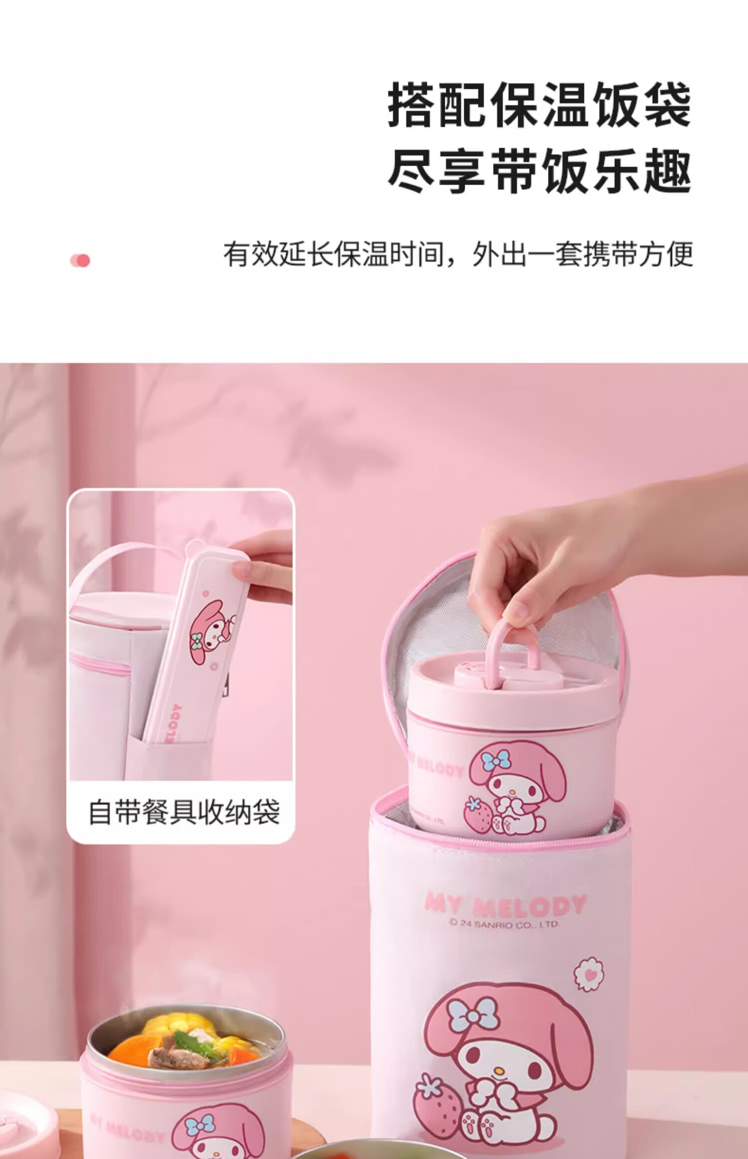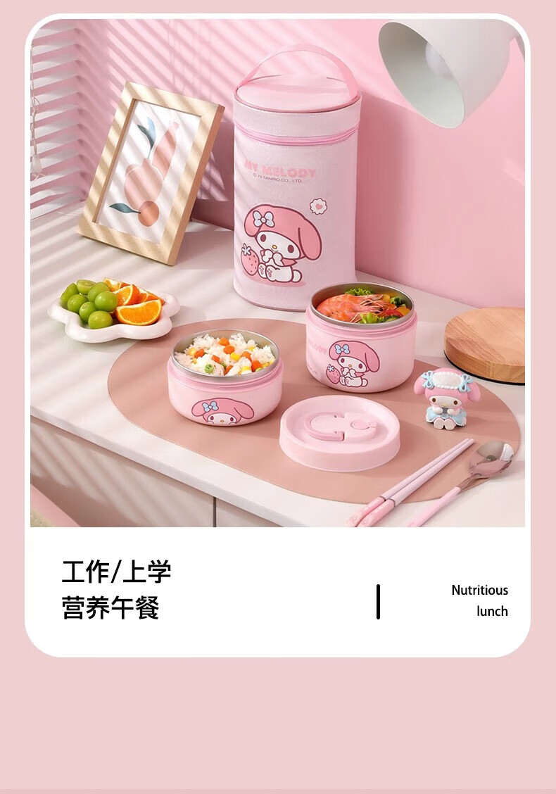 MARSICA满朝佳三丽鸥饭袋便当包保温高颜值小学生专用提饭大容量午餐上班 方形保温饭袋【官方正版美乐蒂】