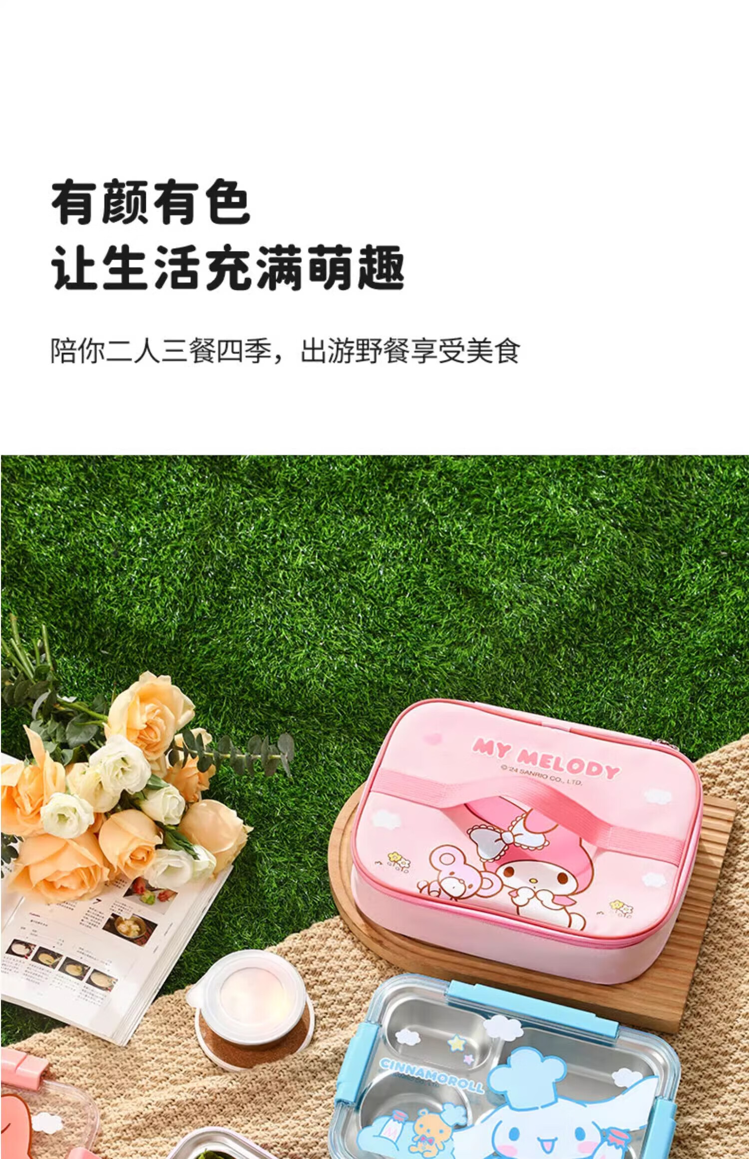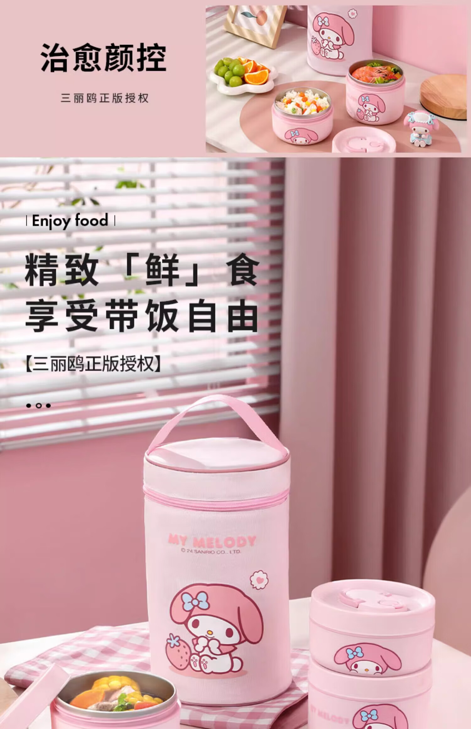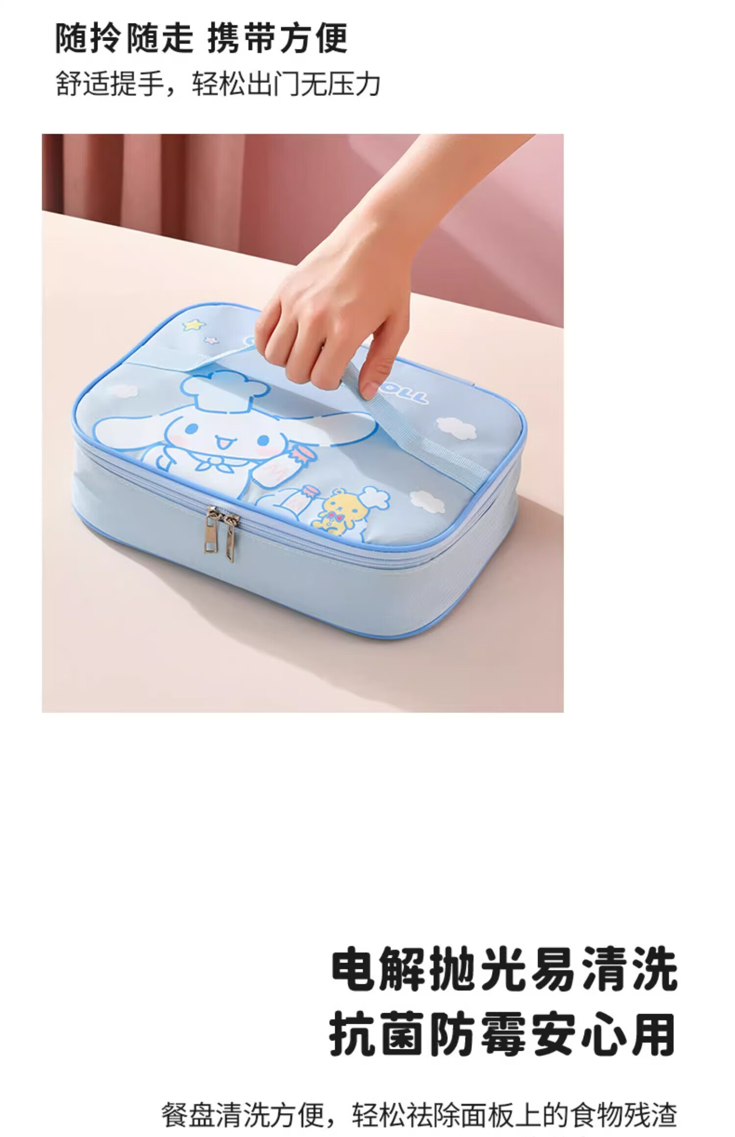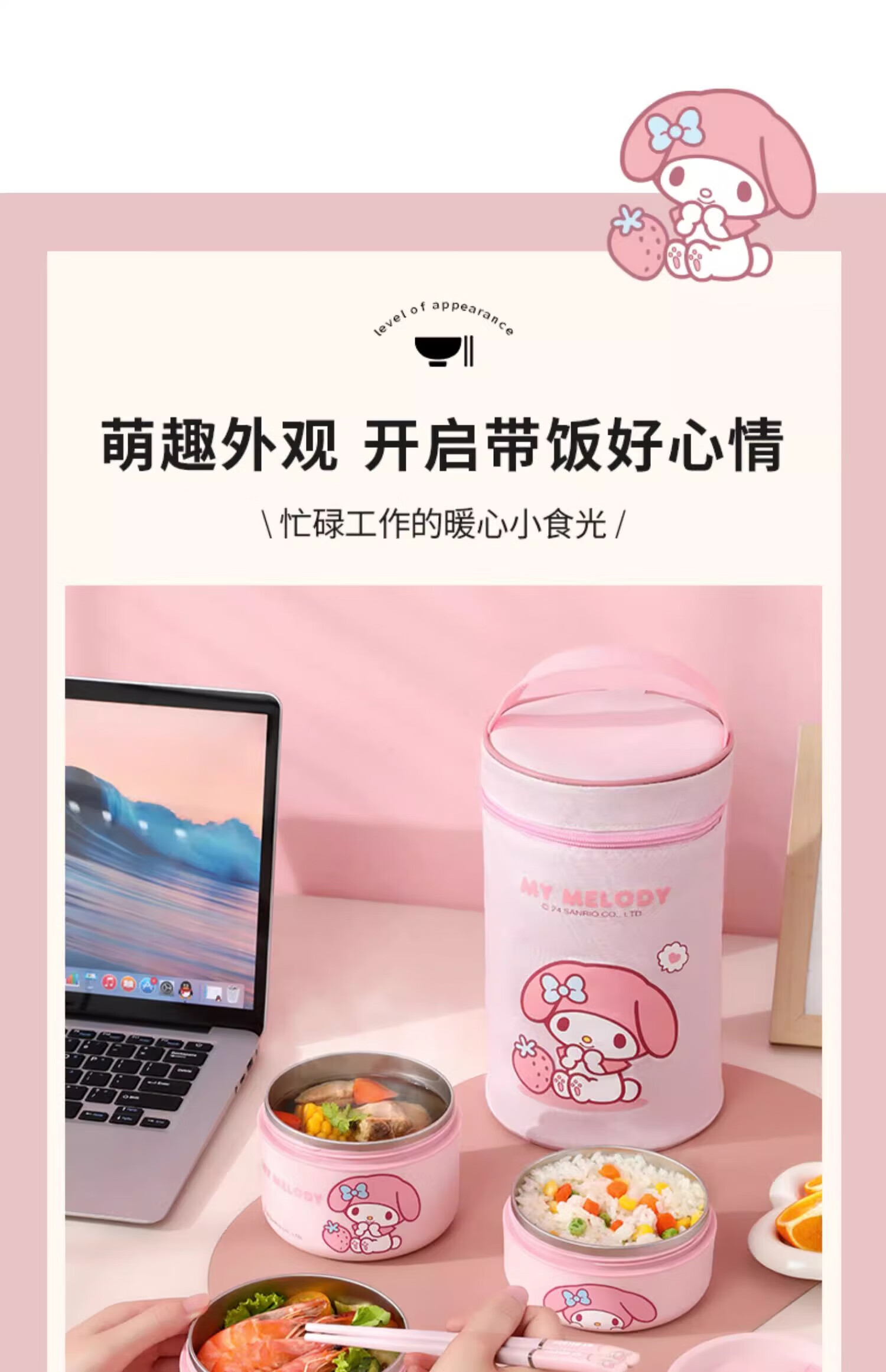 MARSICA满朝佳三丽鸥饭袋便当包保温高颜值小学生专用提饭大容量午餐上班 方形保温饭袋【官方正版美乐蒂】
