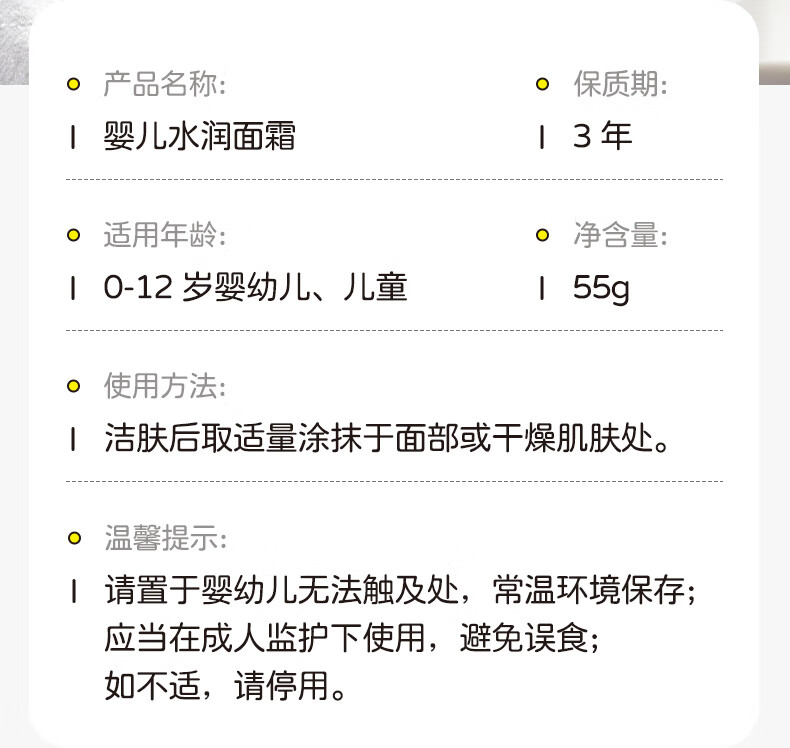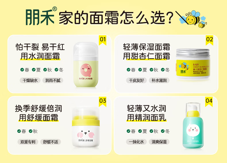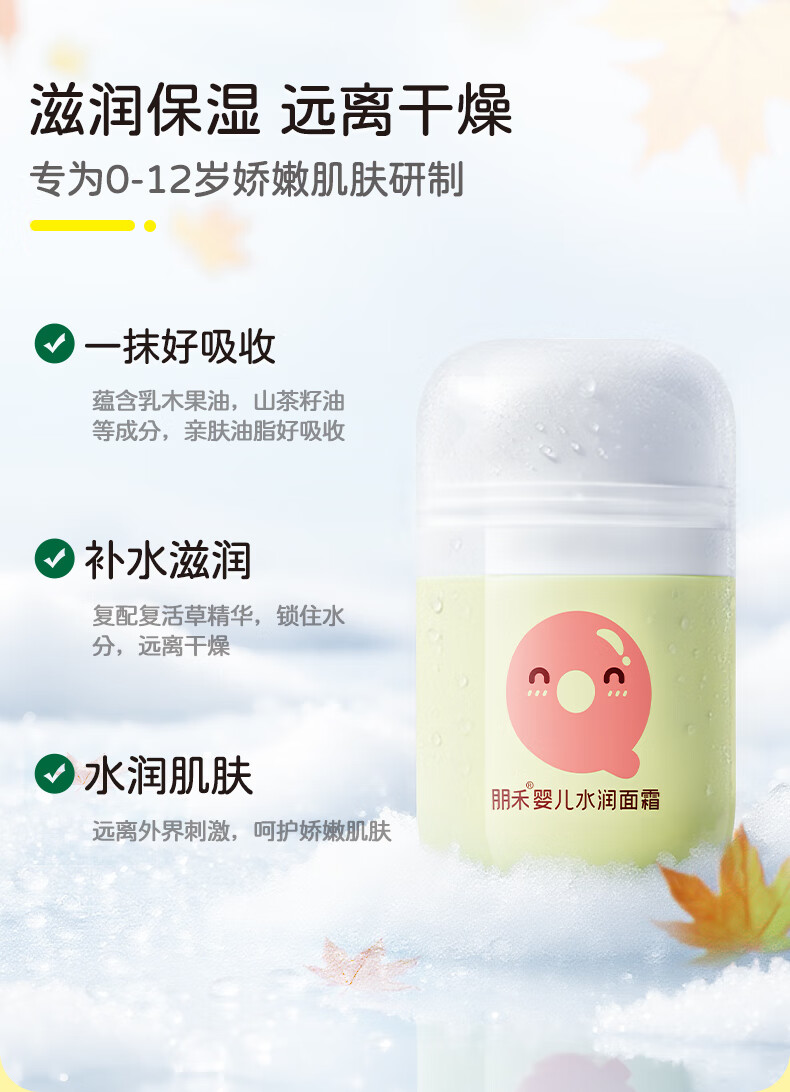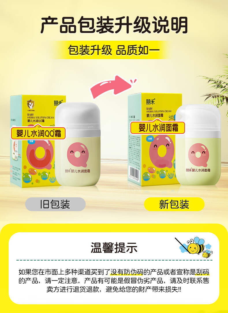 朋禾新生儿水润面霜QQ霜婴儿秋冬季保湿滋润宝宝补水润肤霜儿童面霜 【新生儿可用】水润面霜55g