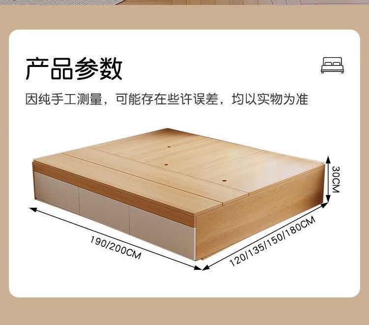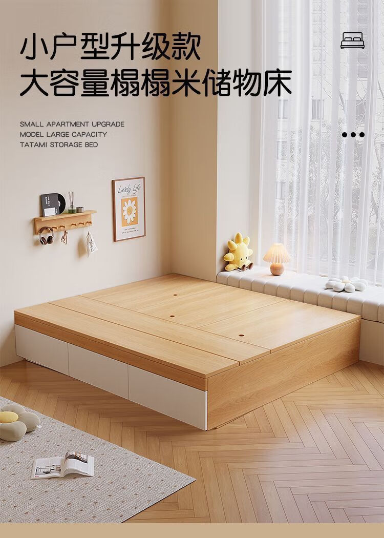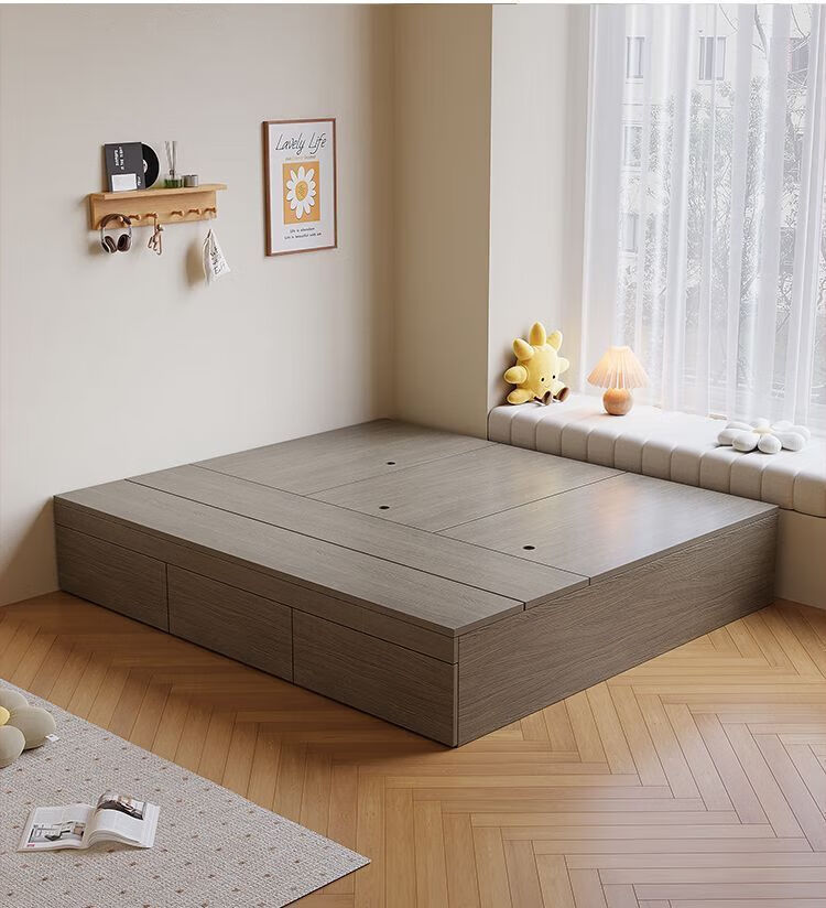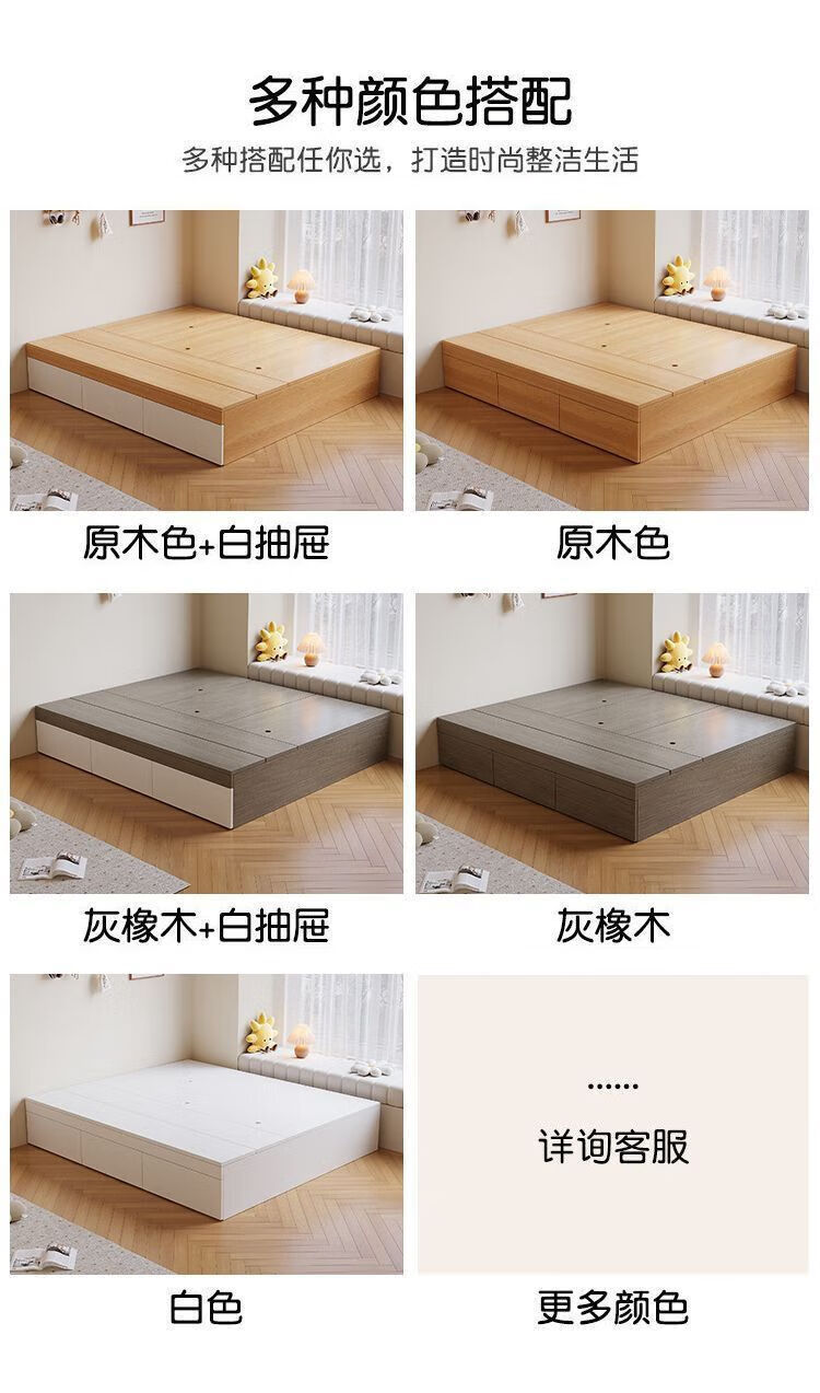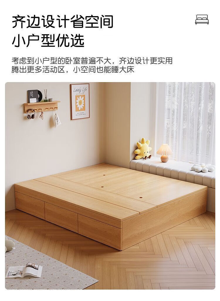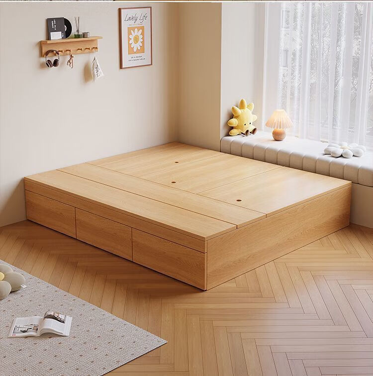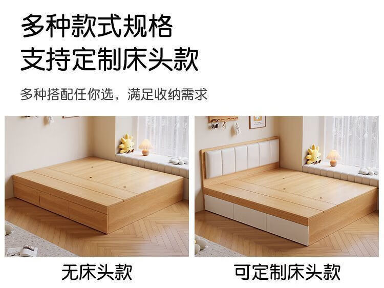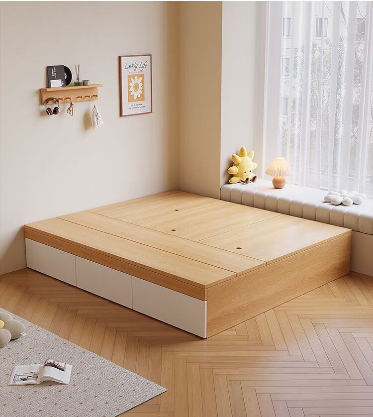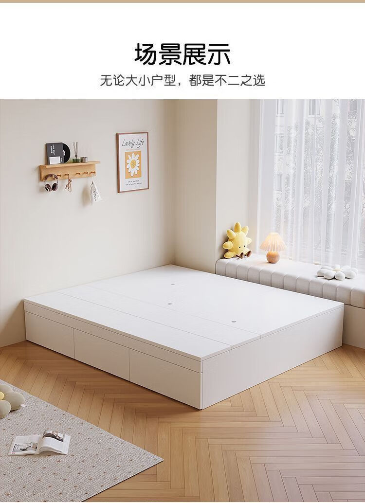 倘然之家实木床现代简约双人床无床头床储物床地台榻榻米单人床柜一体定制 【暖白色】加厚三抽款储物床 1000mm*1900mm