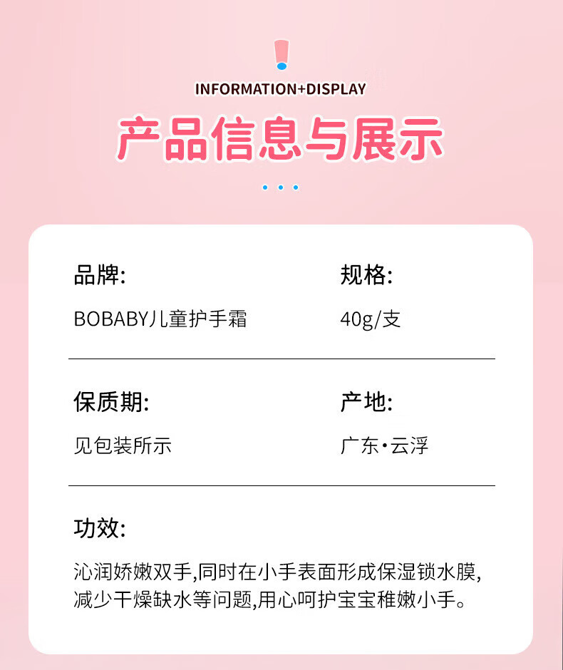 波比娃(BOBABY)儿童护手霜补水保湿防干裂温和秋冬小礼品 Bobaby儿护手霜40g/盒