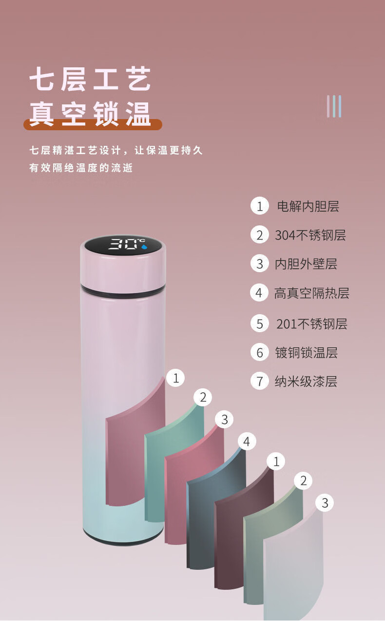 藤和树里保温杯水杯保温杯男款保温杯大容量杯子保温杯男士水杯保温杯 【粉渐绿】500ml