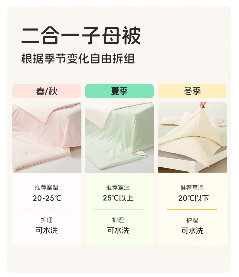 喜临门【MDX】A类控温被子春秋被芯抗菌四季被加厚冬被太空被 子母被(夏凉被+春秋被) 200*230cm