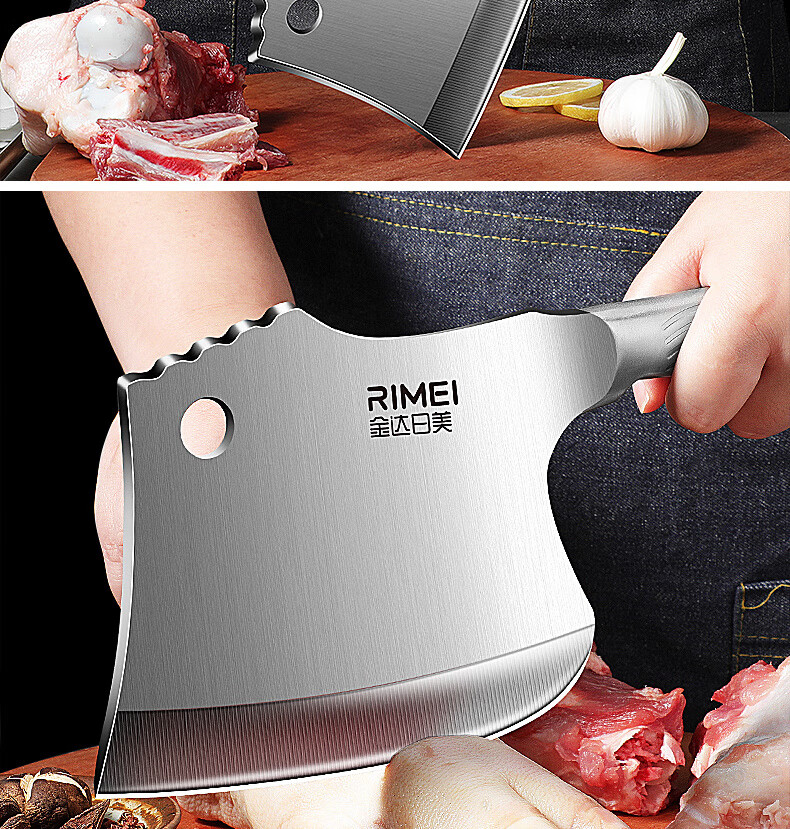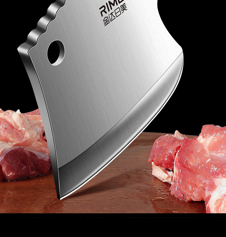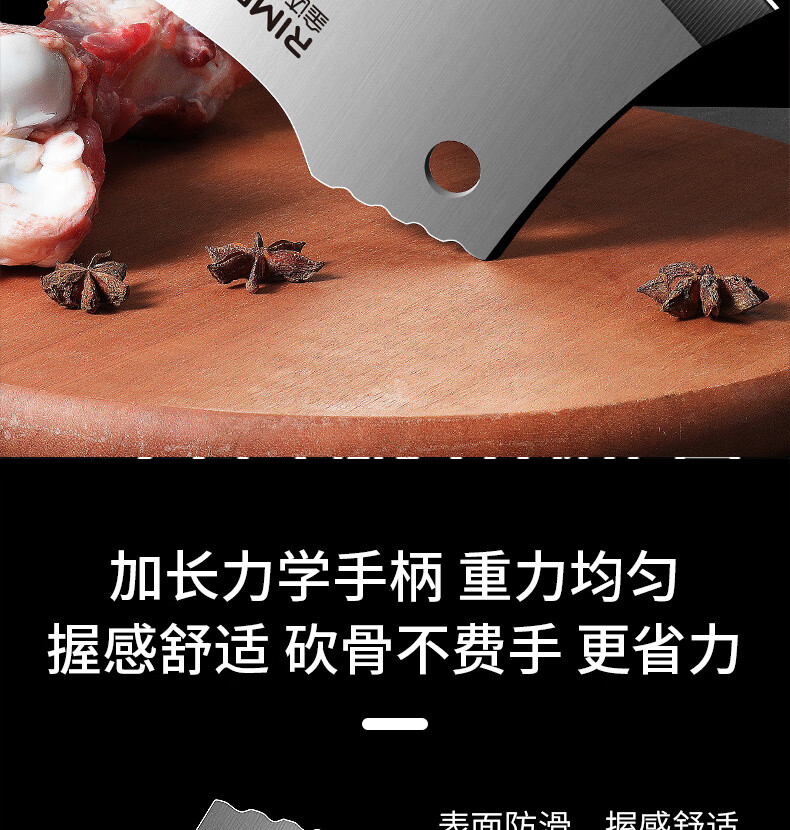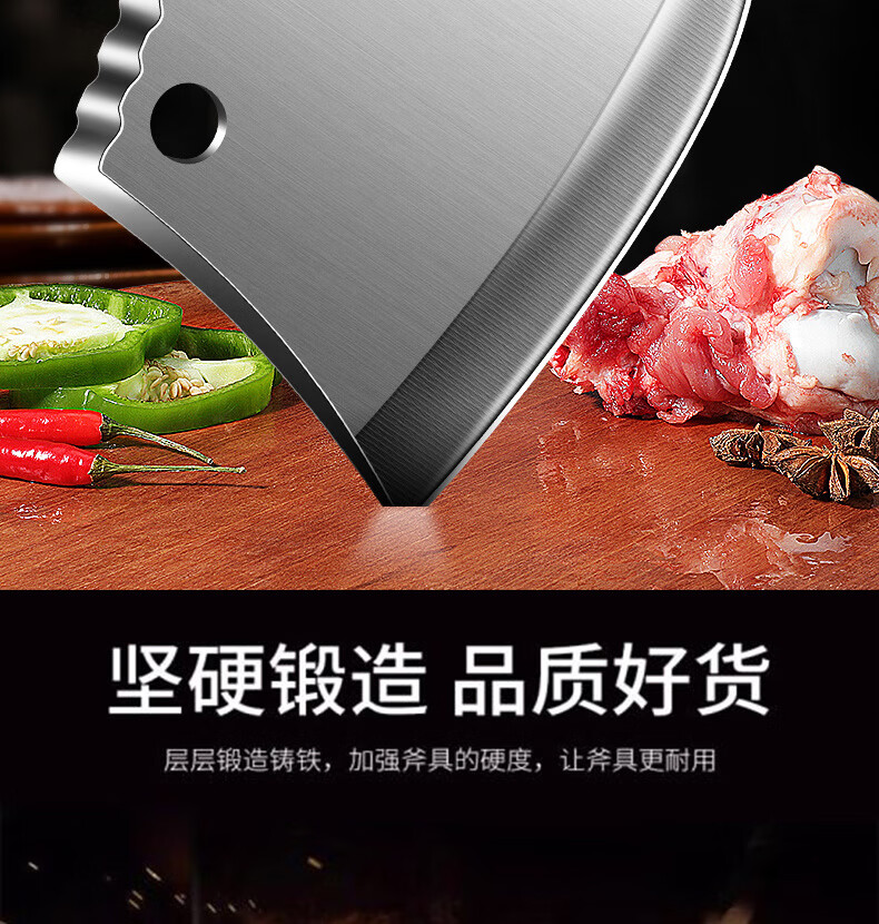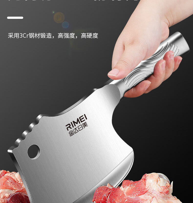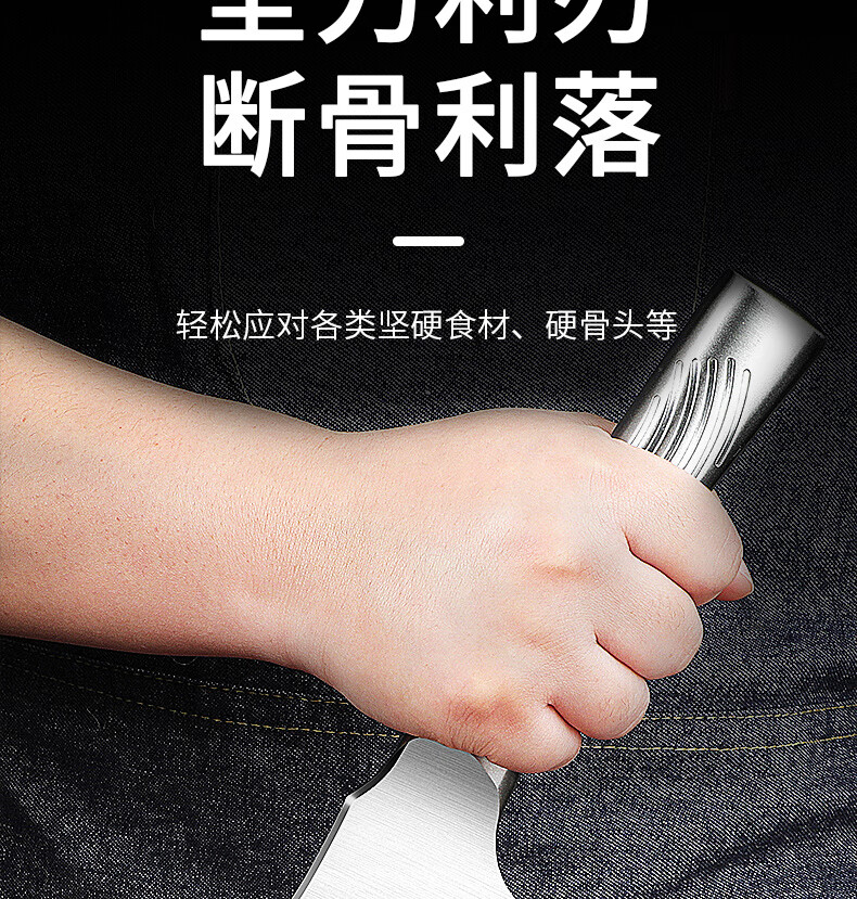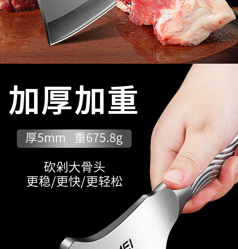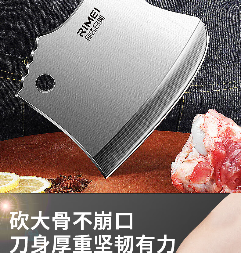 金达日美砍骨刀大骨屠夫专用砍骨头专用刀家用厨房斩骨刀不锈钢加厚砍骨斧 手柄压花全钢砍骨斧
