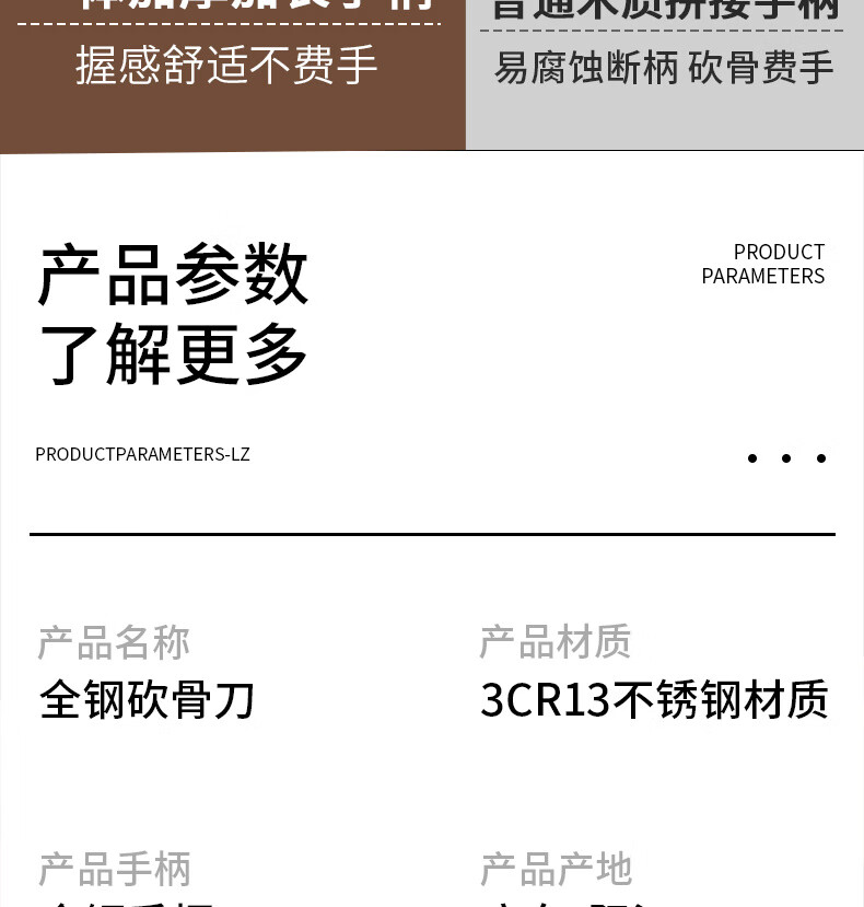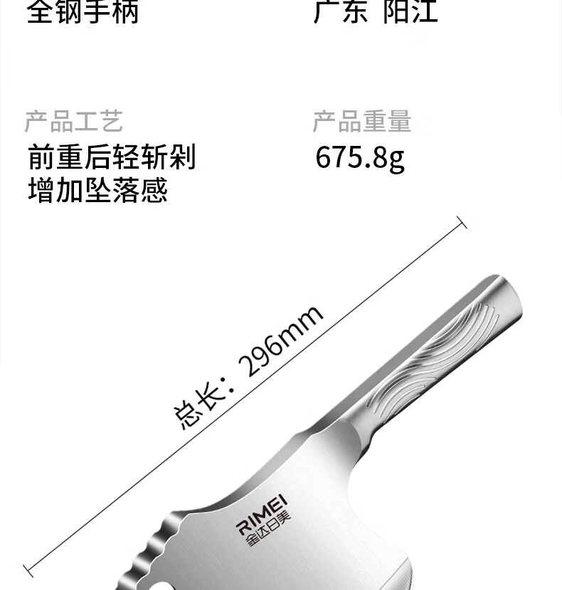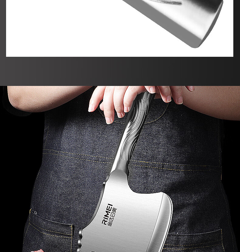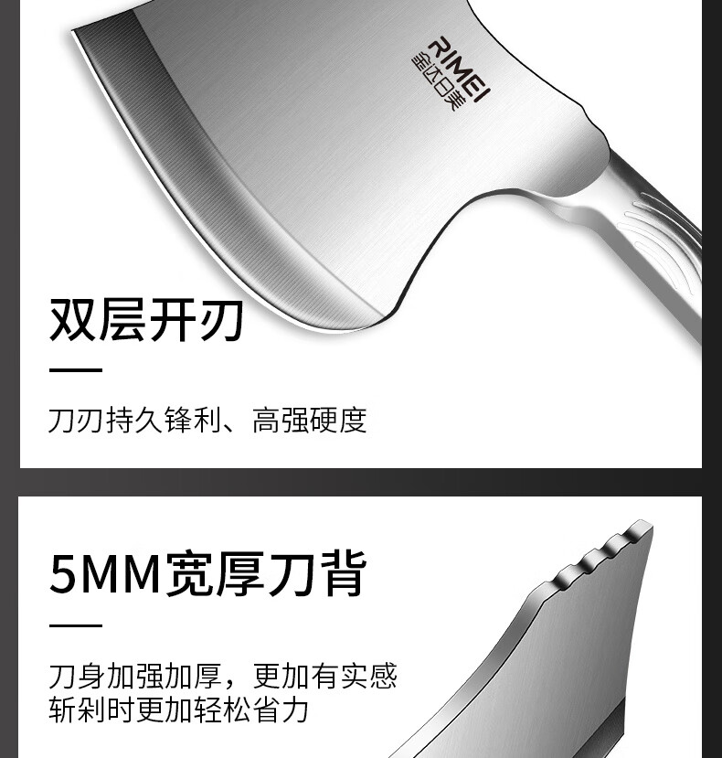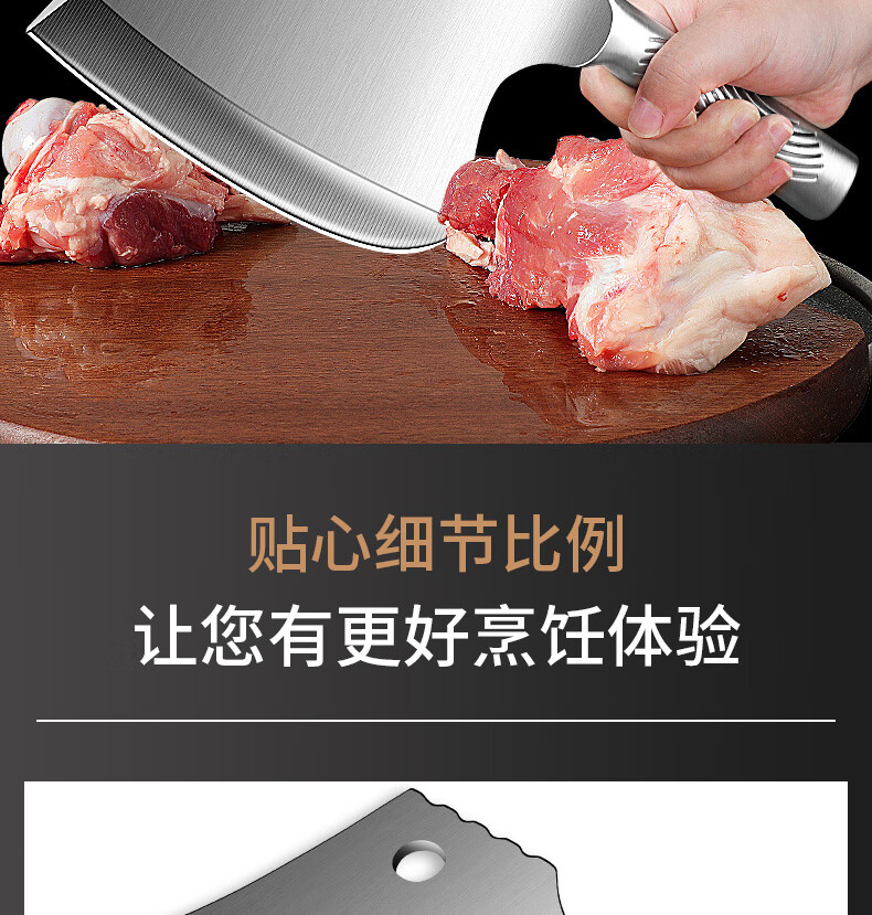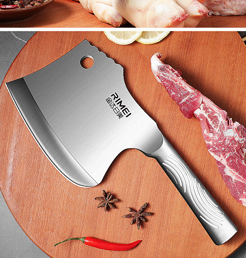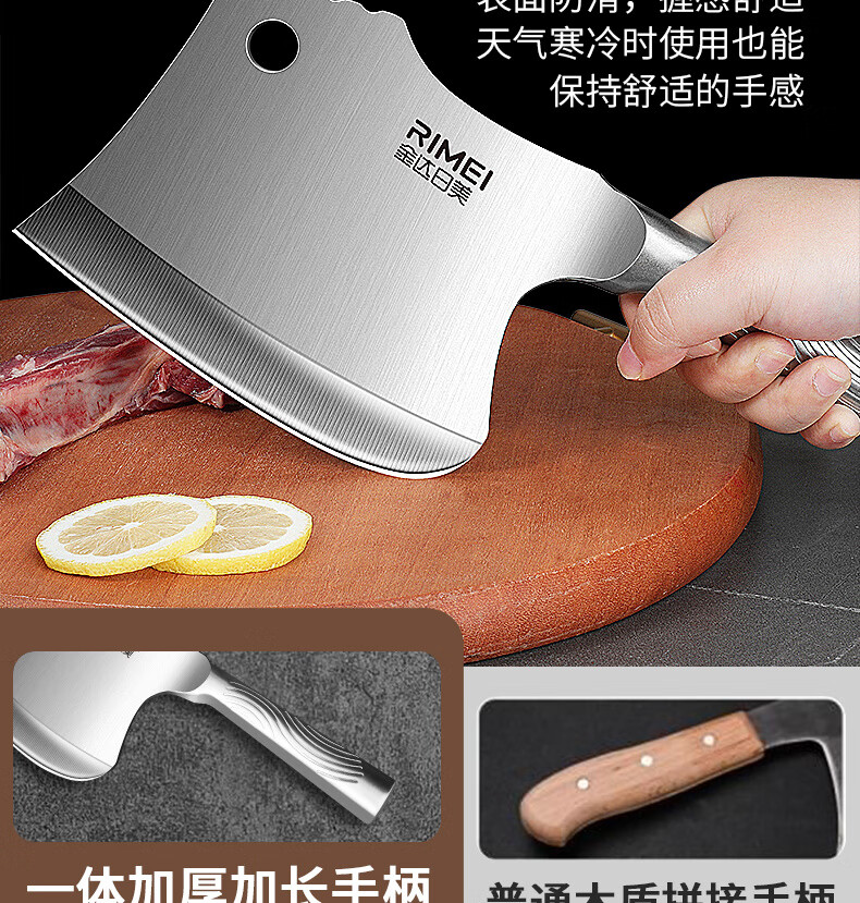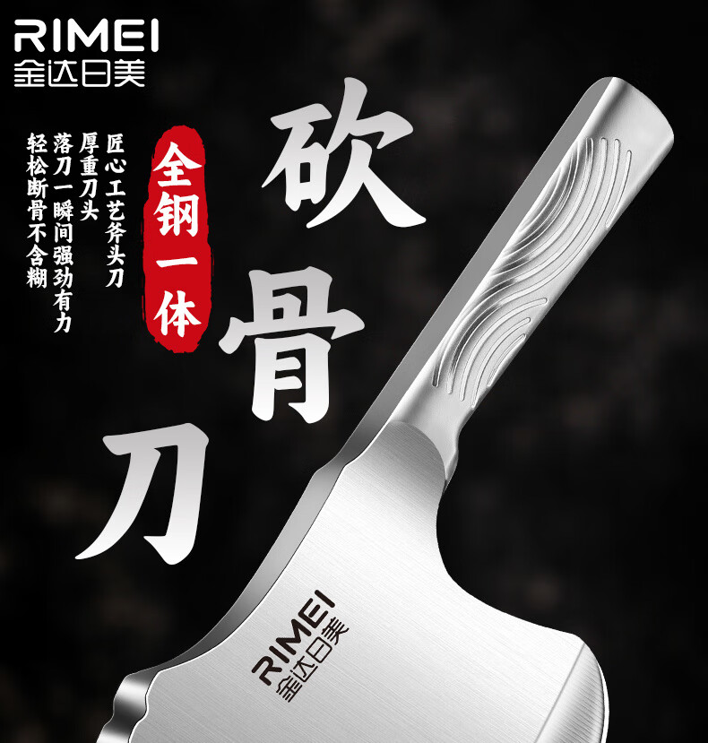 金达日美砍骨刀大骨屠夫专用砍骨头专用刀家用厨房斩骨刀不锈钢加厚砍骨斧 手柄压花全钢砍骨斧