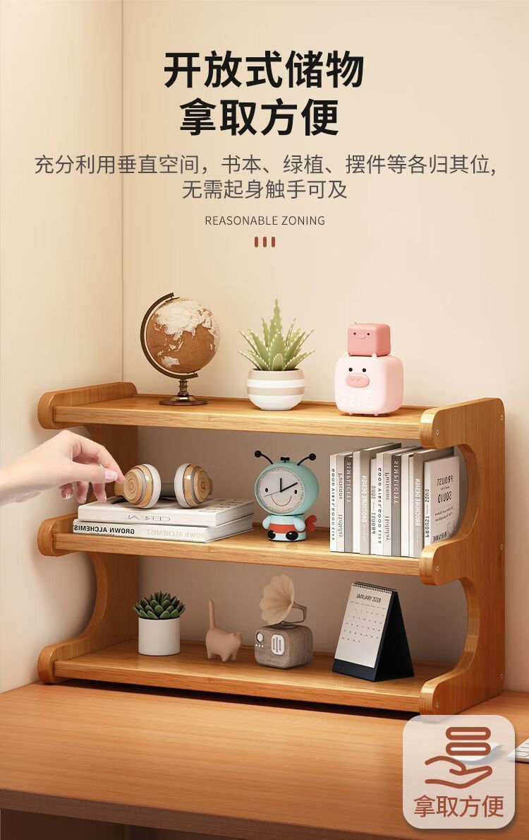 倘然之家桌上简易书架桌面置物架收纳办公室书桌小型学生多层家用架子书柜 桌上置物架【30长-2层】