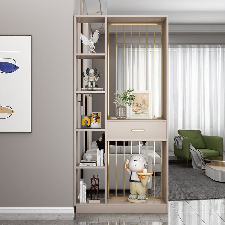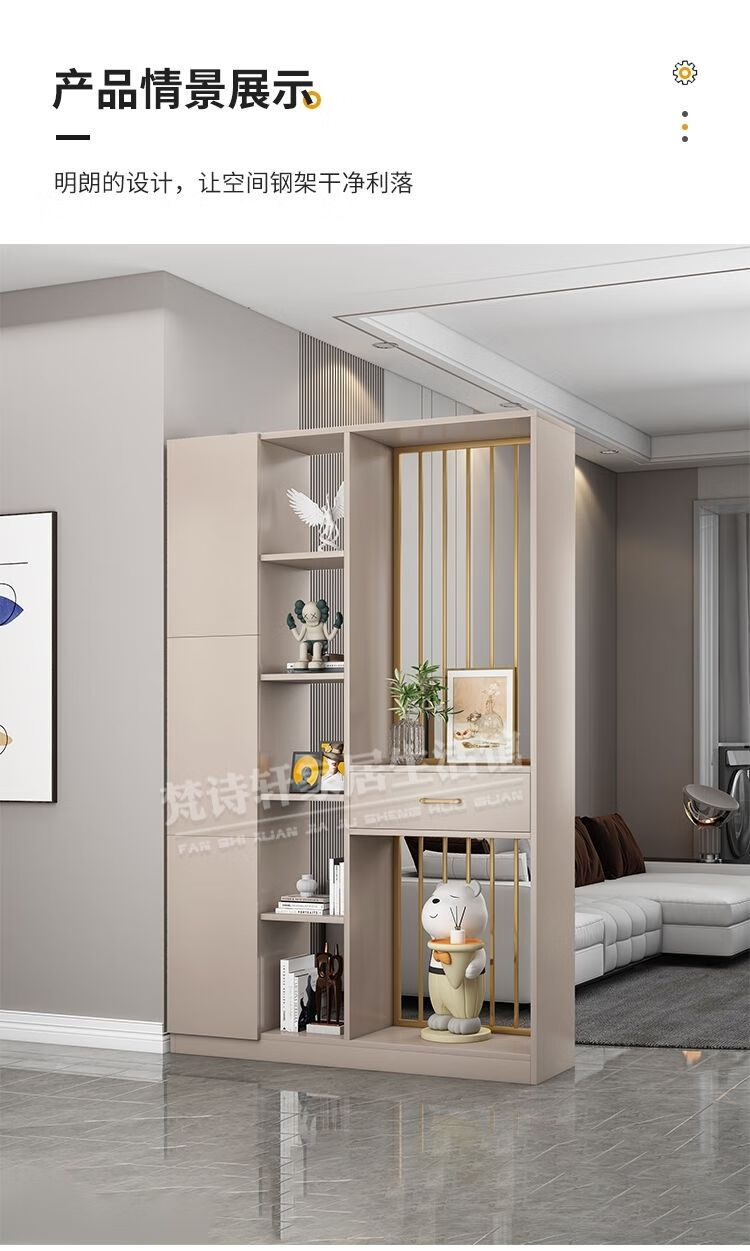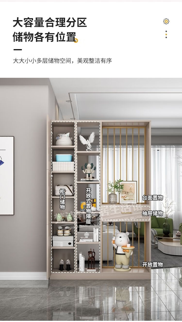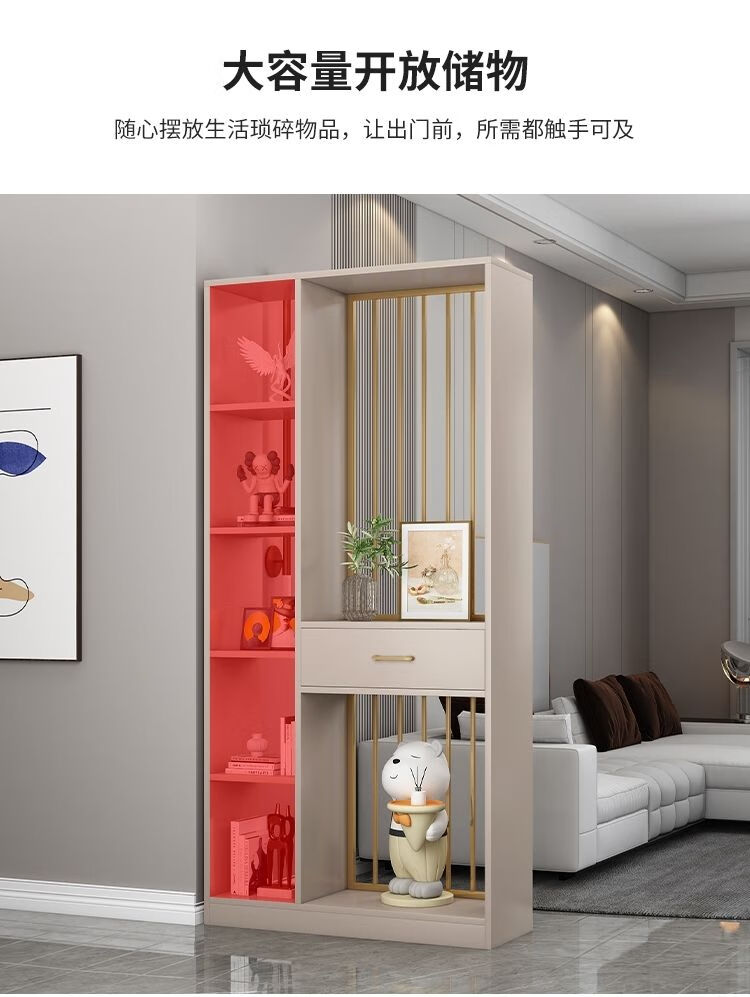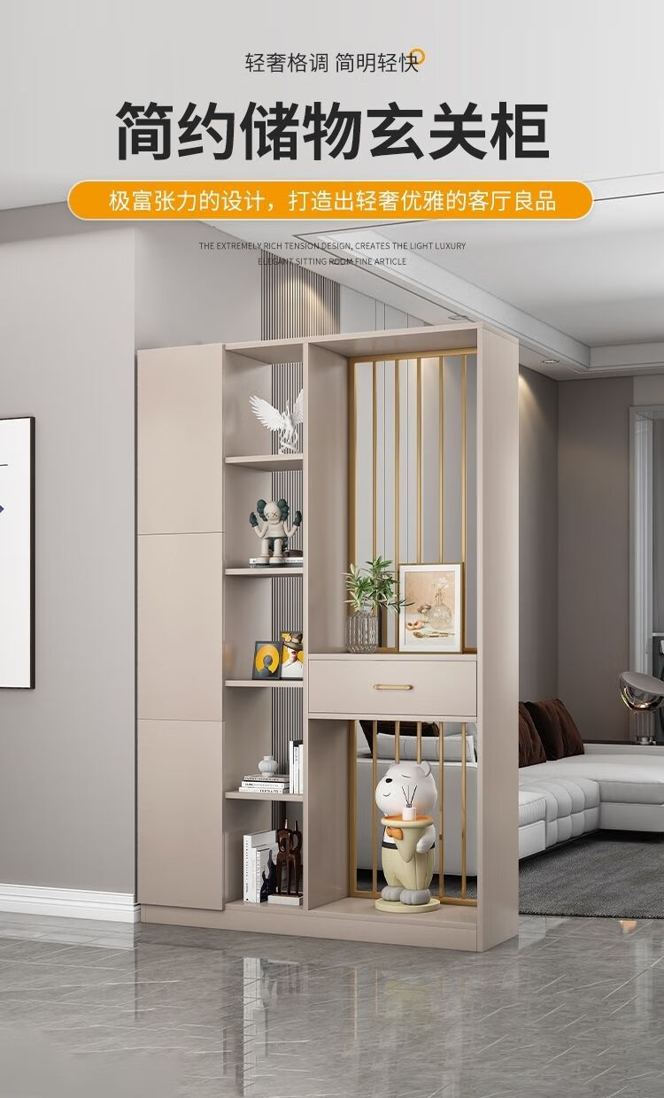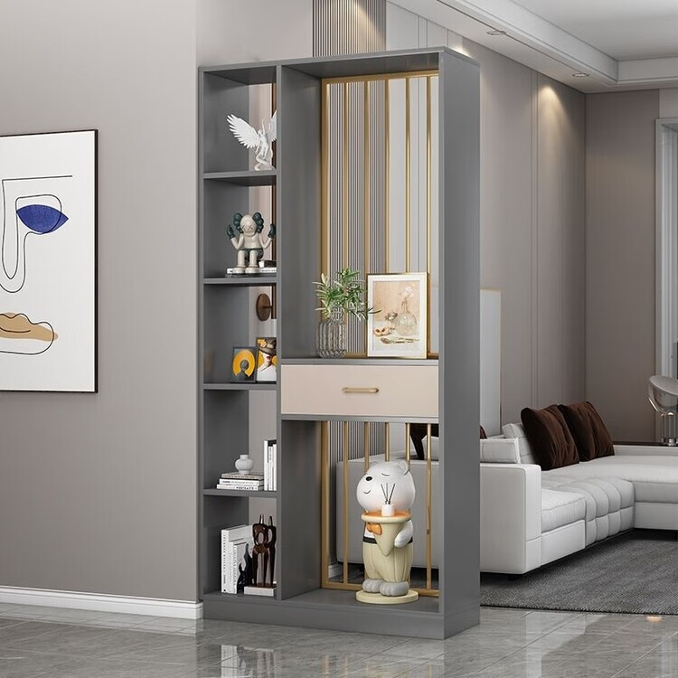 弘星隆玄关屏风隔断遮挡入户门柜简易置物架厨房餐厅客厅隔断柜入户沙发 80*24*202【灰布纹颗粒板