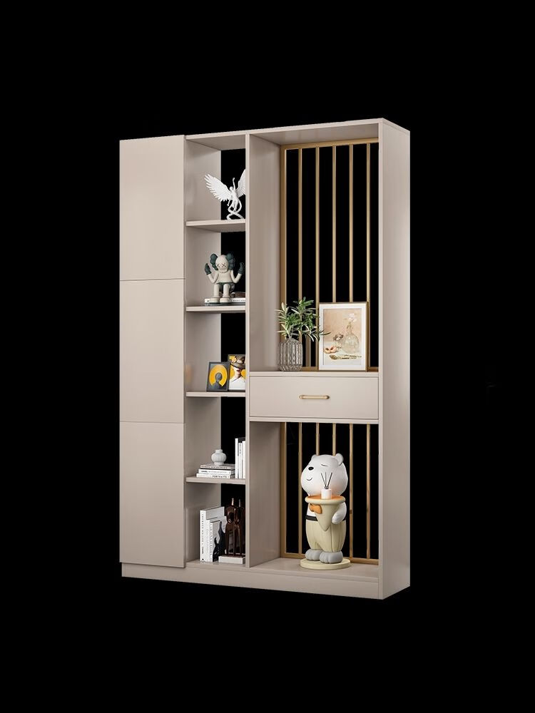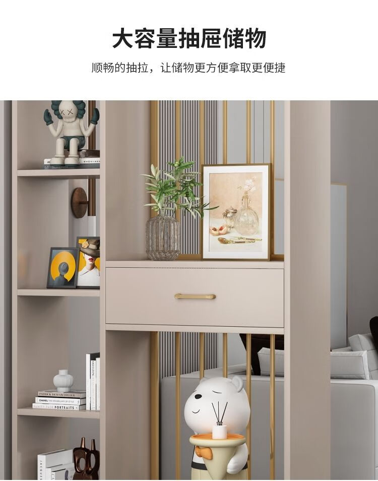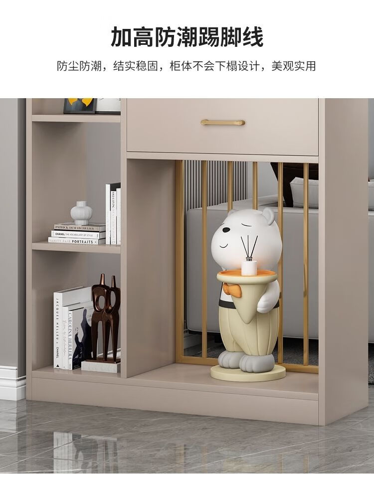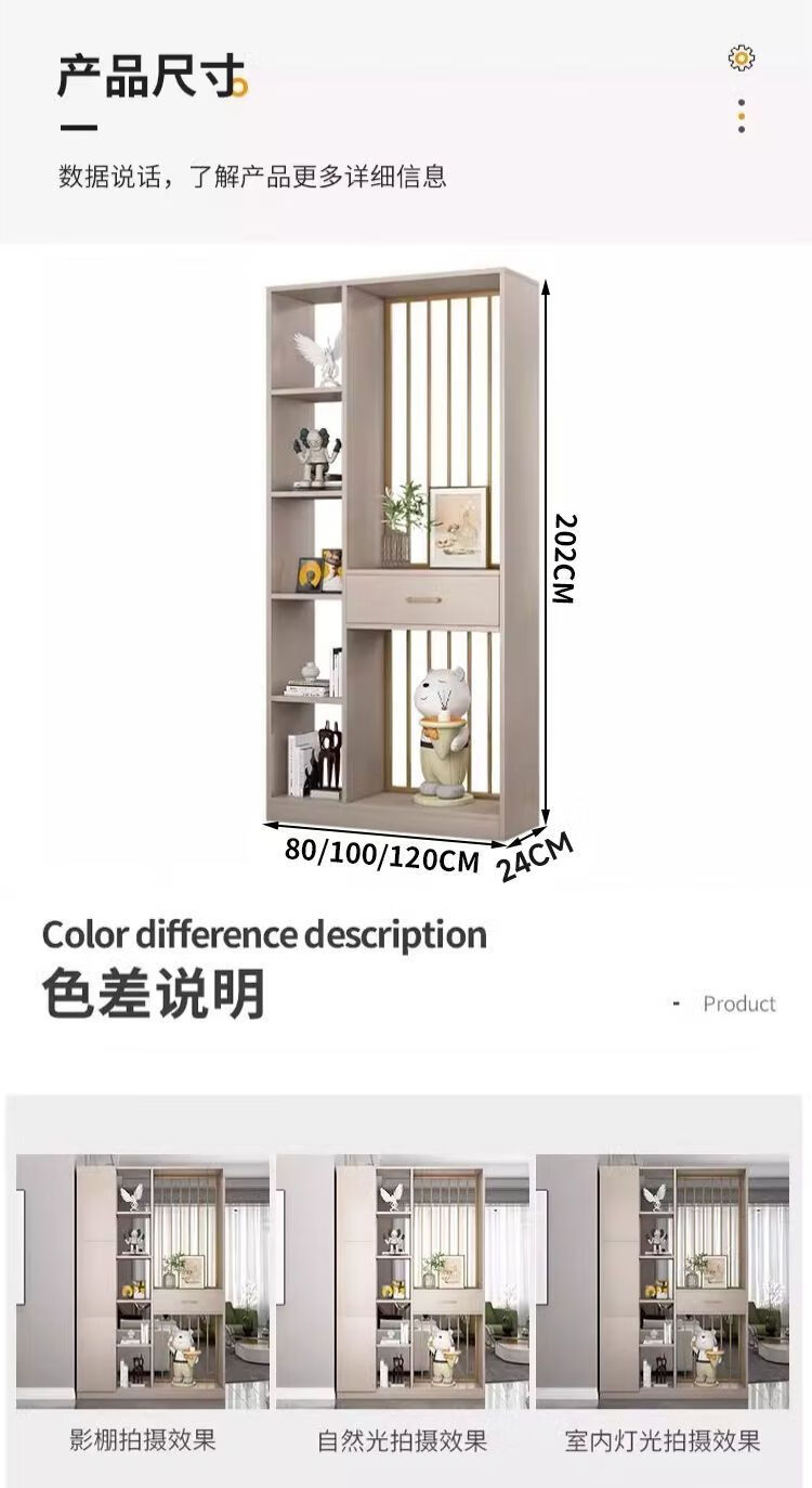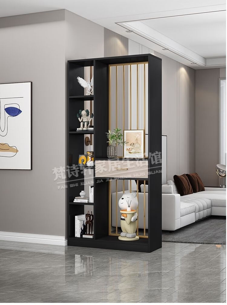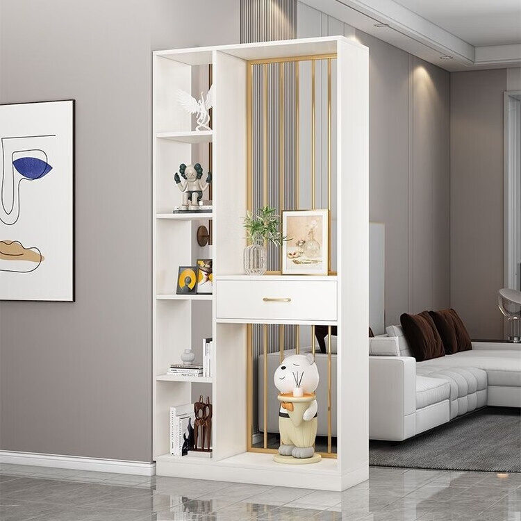 弘星隆玄关屏风隔断遮挡入户门柜简易置物架厨房餐厅客厅隔断柜入户沙发 80*24*202【灰布纹颗粒板