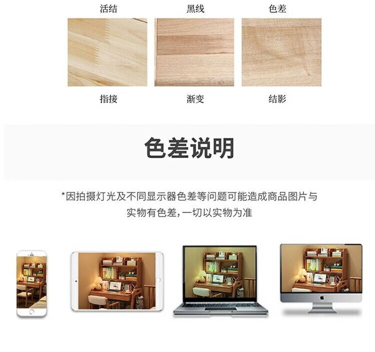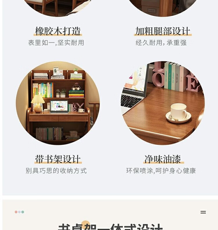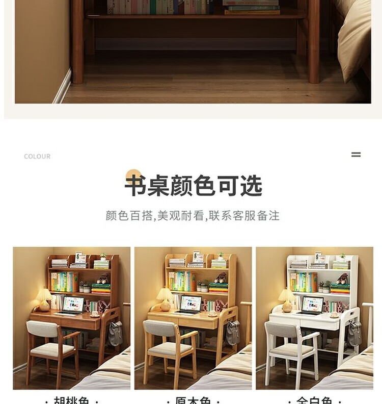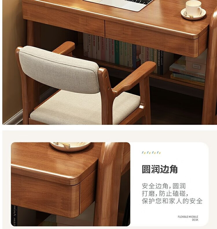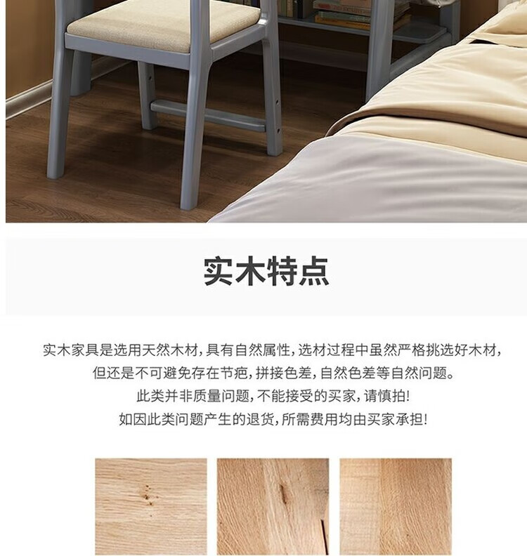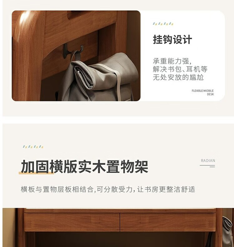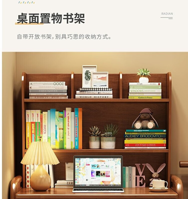 弘星隆实木书桌书架一体桌家用卧室中小学生可升降写字桌女孩儿童学习桌 胡桃色实木单桌 【桌面可三档升降】 70x60x125cm